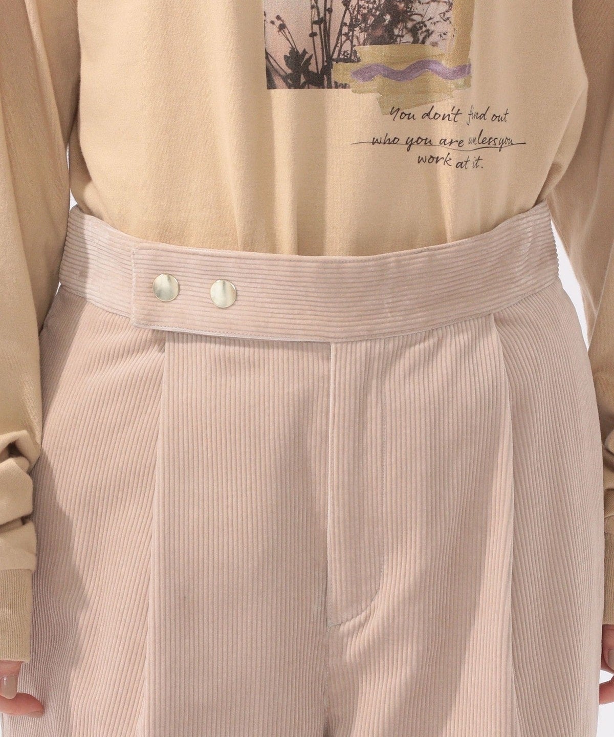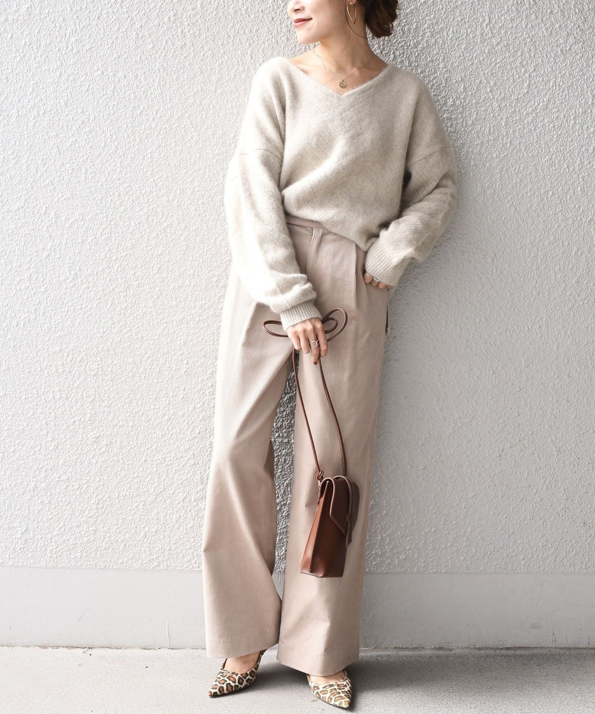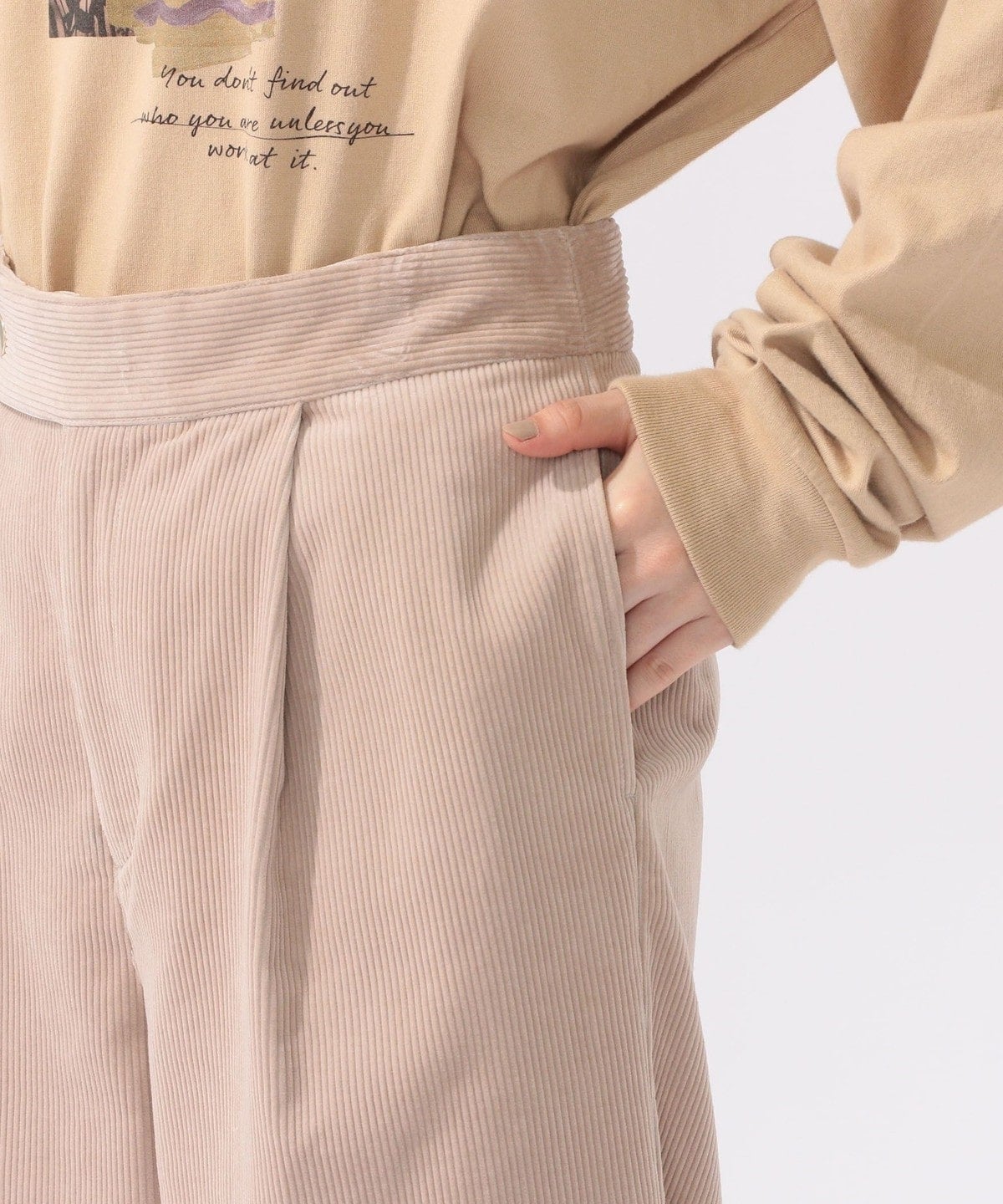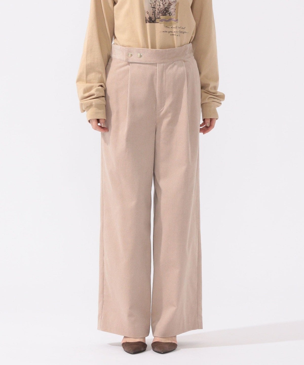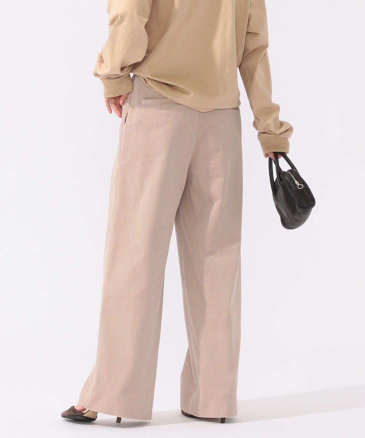 コーデュロイながらもしっとりとした風合いで大人っぽい印象の一着。