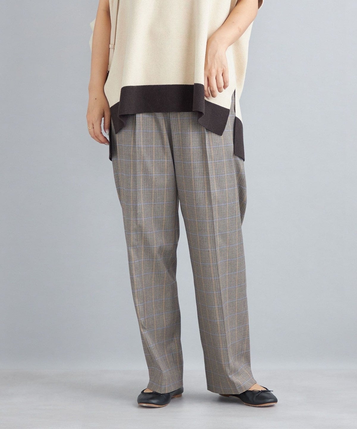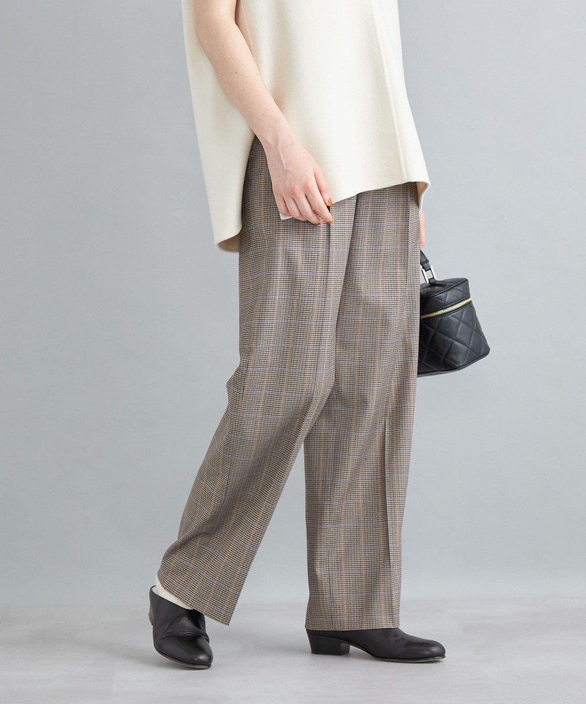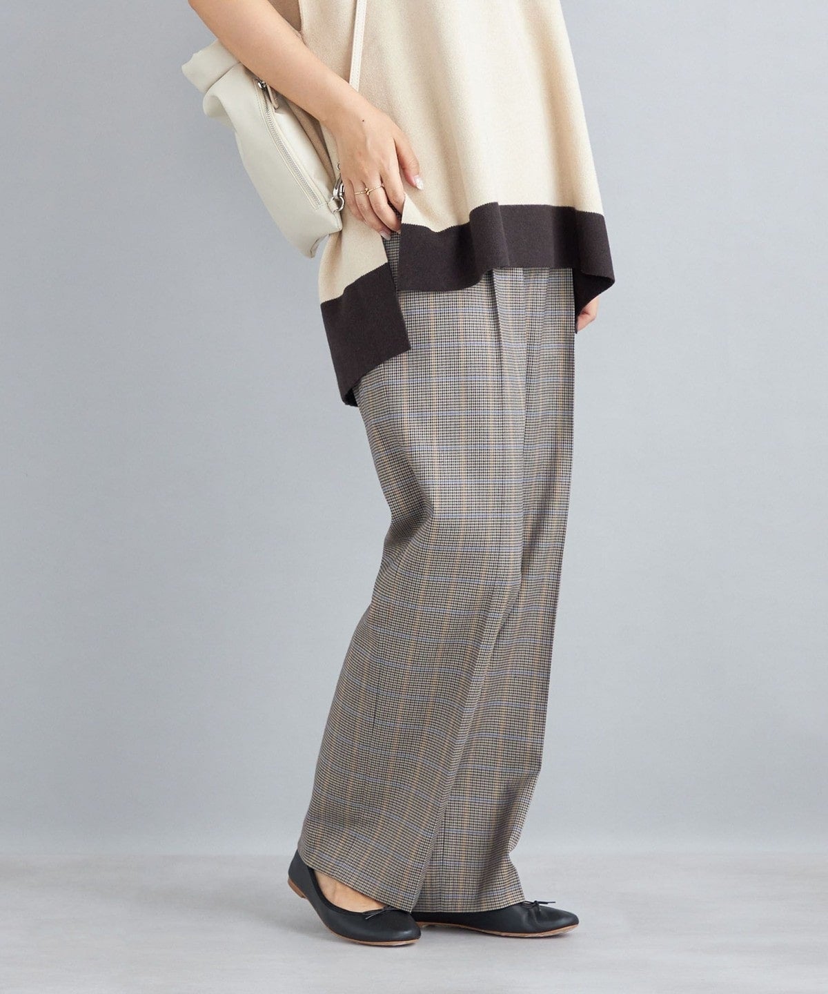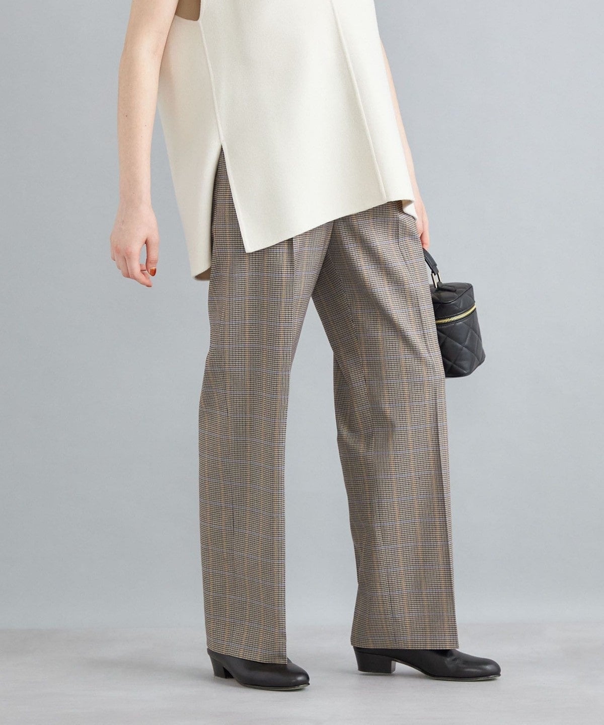 きれいめにもカジュアルにも合わせられるセンタープレスのトラッドチェックパンツ。