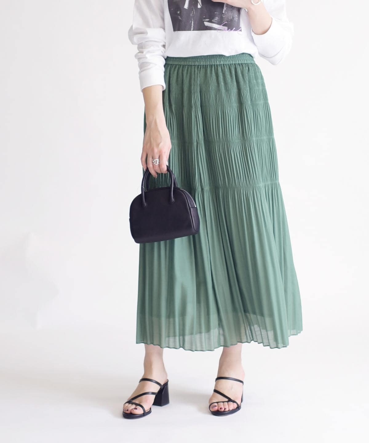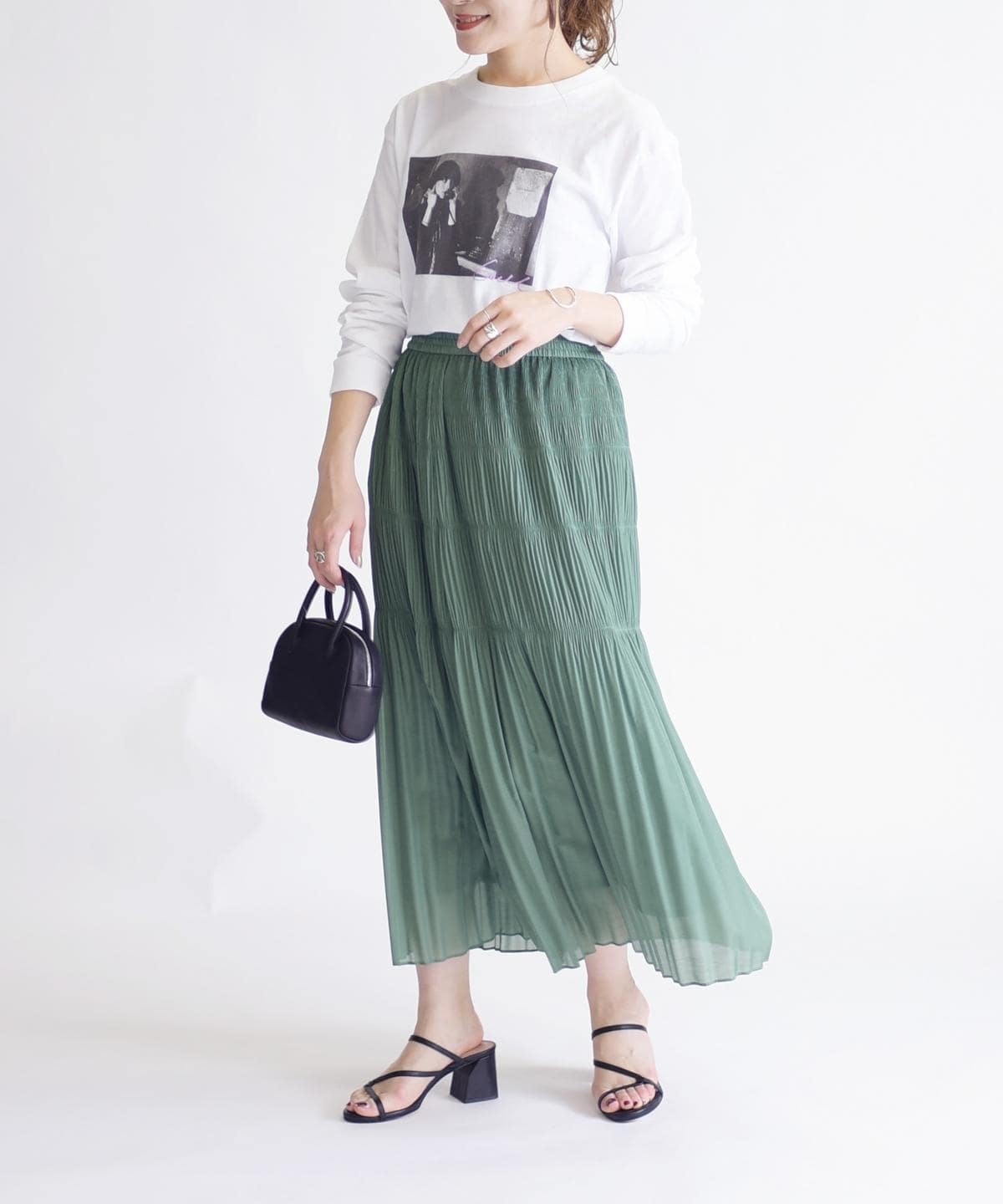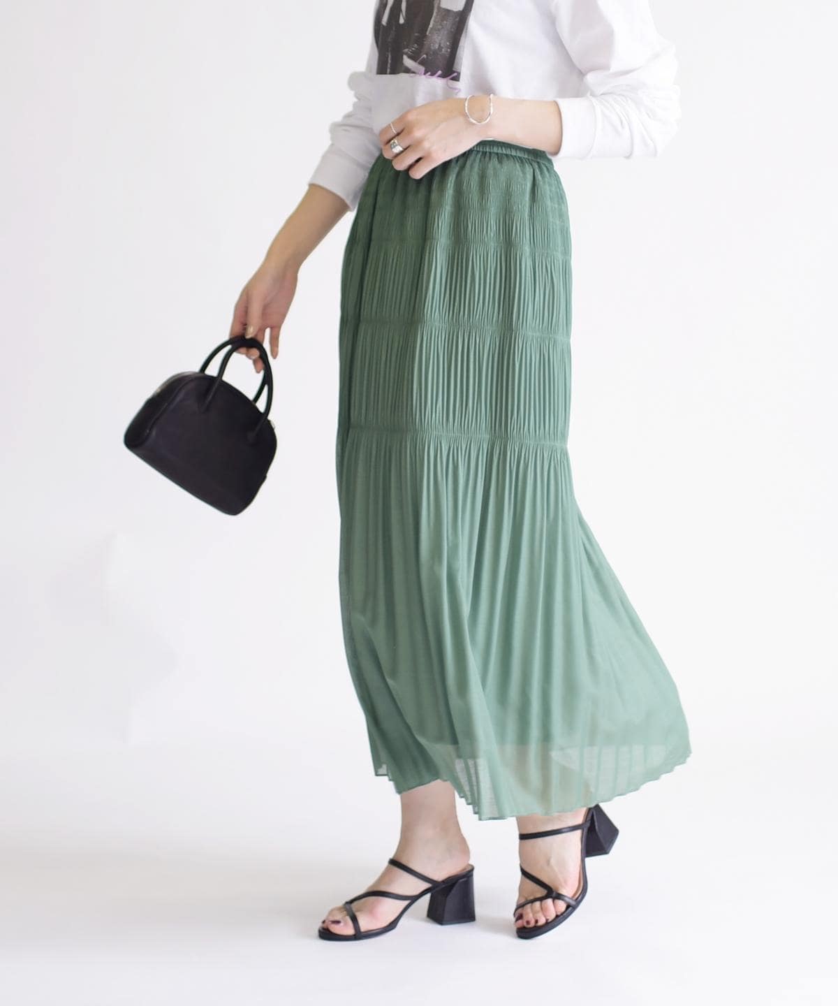 コメント:ウエストはゴム仕様で軽くて着心地◎トレンド感のあるシアーな透け感がとってもかわいいです。