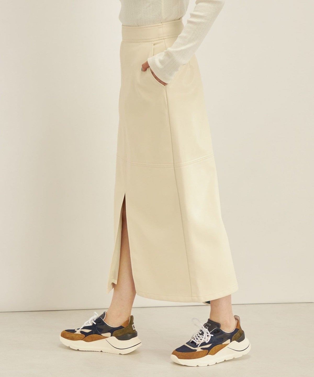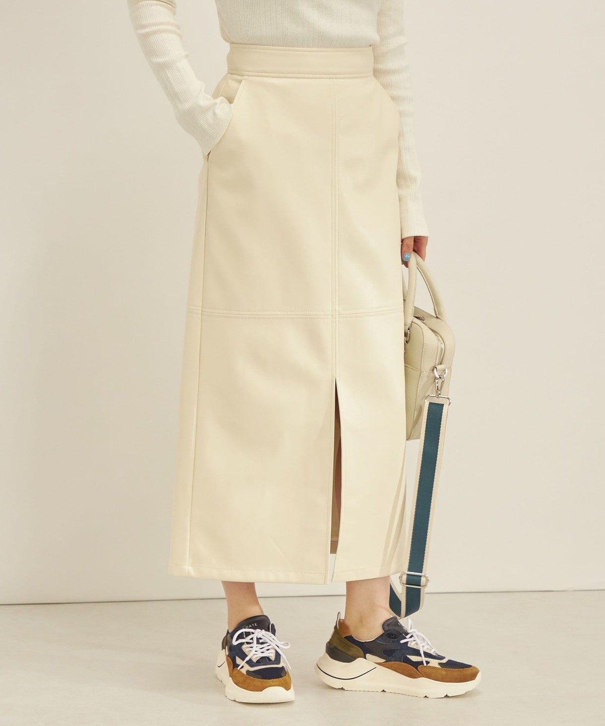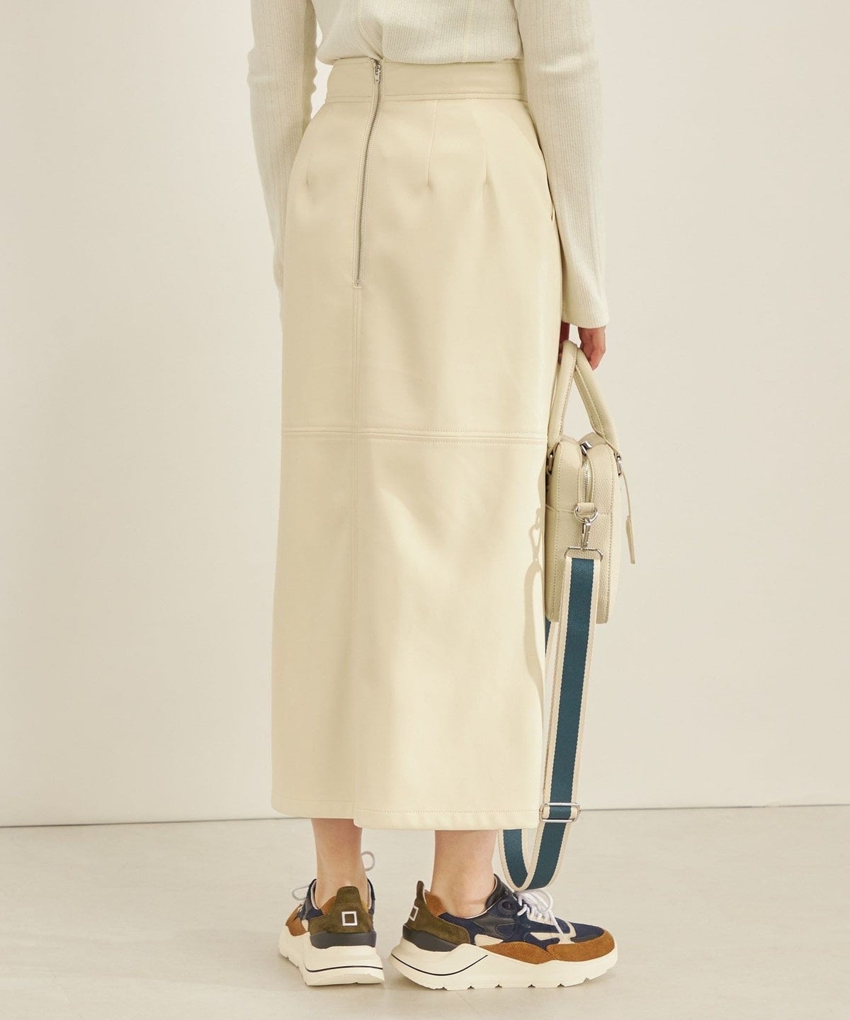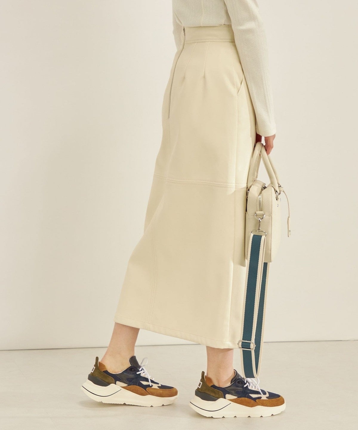 センターフロントにはベンツを施し、歩くと脚がちらっと覗くデザインが女性らしさを引き立てます。