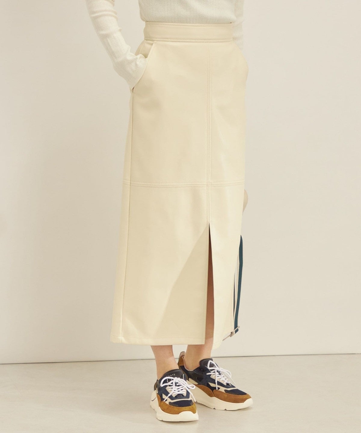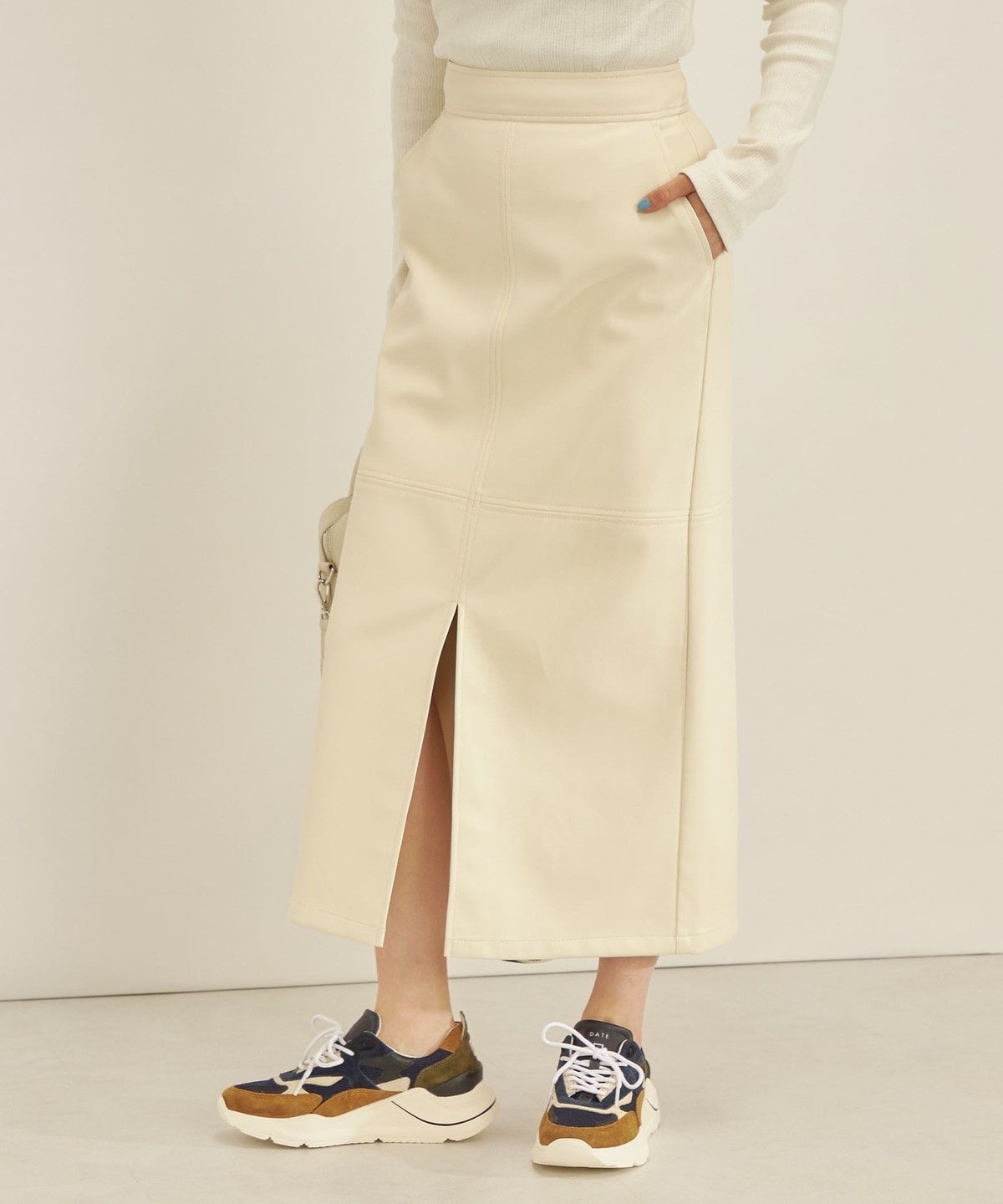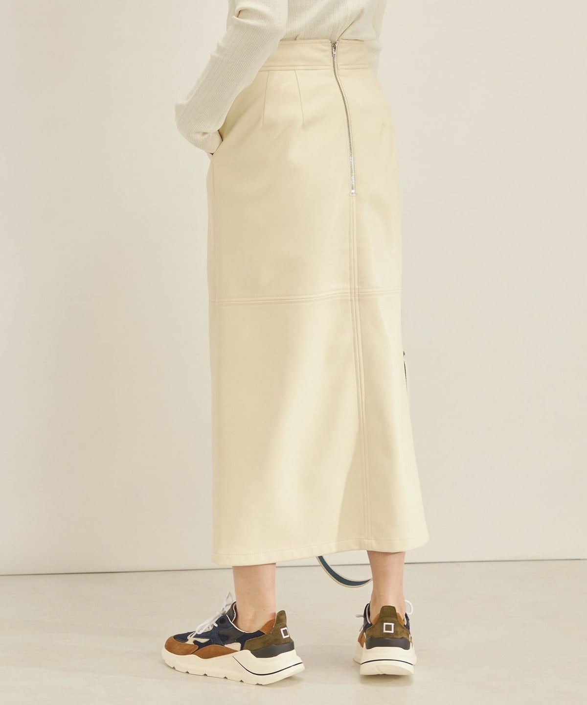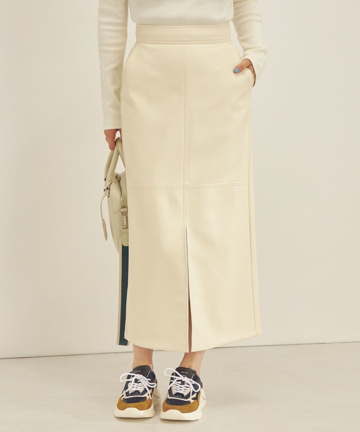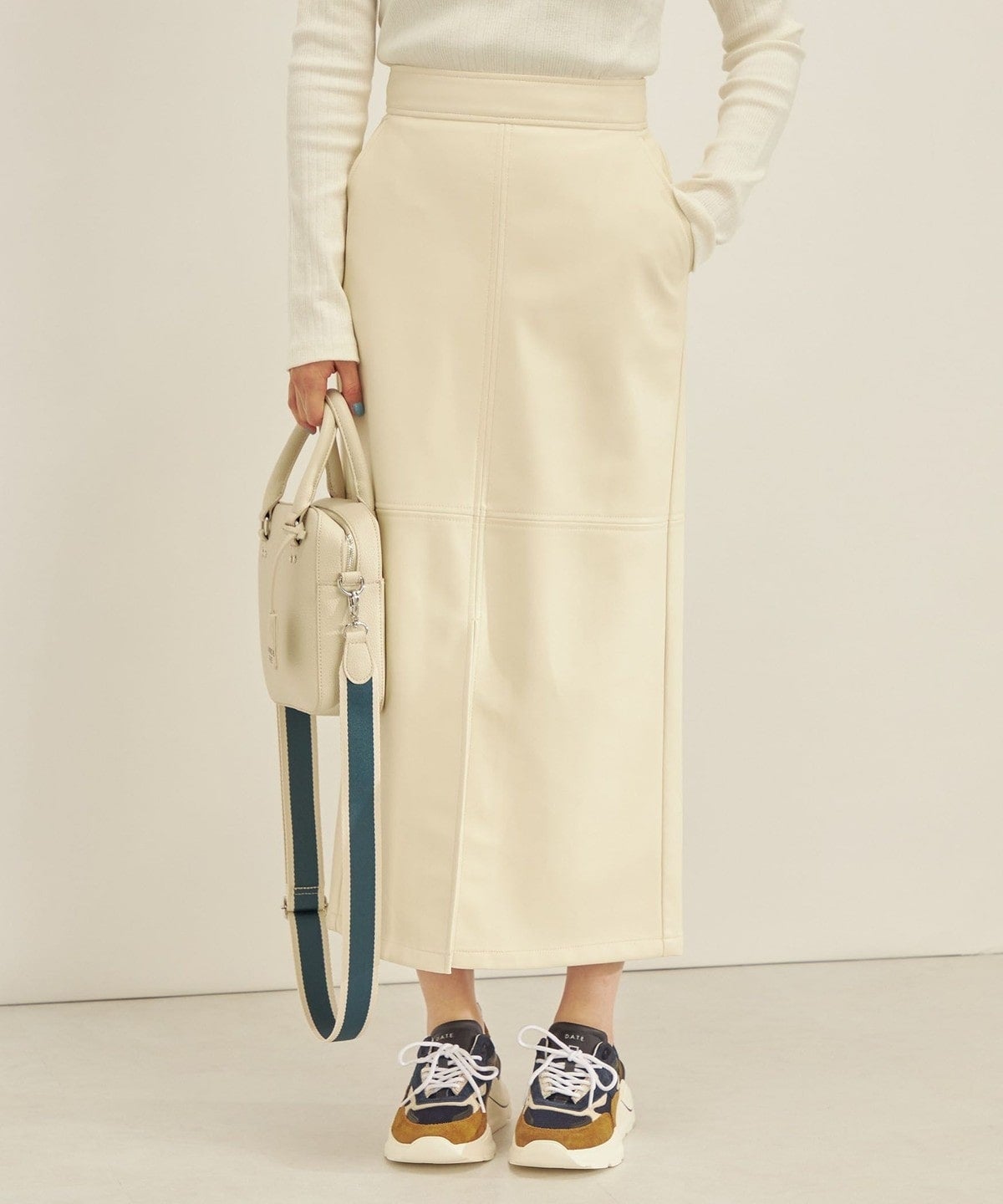 センターフロントにはベンツを施し、歩くと脚がちらっと覗くデザインが女性らしさを引き立てます。
