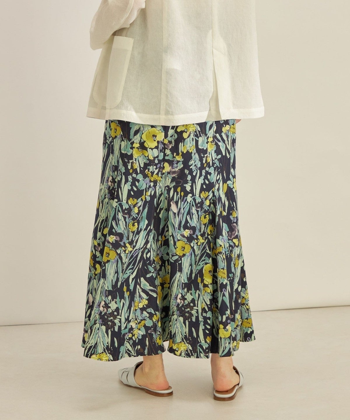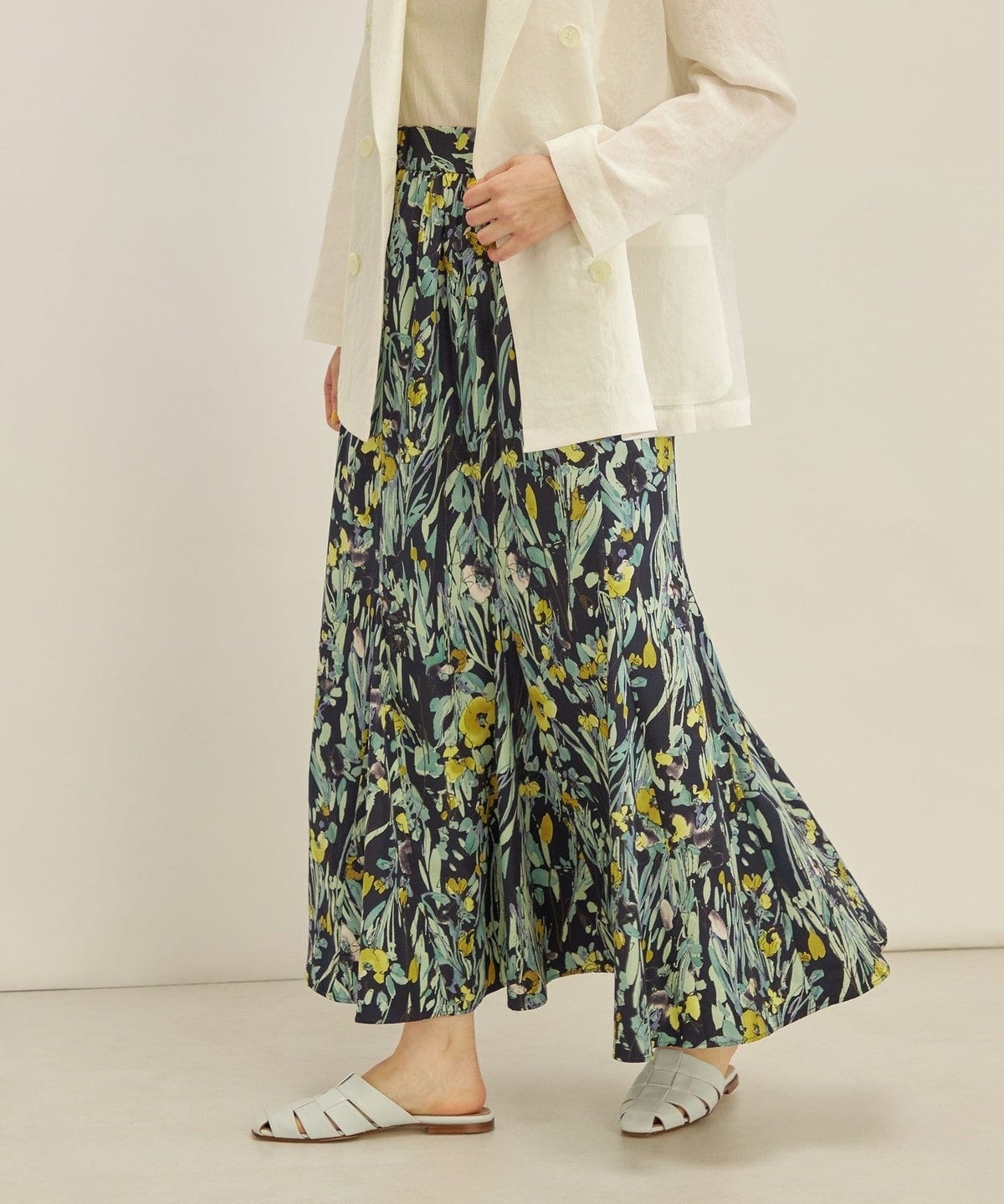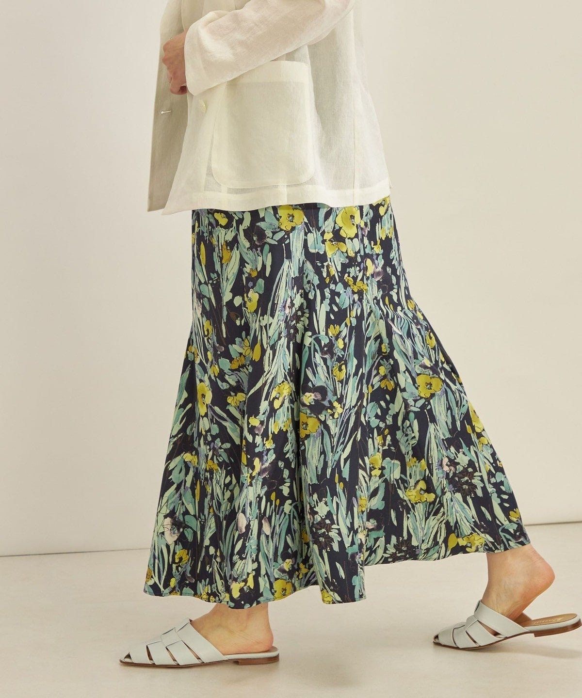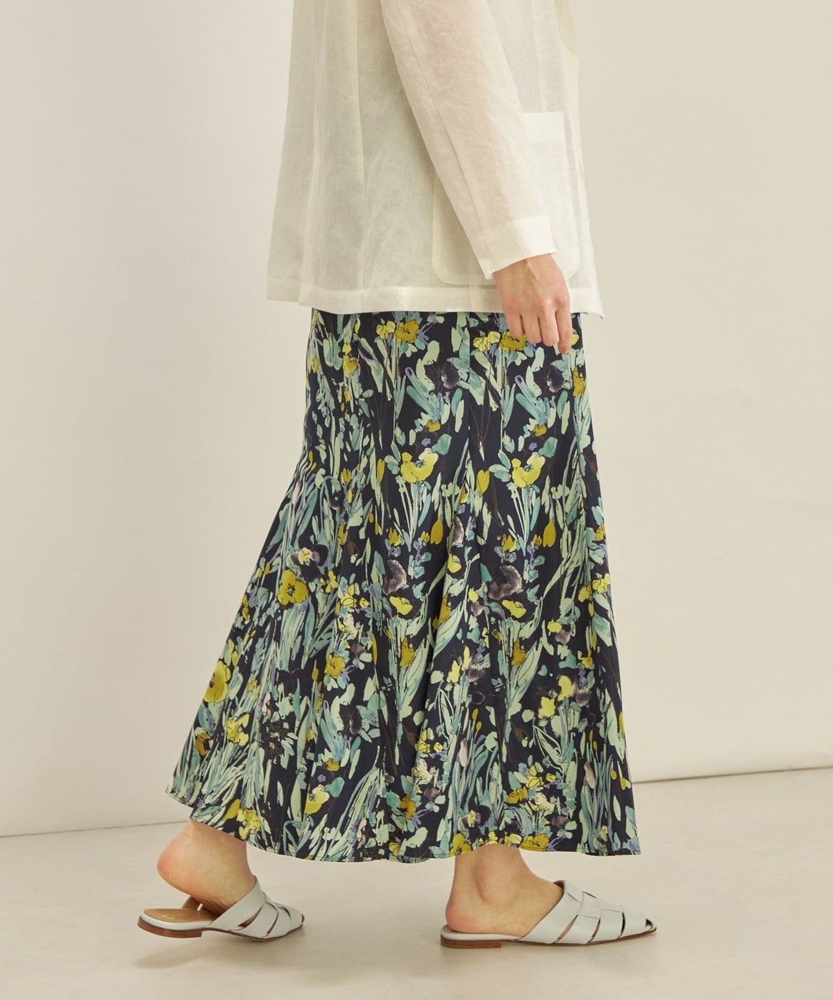 ウエストからももにかけてすっきりとさせ、裾にかけて広がるフレアが、動くたびに揺れてフェミニンなスカートに。