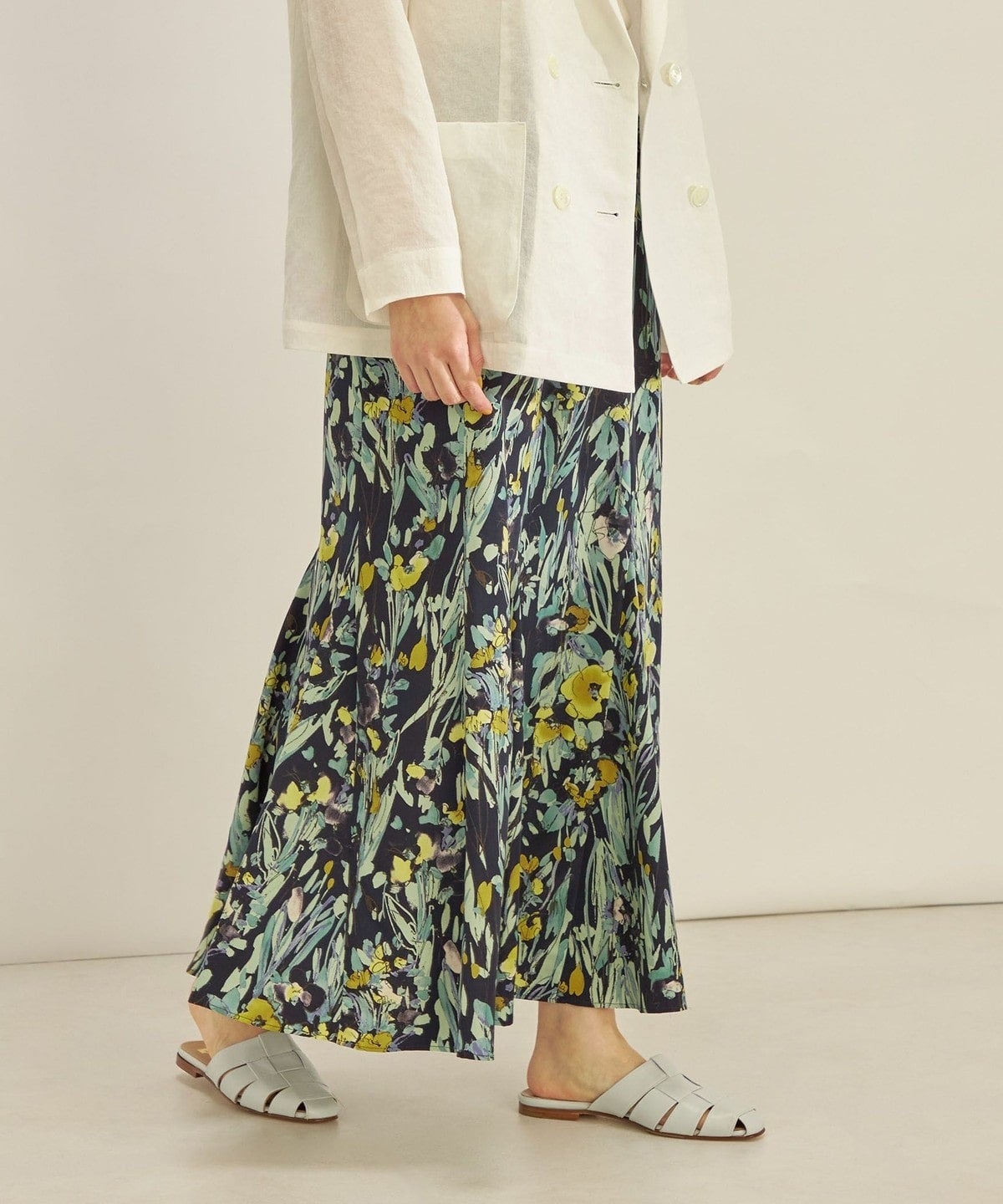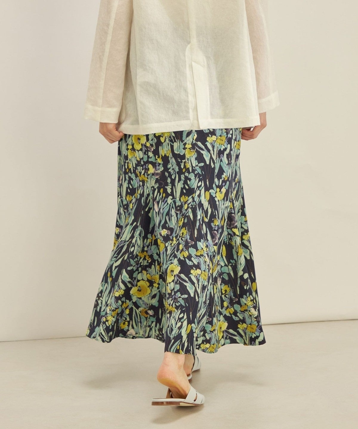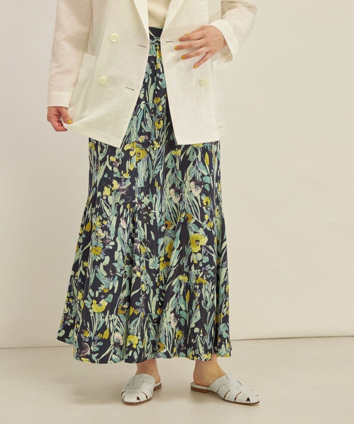ウエストからももにかけてすっきりとさせ、裾にかけて広がるフレアが、動くたびに揺れてフェミニンなスカートに。