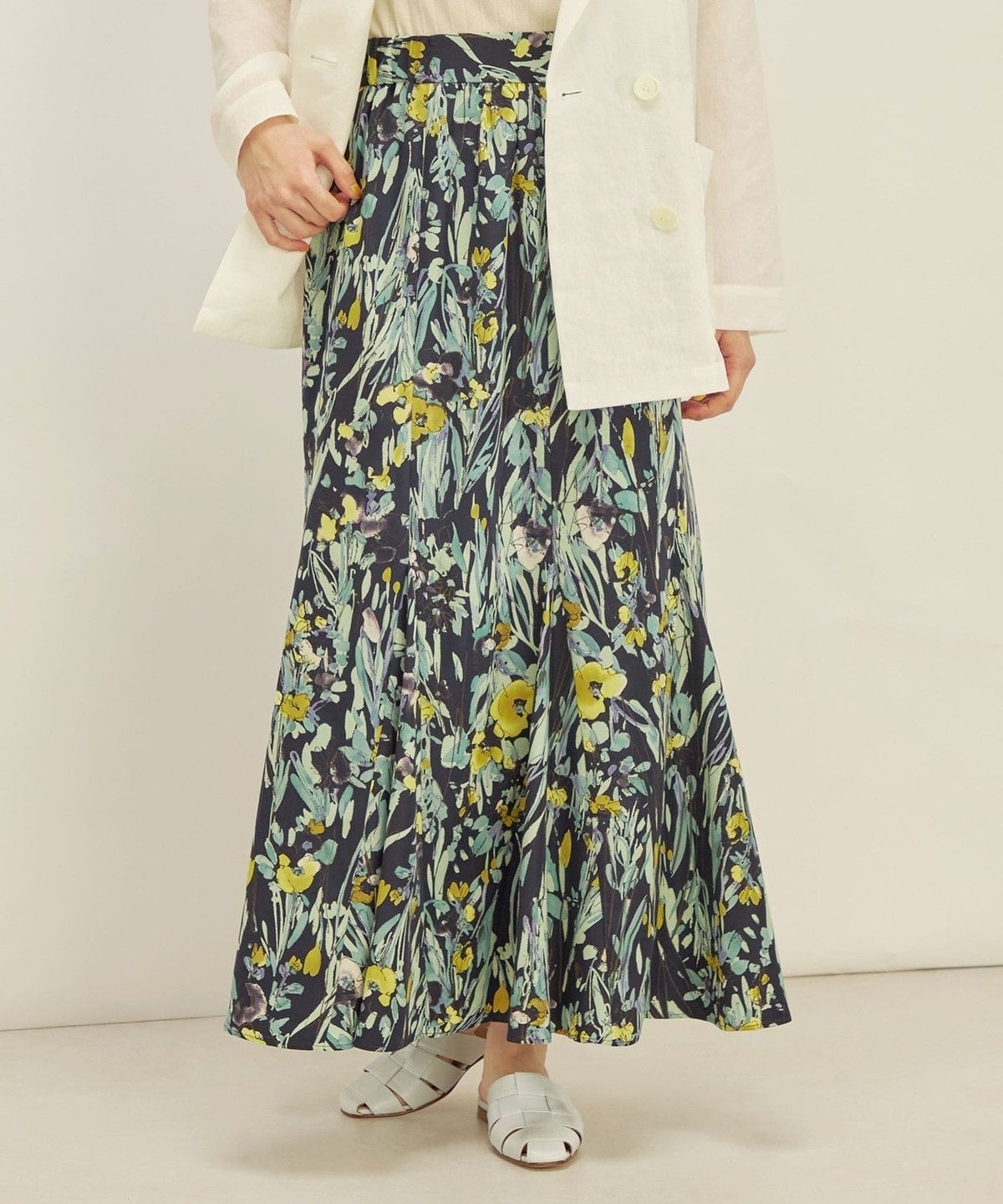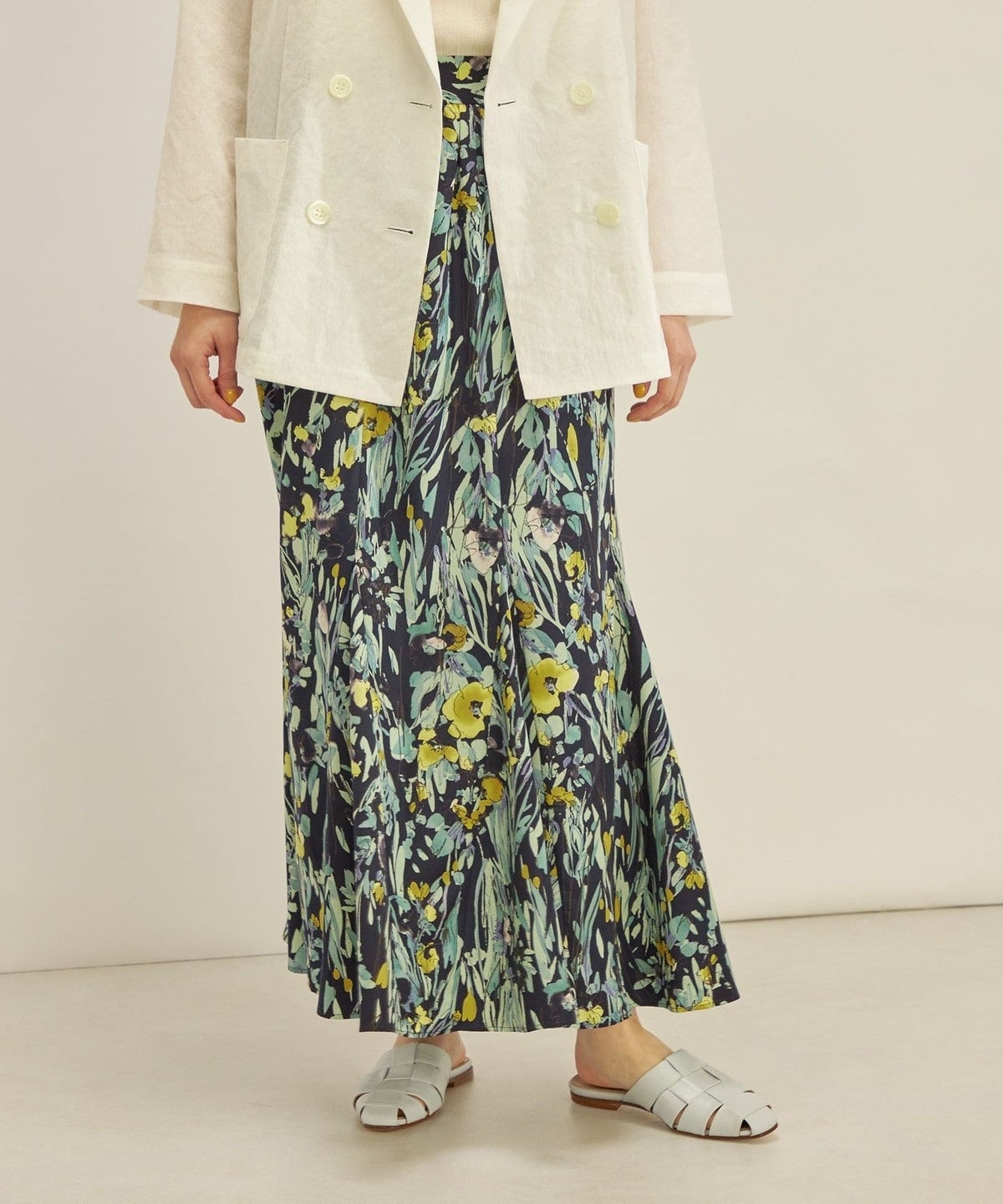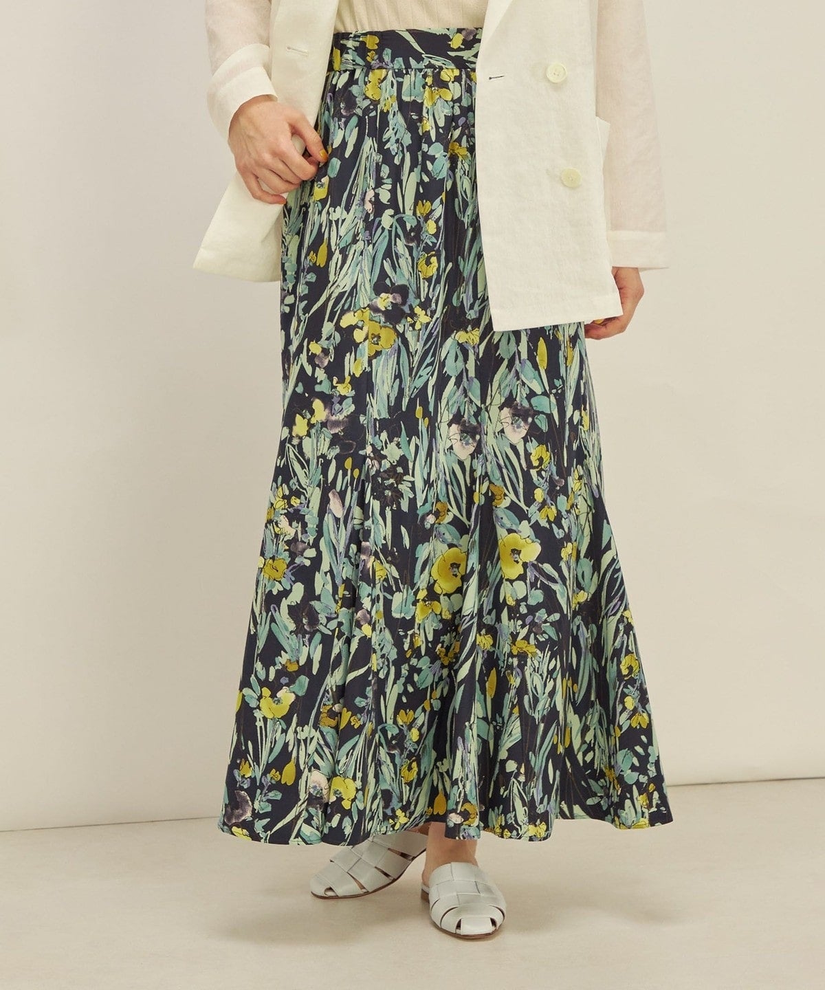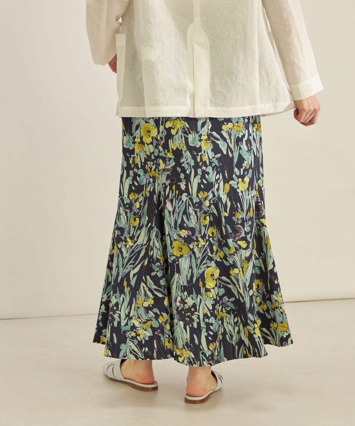 ウエストからももにかけてすっきりとさせ、裾にかけて広がるフレアが、動くたびに揺れてフェミニンなスカートに。