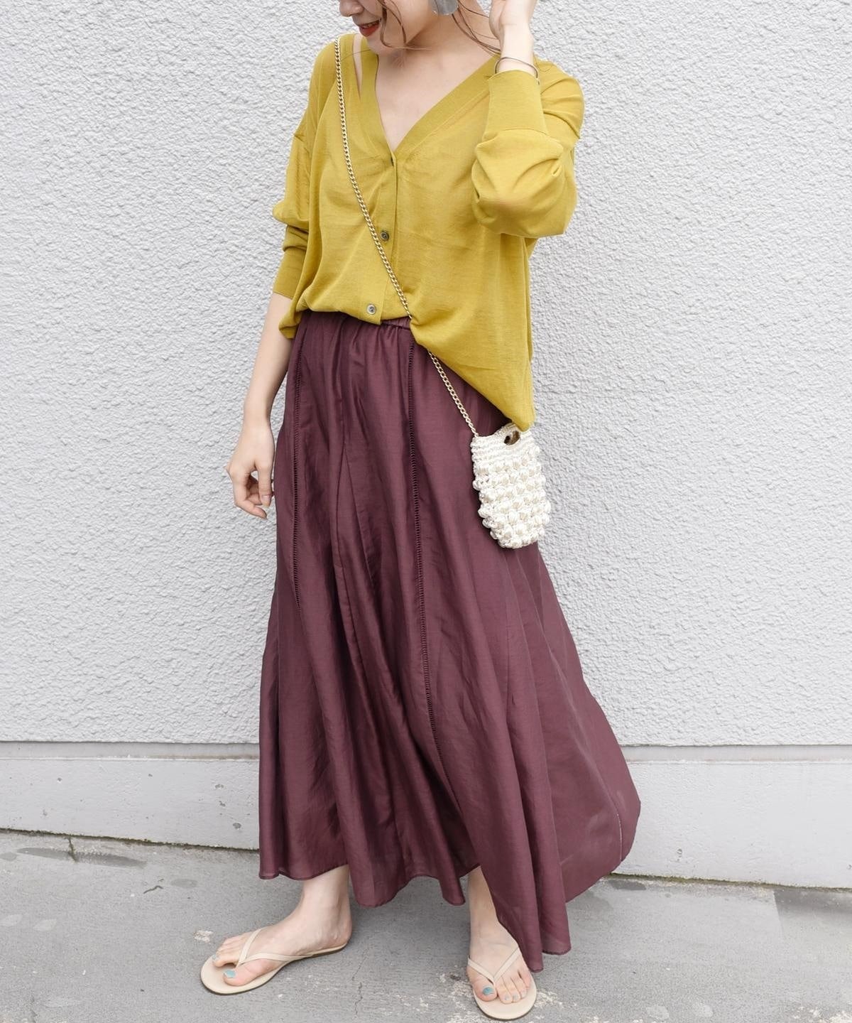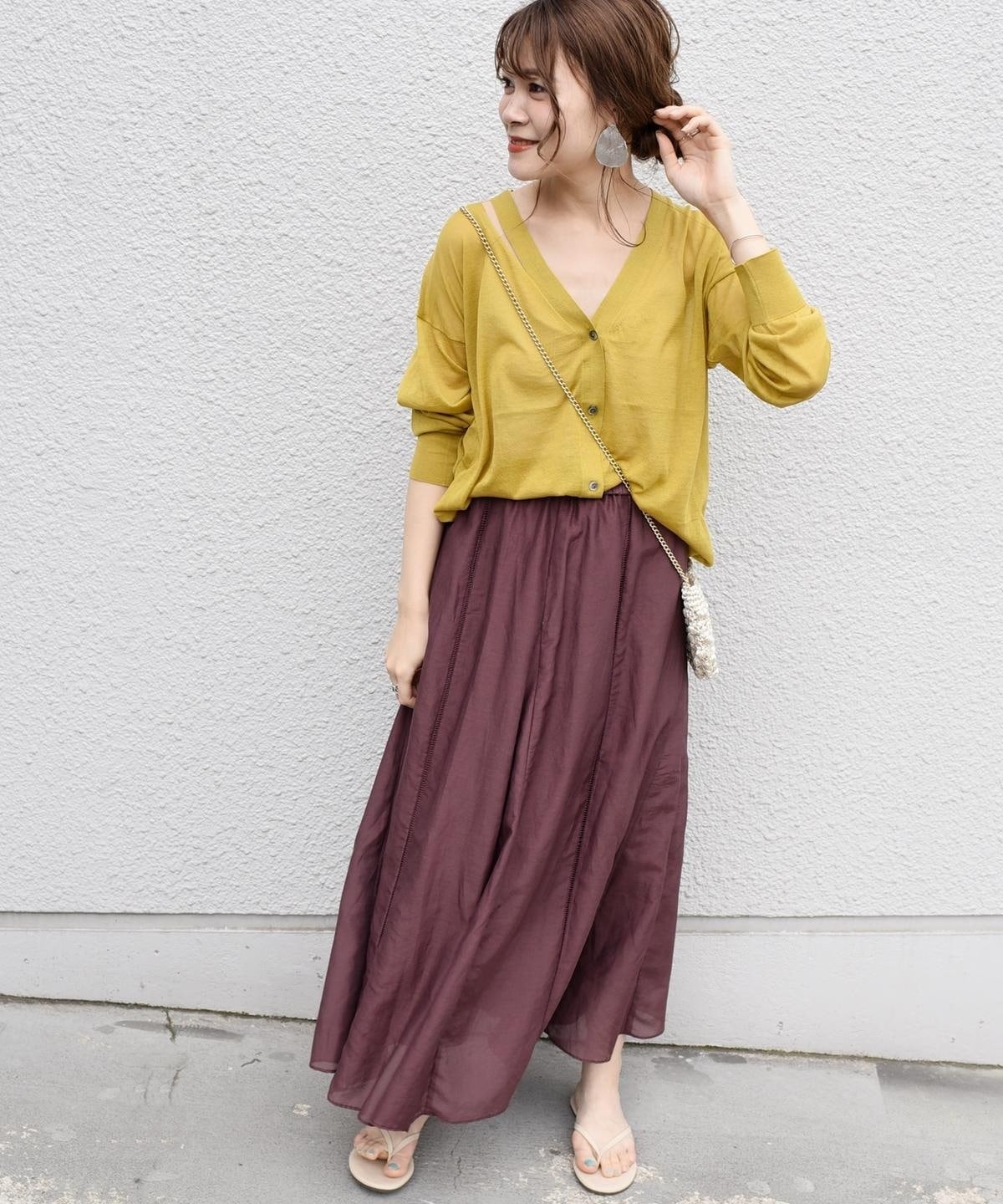 裾にかけて広がるシルエットで、甘くなり過ぎずに合わせられるのもポイントです。