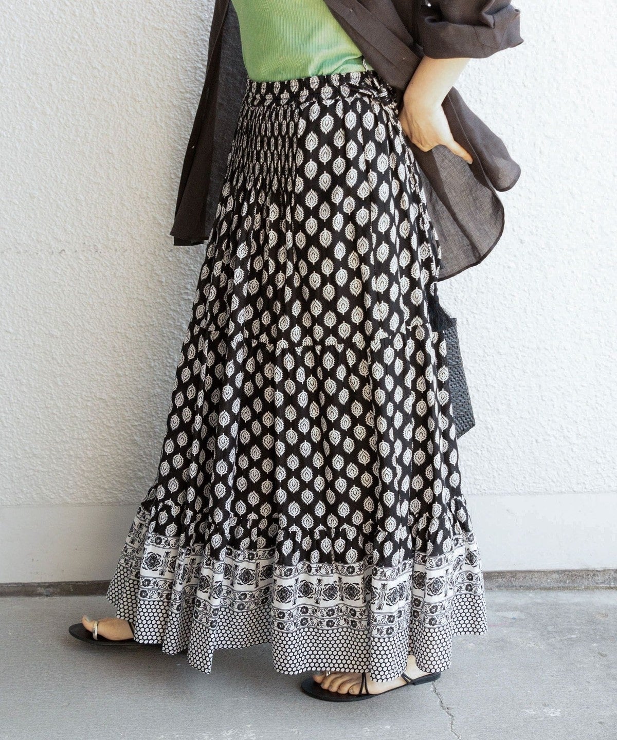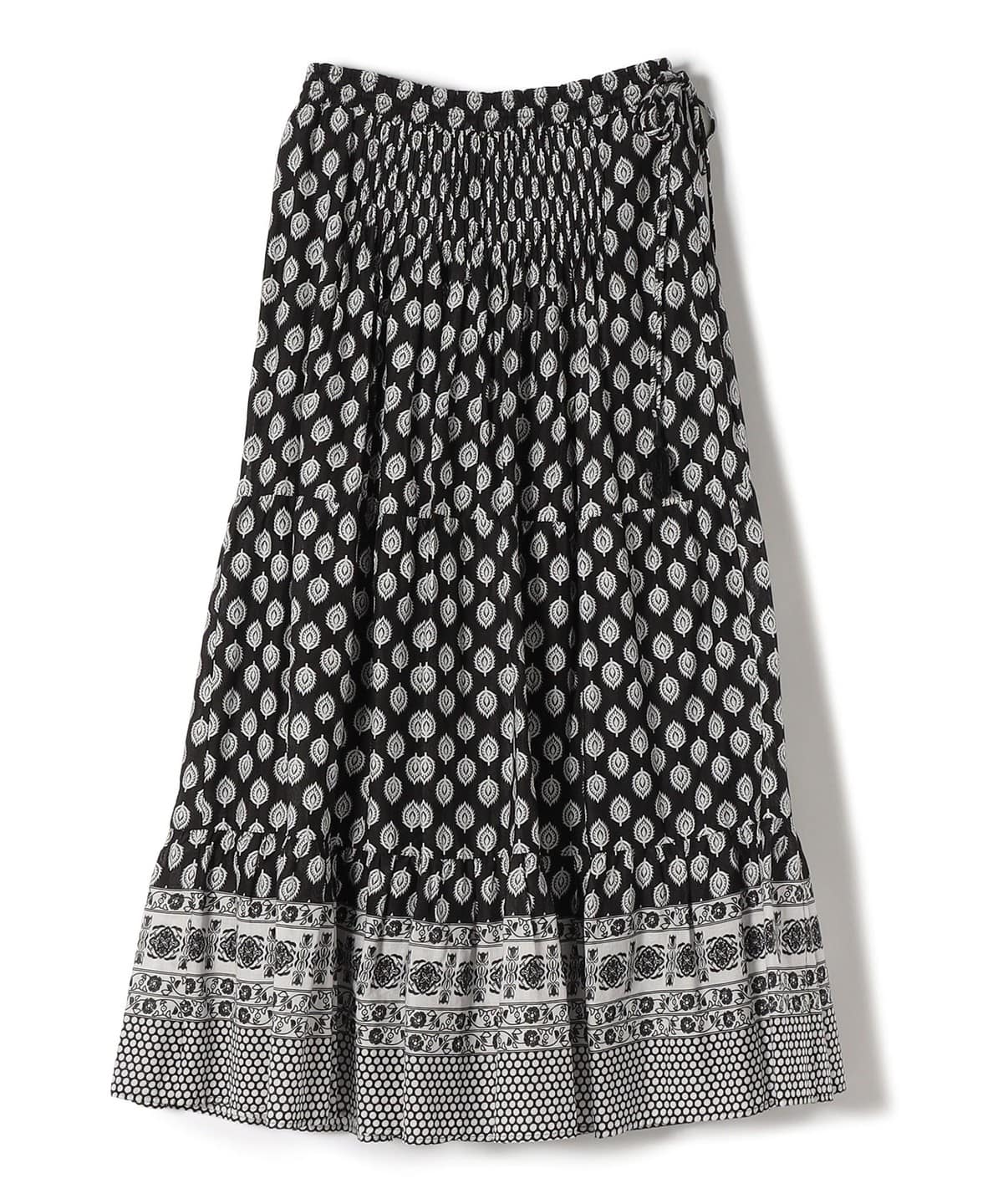 スタイリング映えするMIX柄の組み合わせ、ギャザーとたっぷりのフレアで華やかな印象に仕上げてくれます。