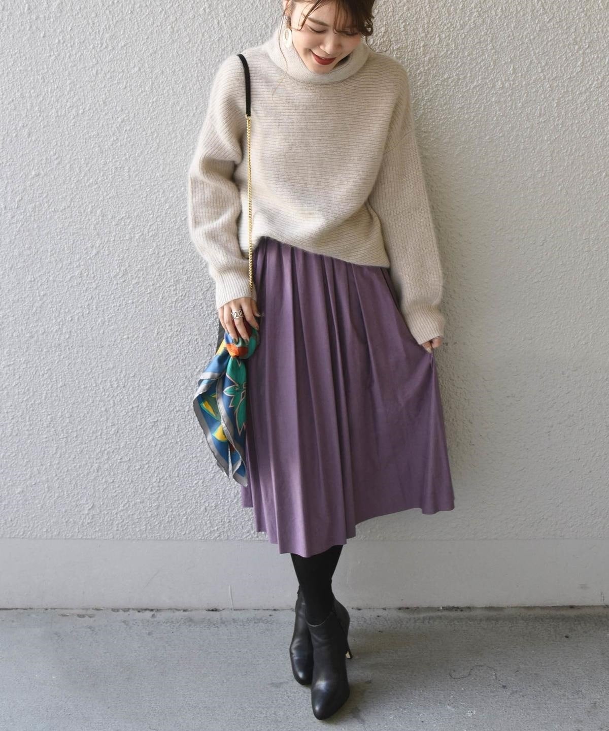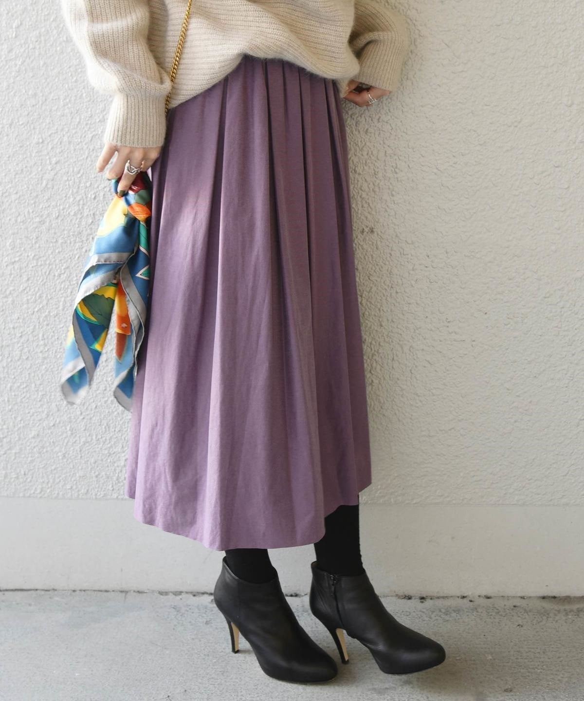 程よいボリューム感に、秋カラーがコーディネートのアクセントになってくれる上品なスカート。