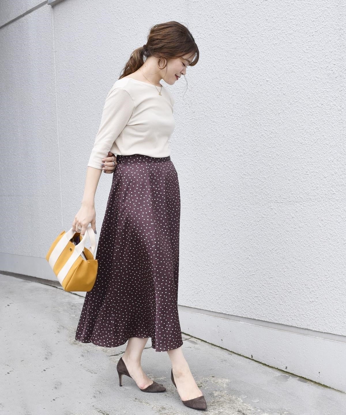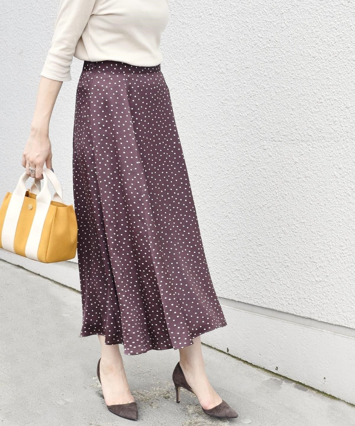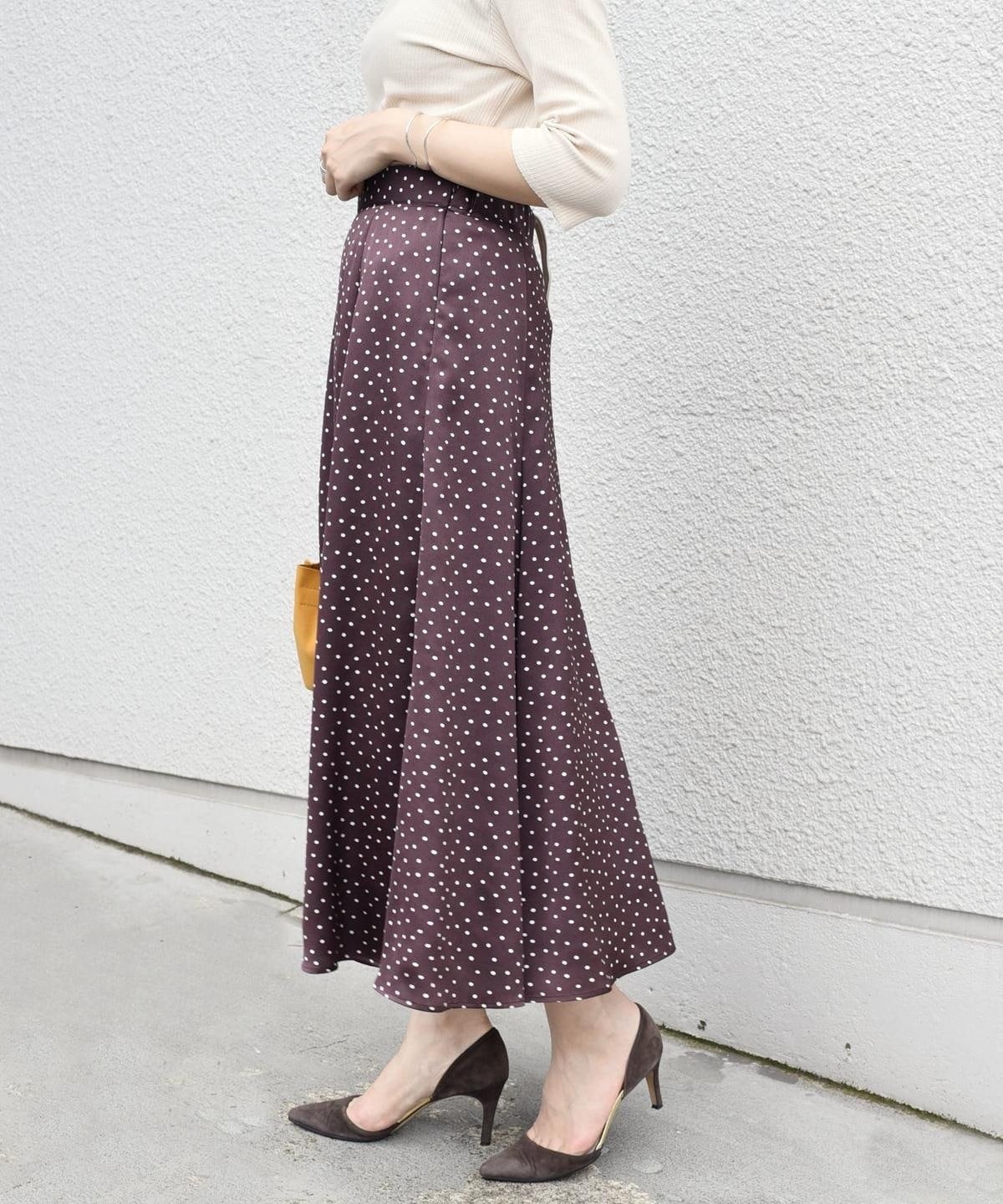 ドット柄ですが、光沢があるので甘くなりすぎず着ていただけます。