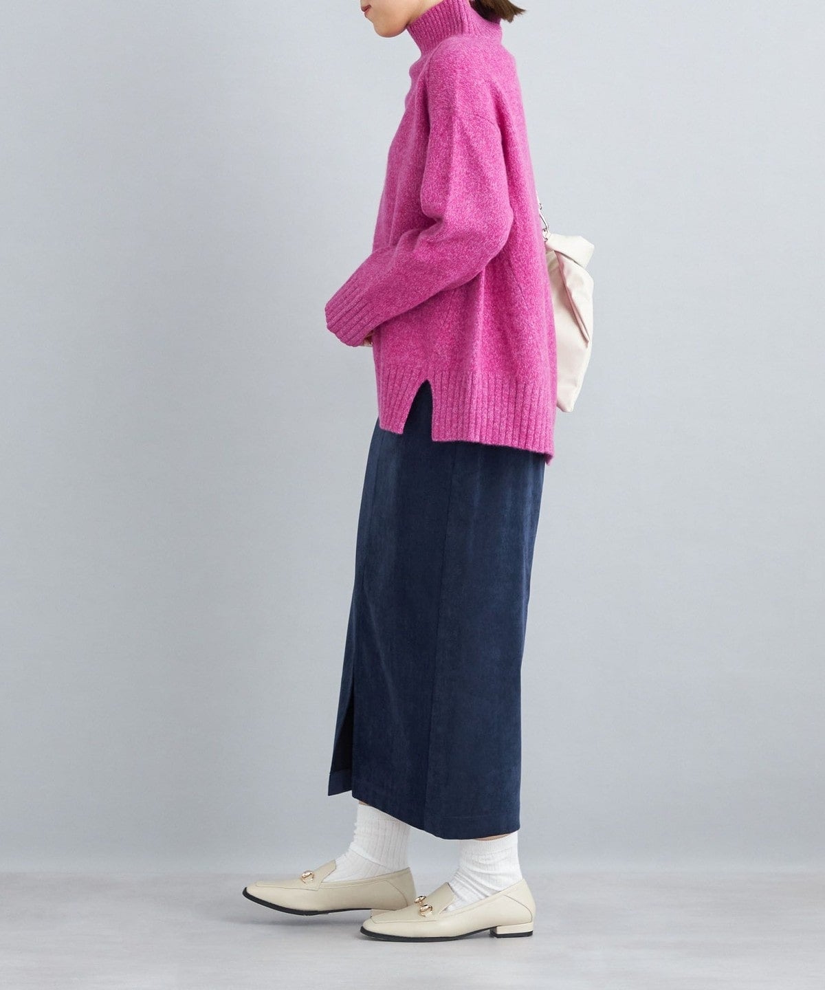 長めのタイトシルエットがカジュアルながらも女性らしいコーデュロイスカート。