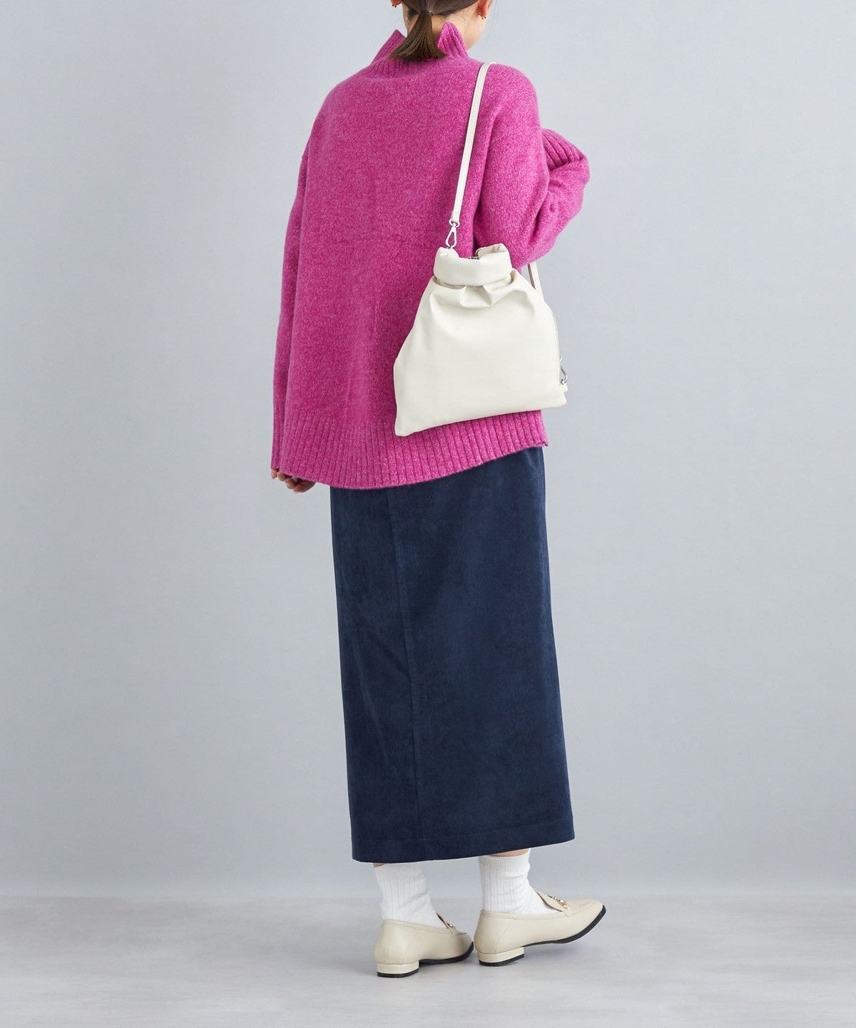 すっきりとしたシルエットなので、ボリュームのあるニットやアウターともバランスが取りやすい一着。