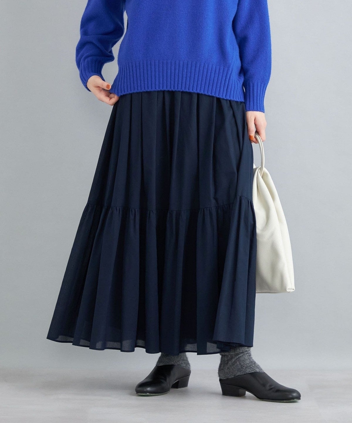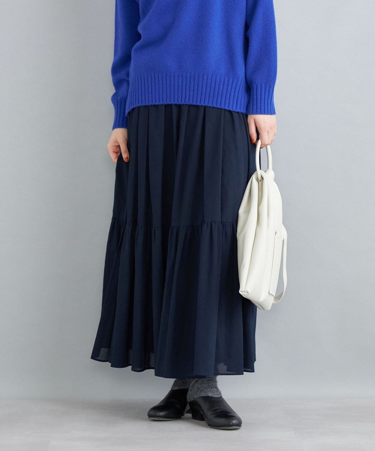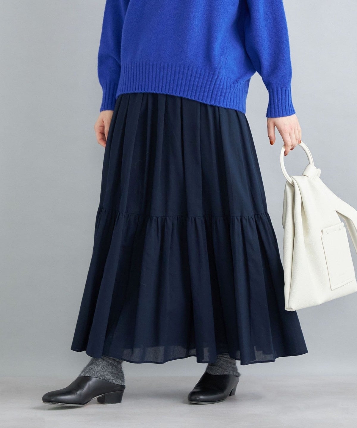 〈手洗い可能〉綿ドビー ティアード ギャザースカート