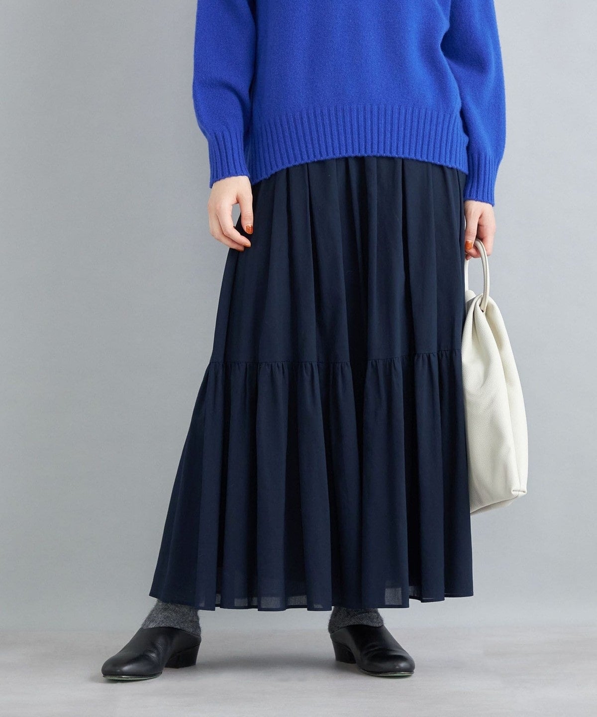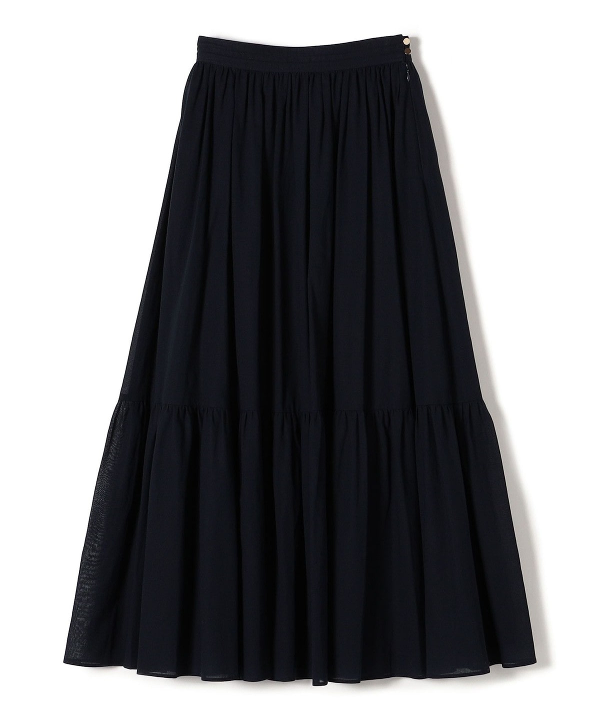 裾切り替えのギャザーに程よいボリュームが上品でエレガントな印象のティアードスカートです。