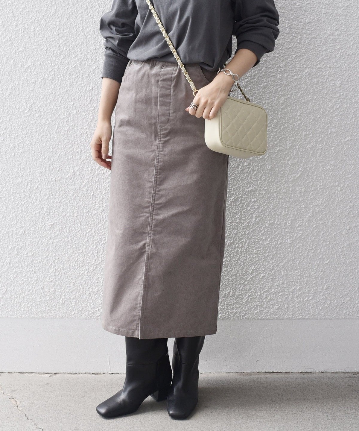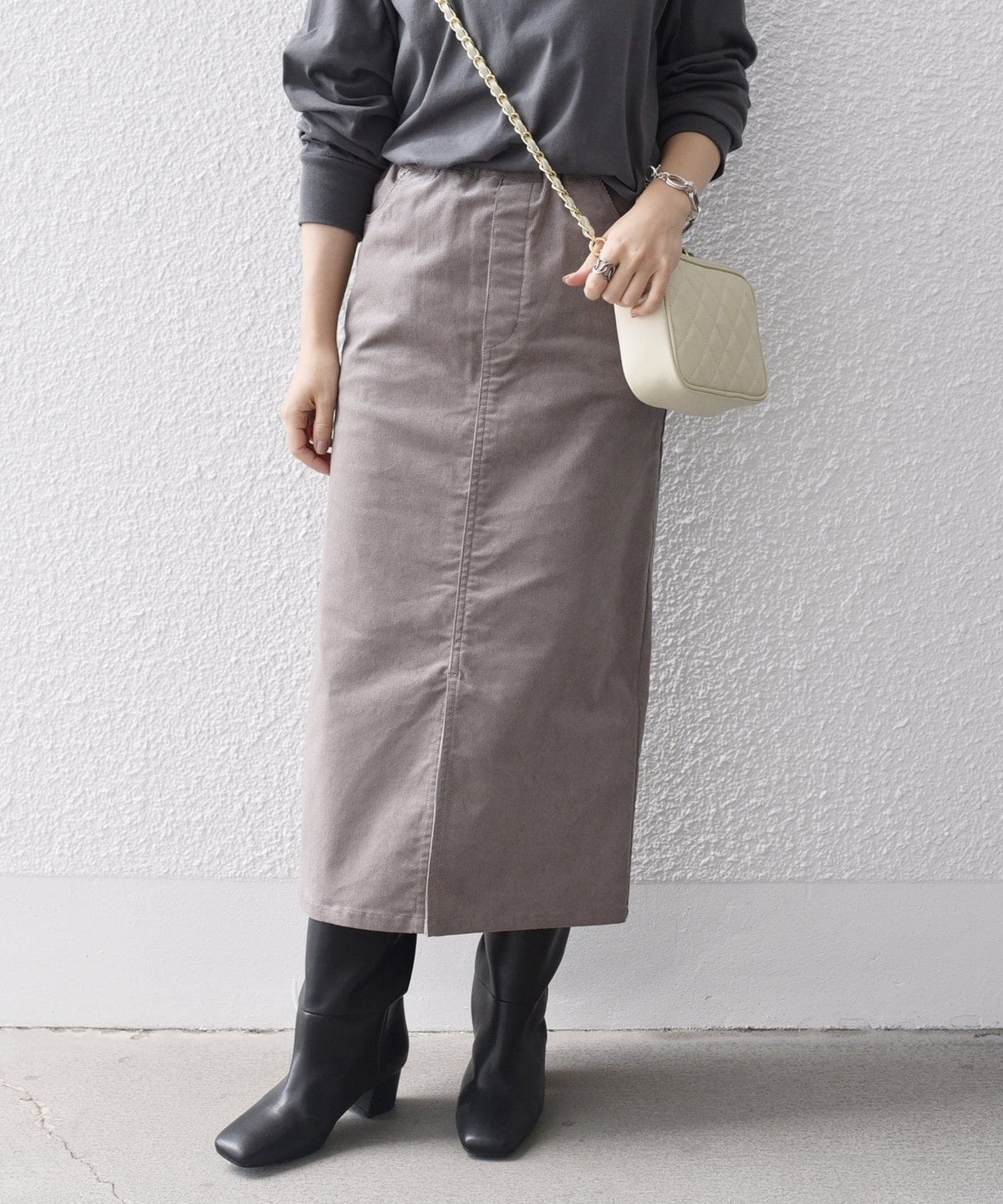〈手洗い可能〉ストレッチ コーデュロイ イージー ナロー スカート