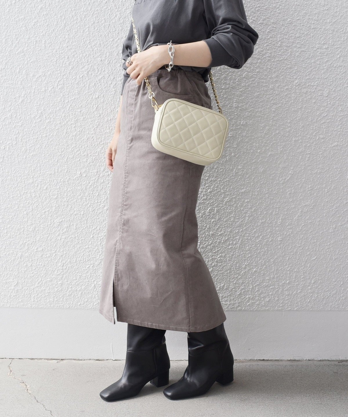 コメント:タイトめなシルエットですが、スリット入りで足捌きが良かったです◎