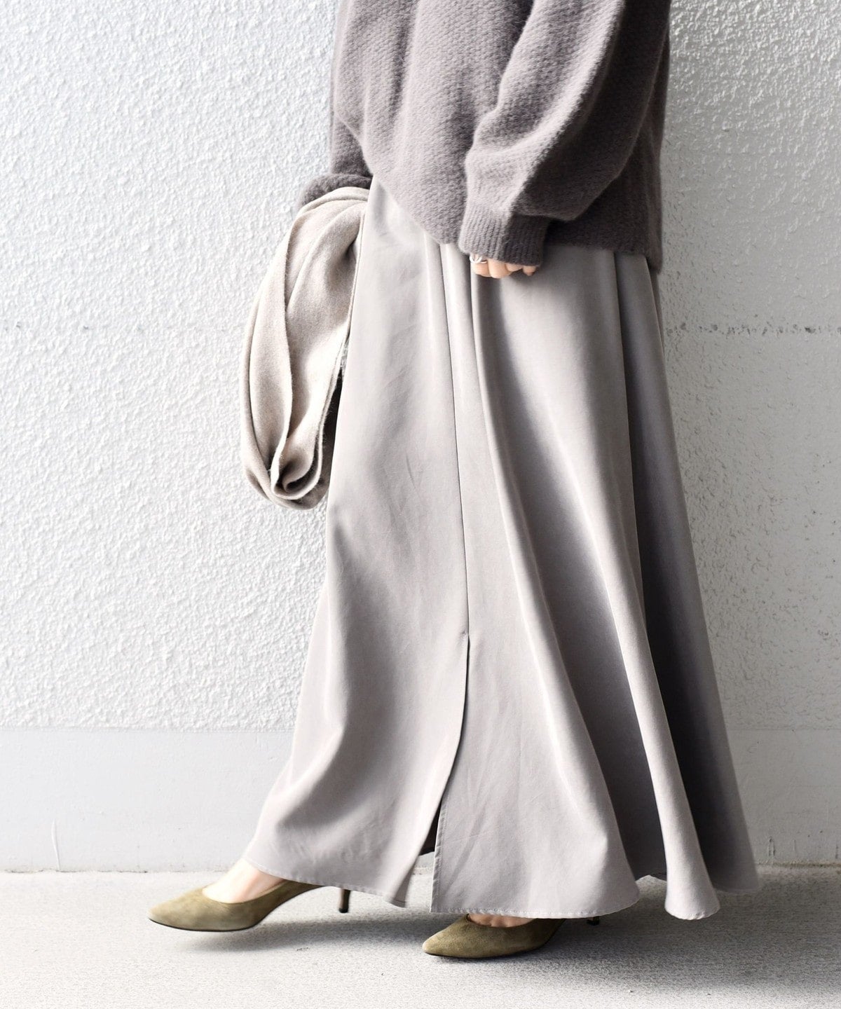 コメント:ボリューム感が素敵な一枚です◎スリットが入っているので足さばきも良く履き心地も◎
