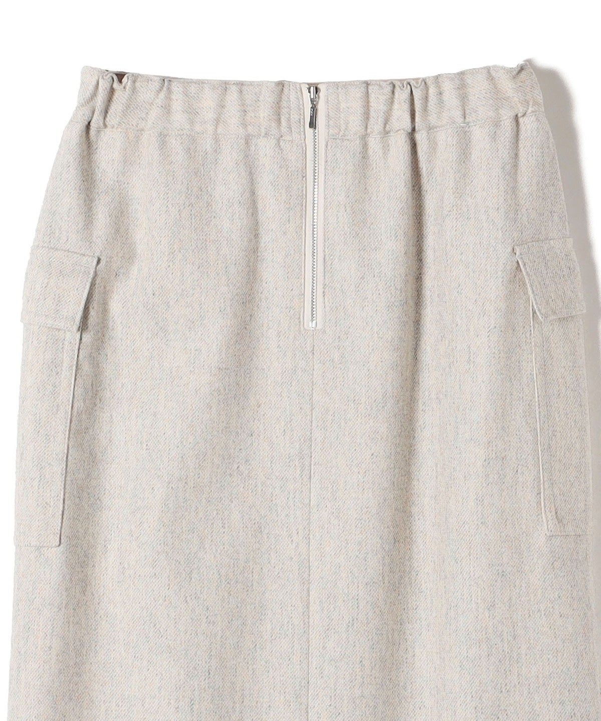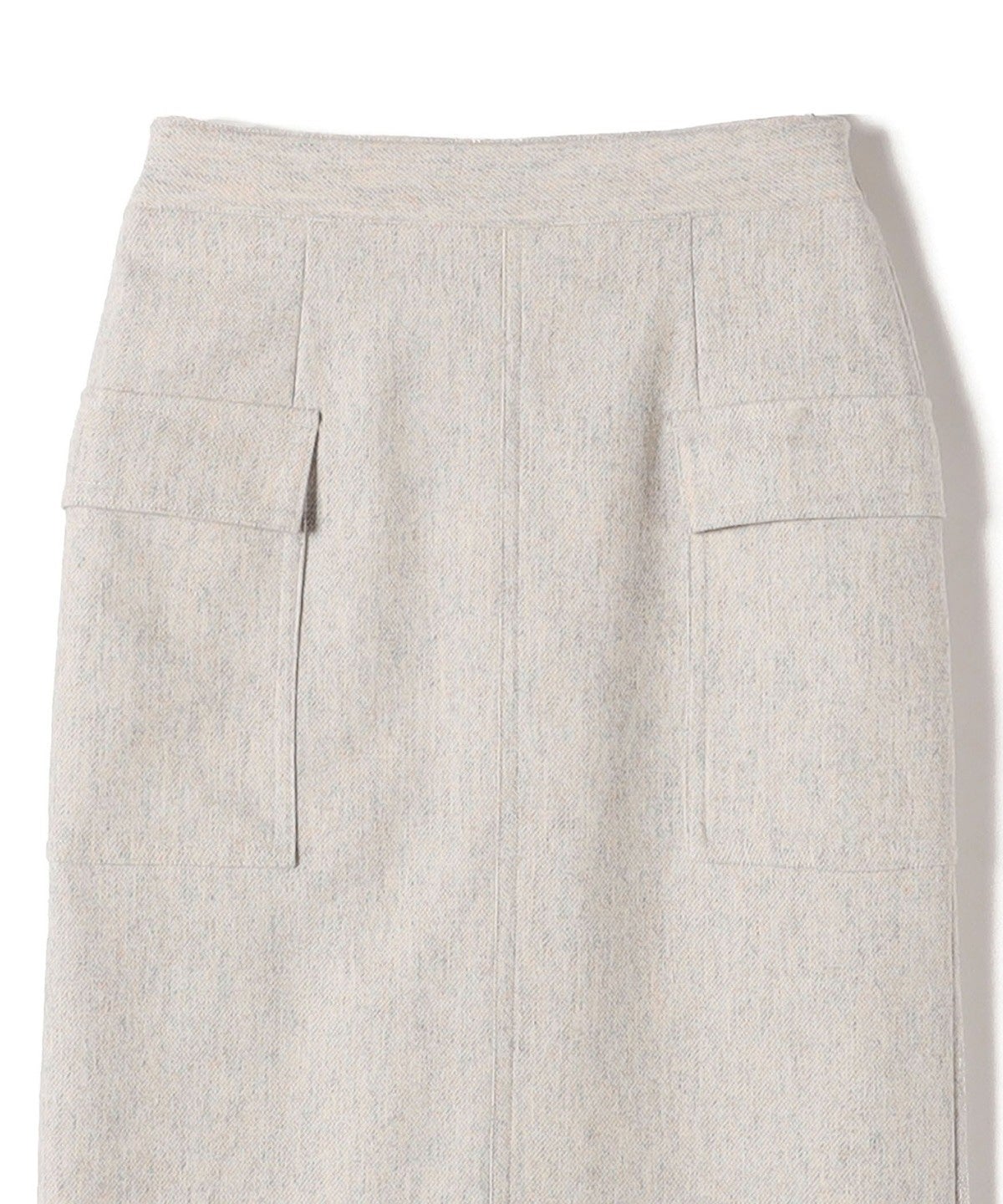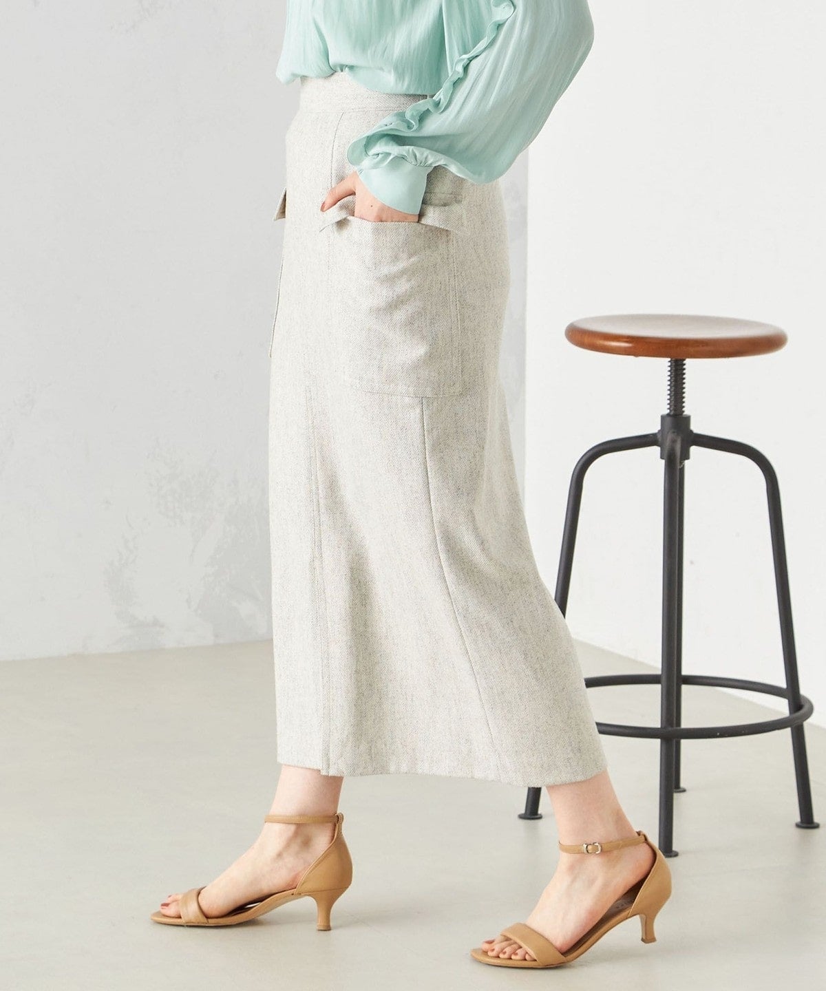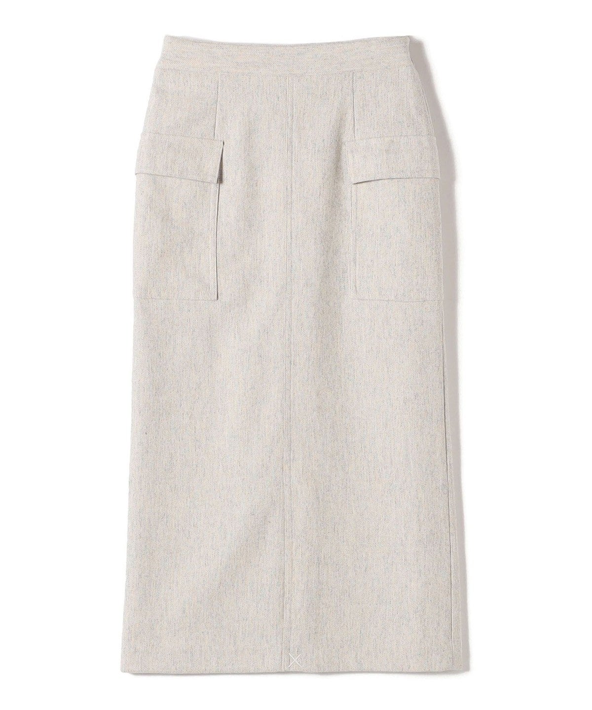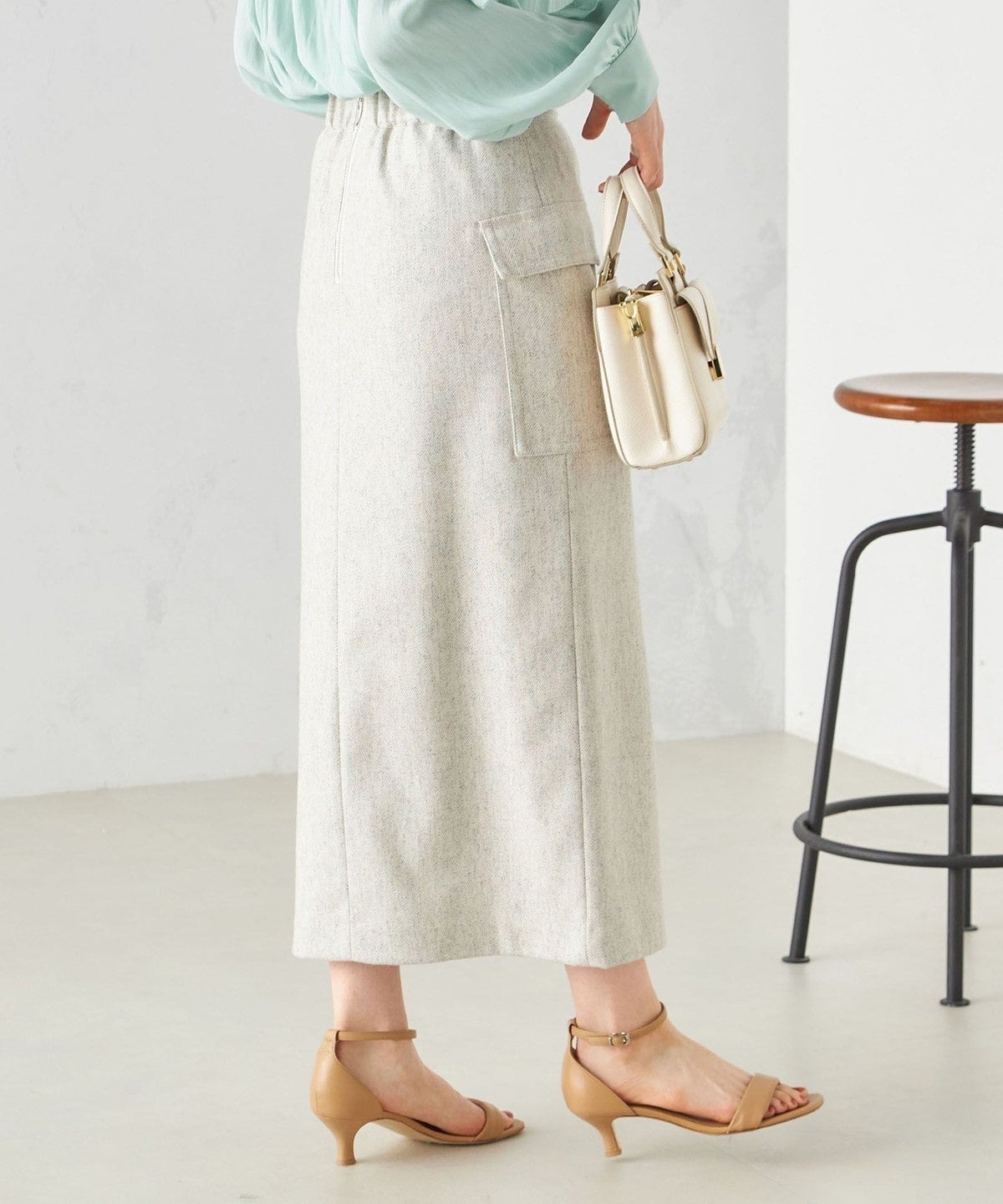 フロントに入ったスリットが女性らしい抜け感を演出し、フラップ付きのアウトポケットがポイントの今シーズンらしいアイテムです。