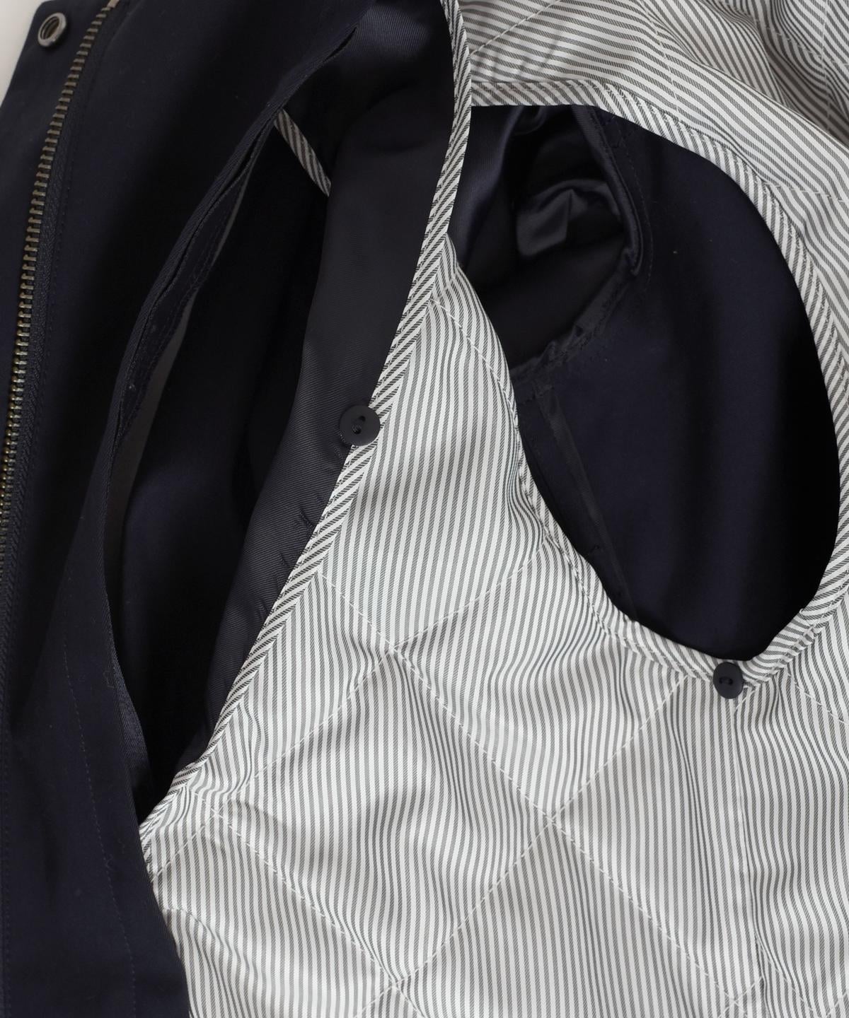 クリーンな印象のストライプ柄のライナー付きで、幅広いシーズンで活躍する汎用性が高い一着です。