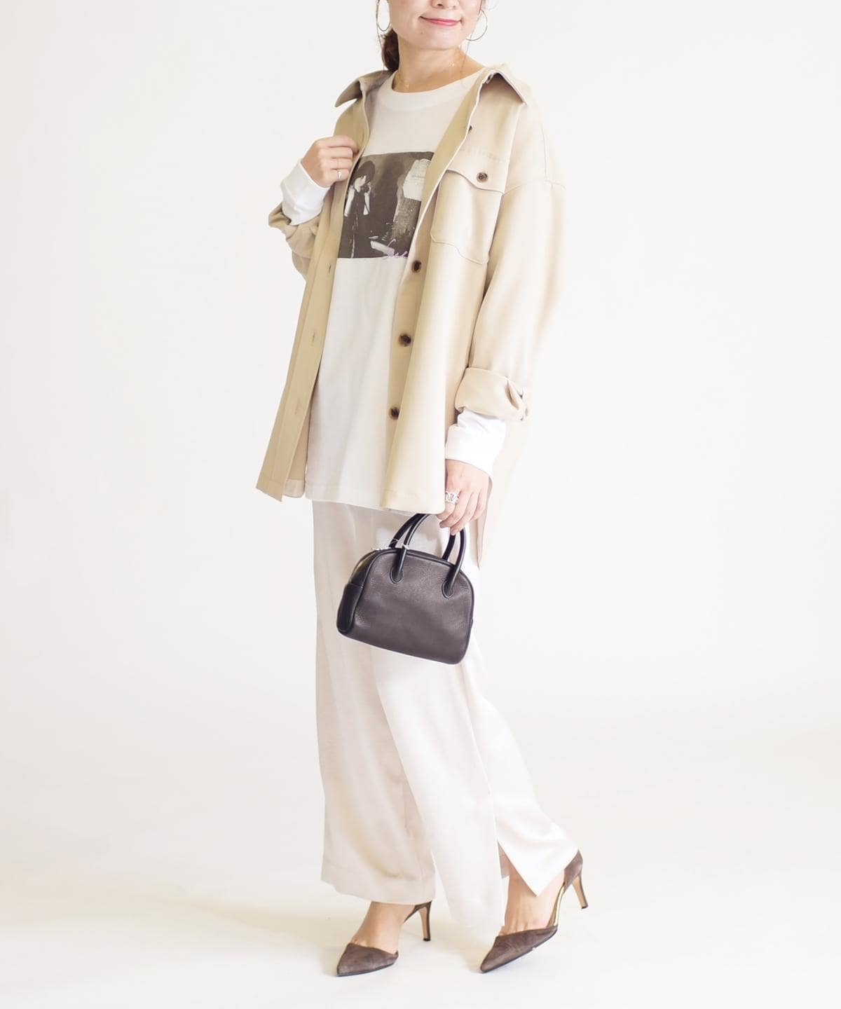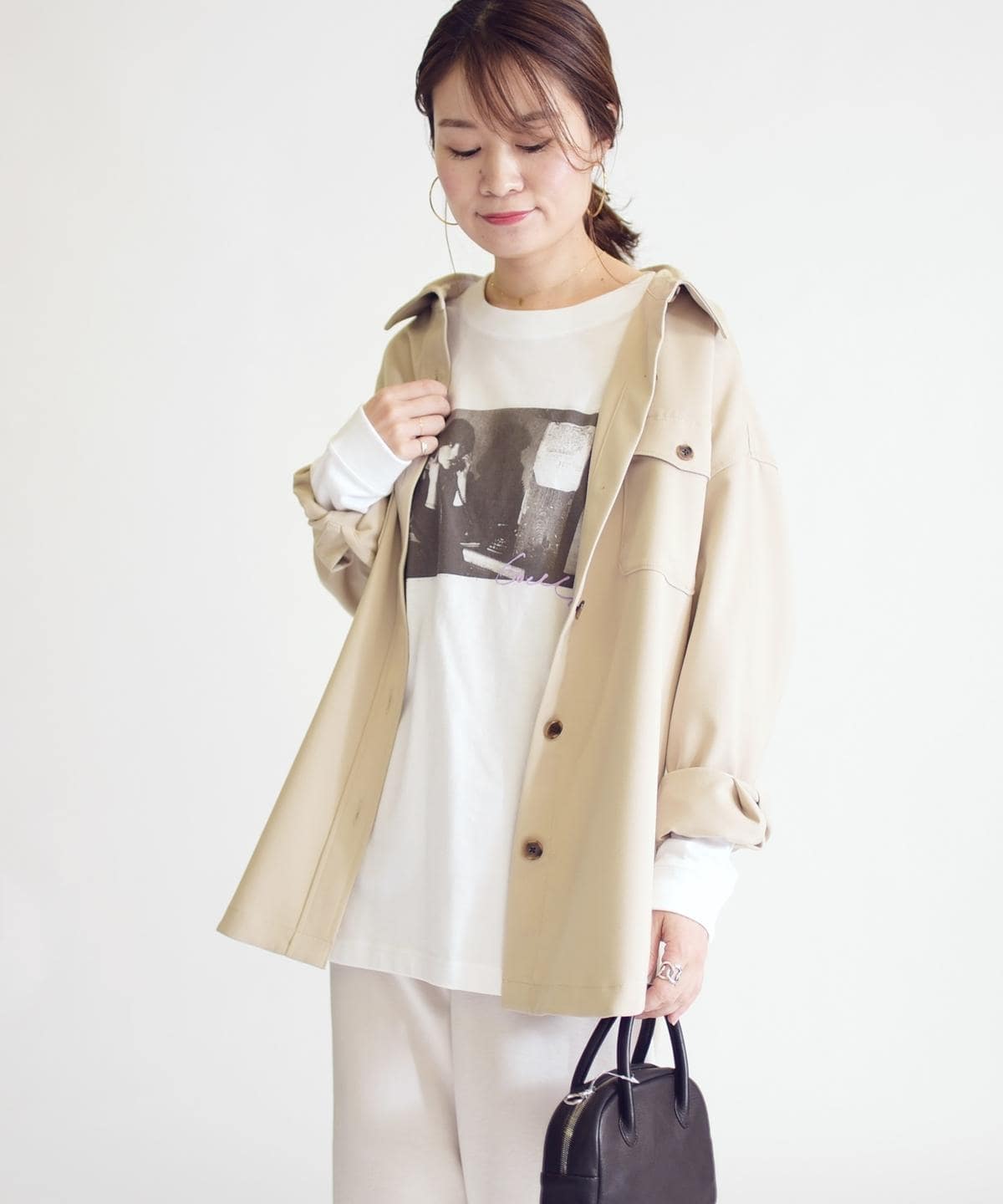 サイズ感:ヒップまで隠れる着丈で、身幅もゆとりがありリラックス感のあるシルエット。ゆったりとしているのでインナー次第でロングシーズン活躍してくれそう。