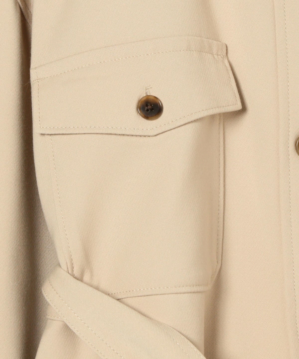 付属のベルトがついているので、ウエストマークすることでシルエットの変化をつけて着ていただけます。
