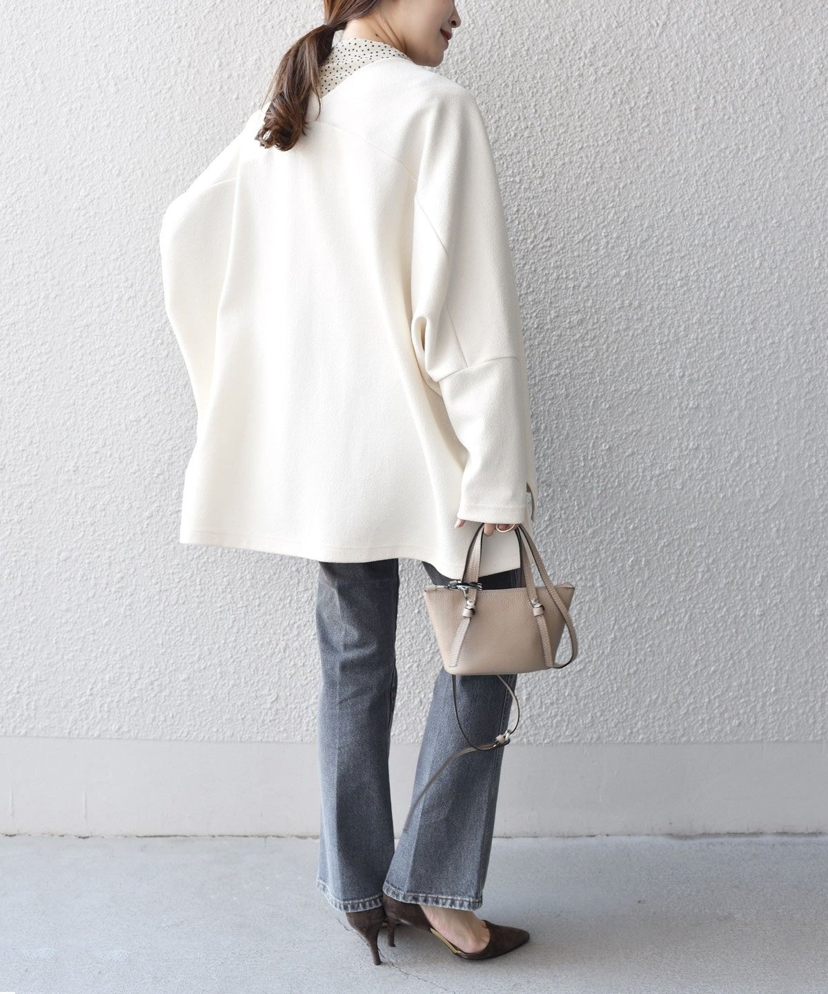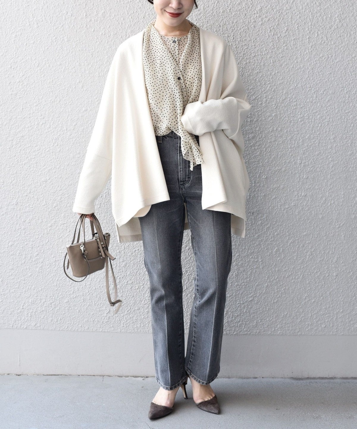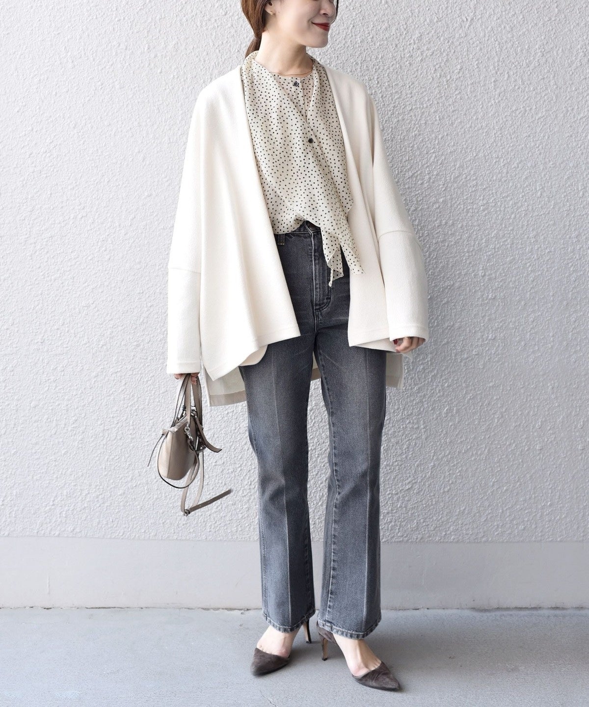 リラックス感のある羽織りで、少し抜いた着こなしも楽しめます。