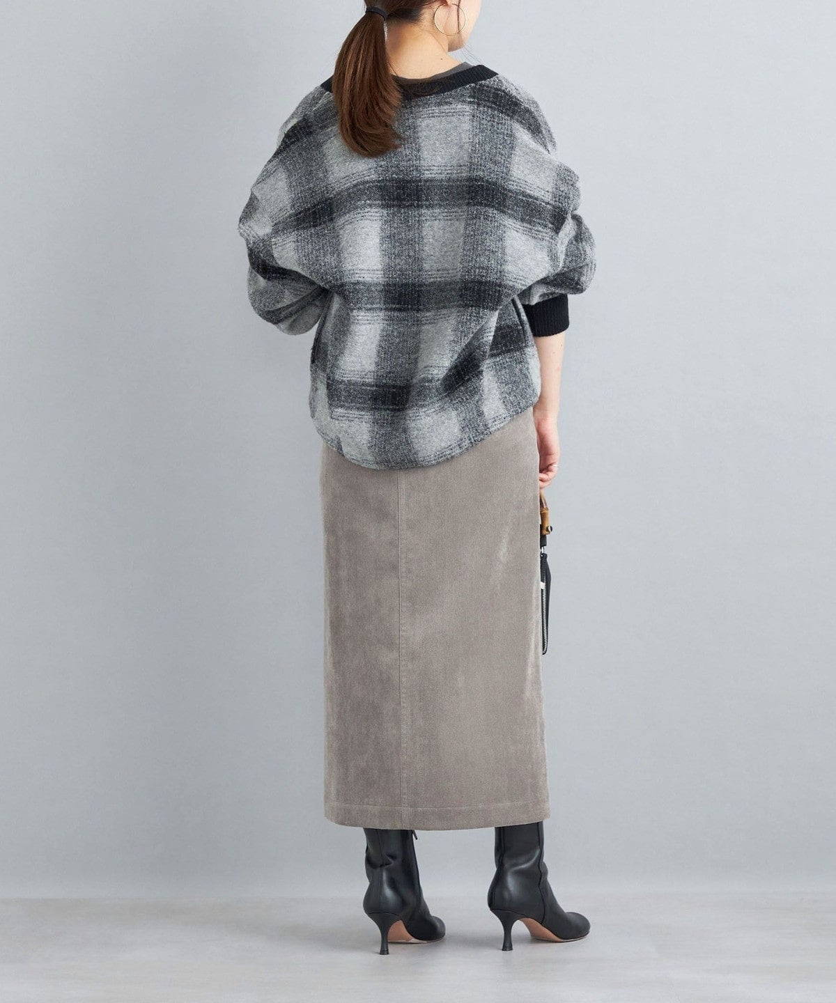 秋冬にかけてハイネックのトップスなどを合わせて、少し抜いて羽織っていただくとより