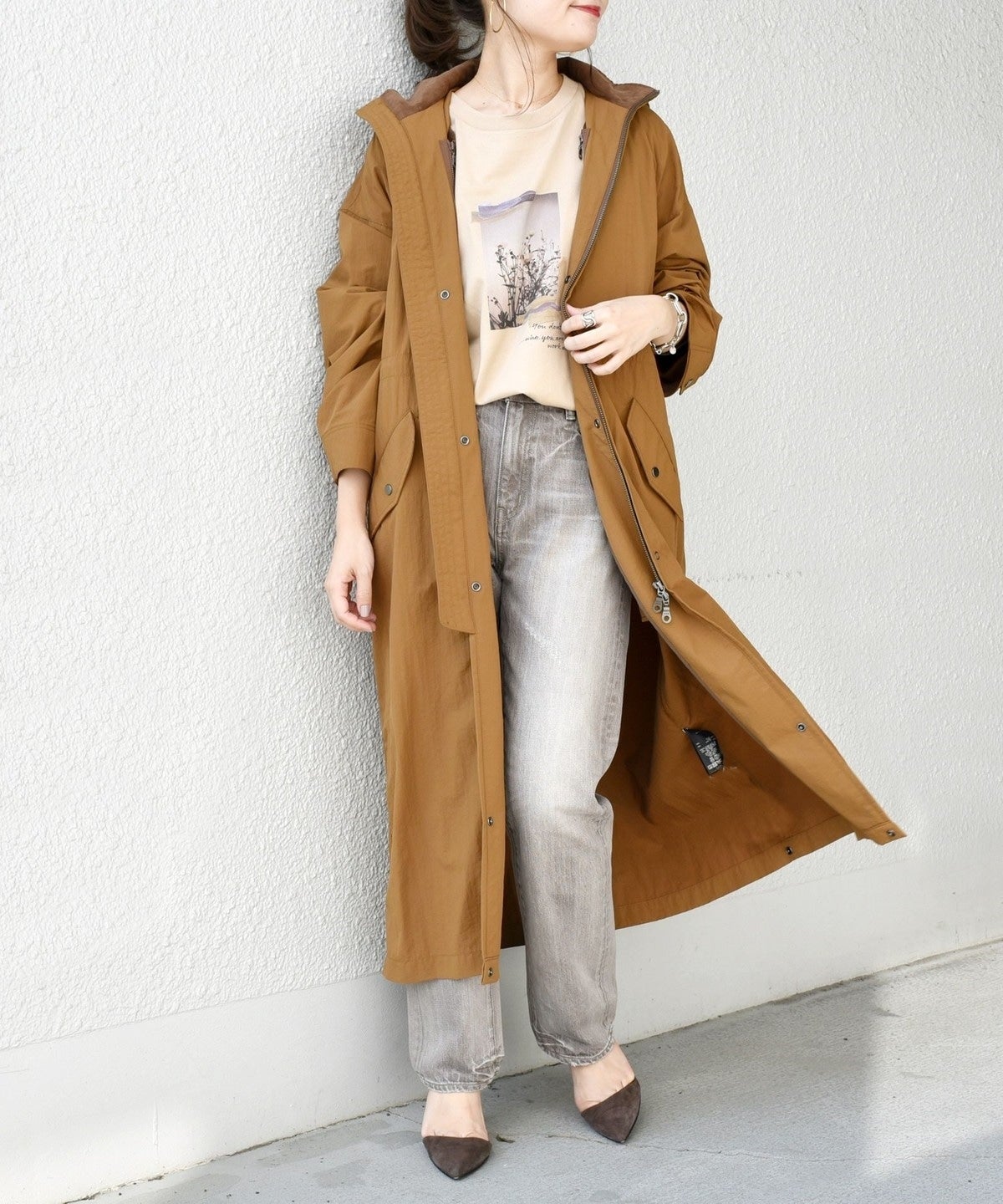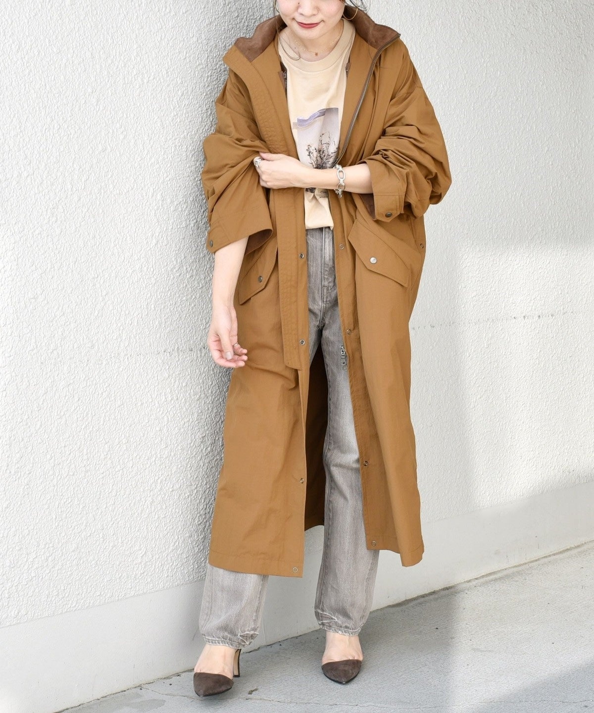 今年らしい大きめなシルエットもポイントですが、裾の折り返しで着丈の変化が楽しめる2WAY仕様がこだわりポイント。