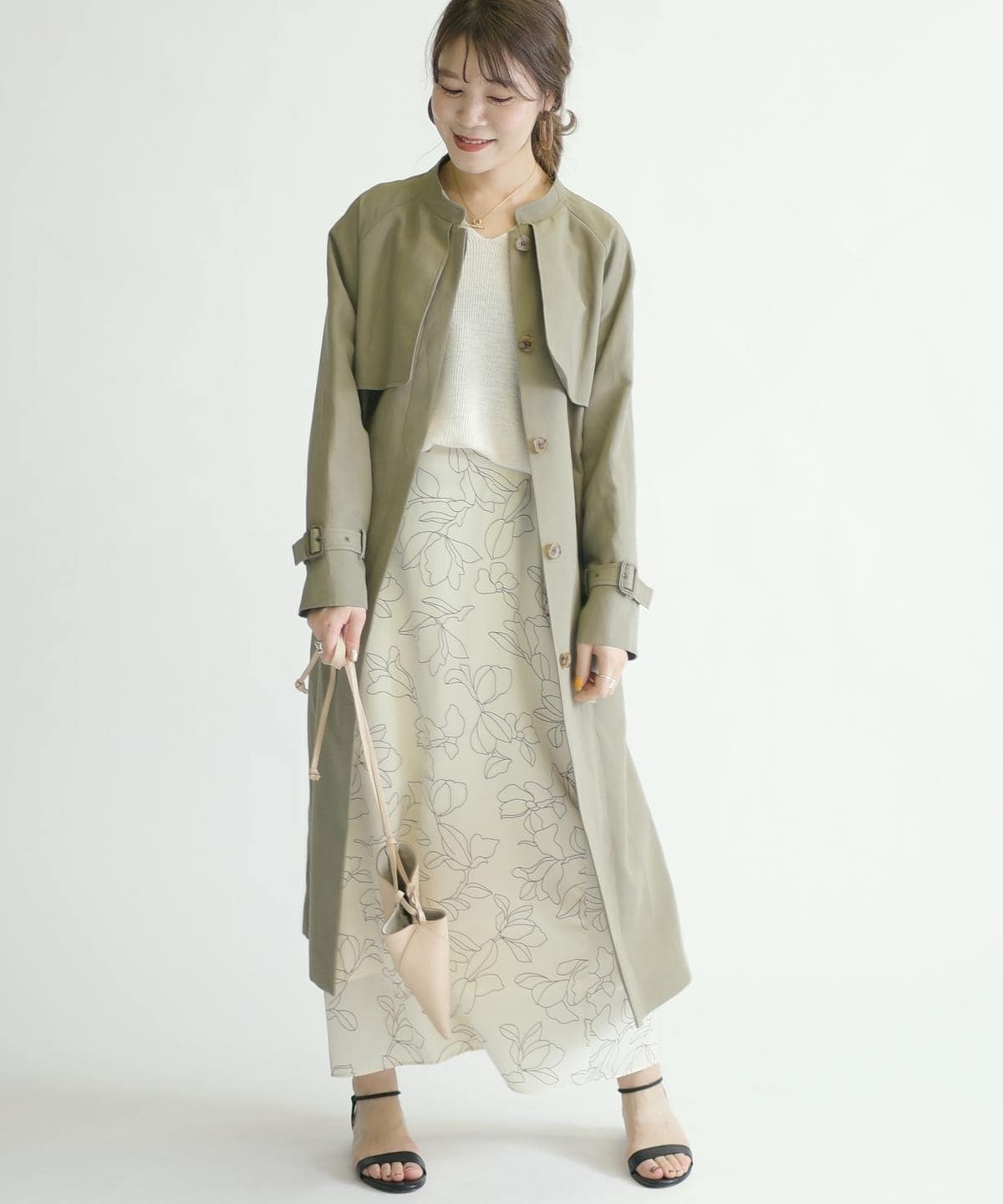 トレンチのディティールを最小限に無くし、かっちりしすぎないデザインに仕上げた1枚。