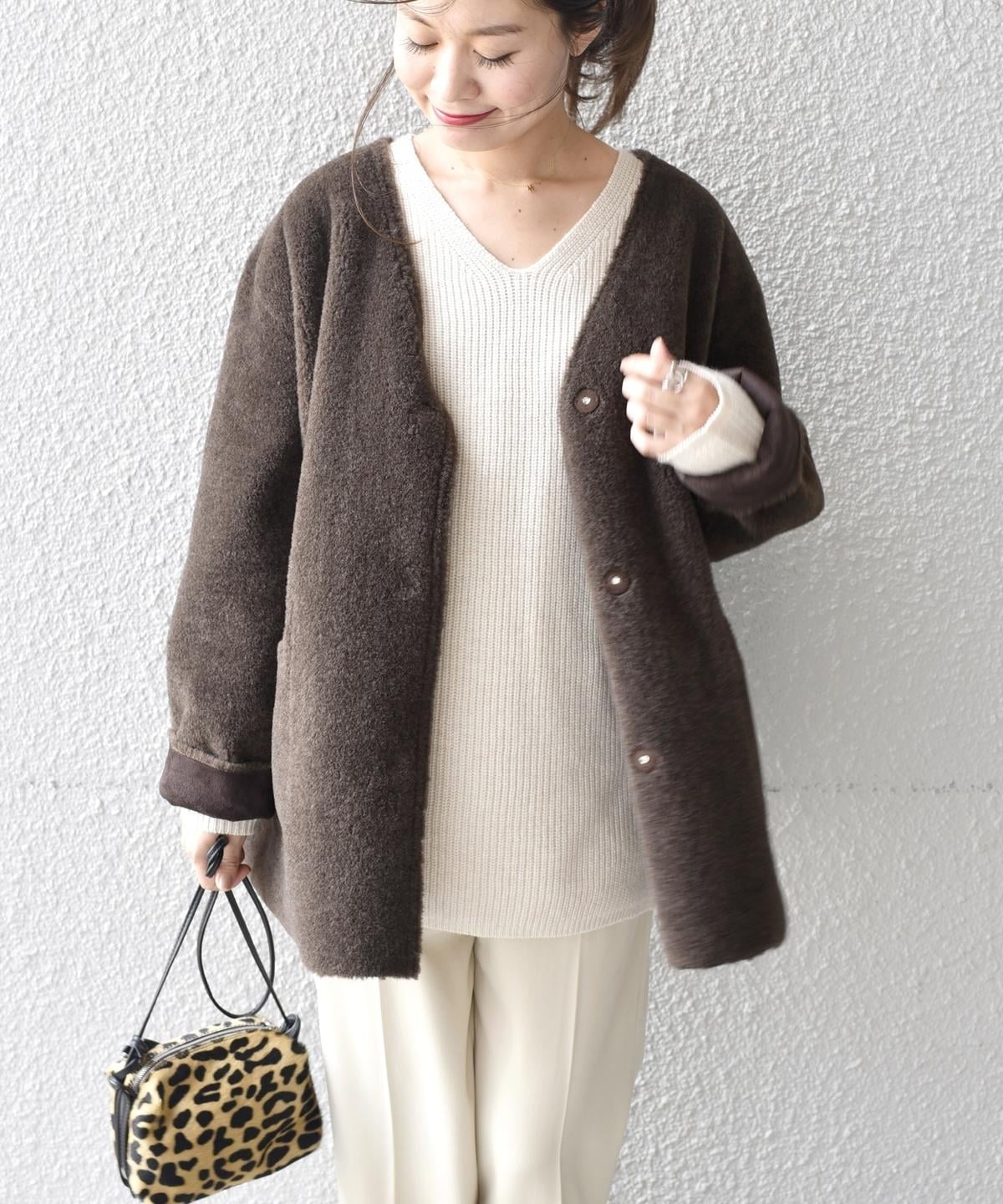 まるでリアルムートンかのようにリバーシブル仕立てが美しく、上品な表情に仕上がっています。