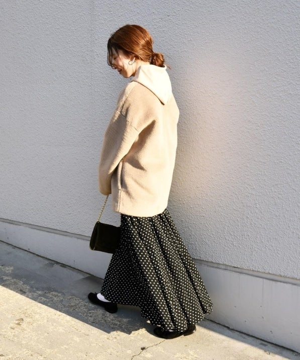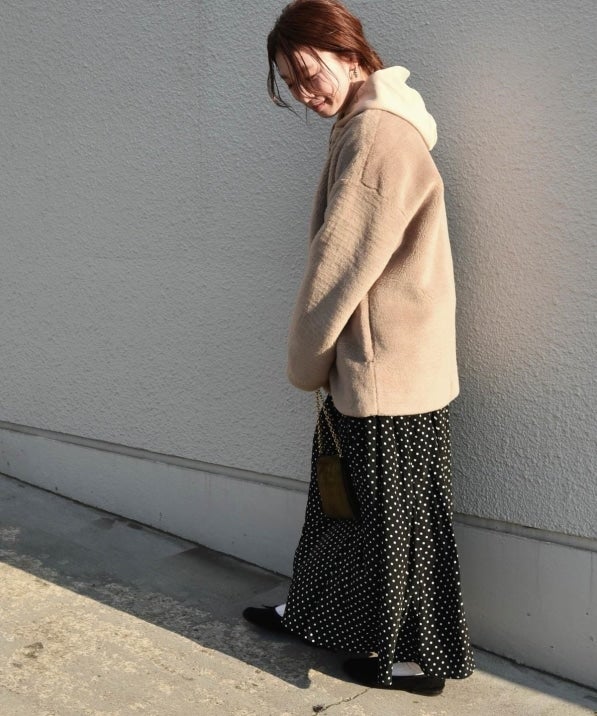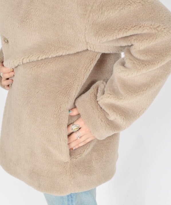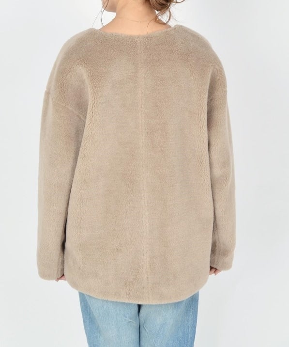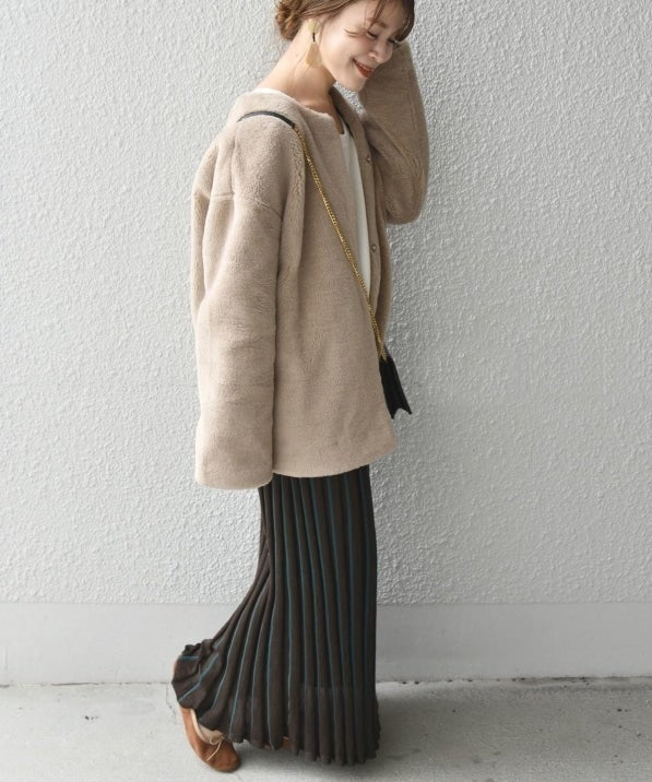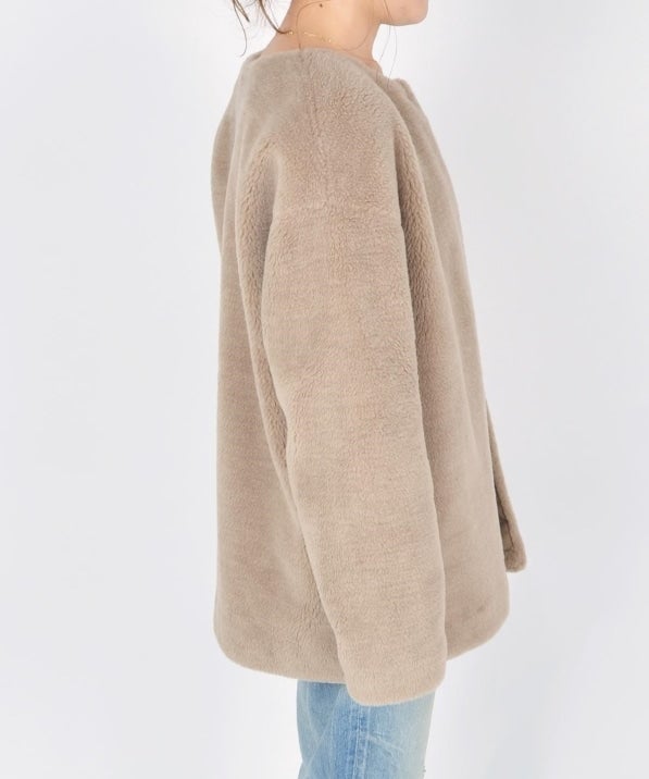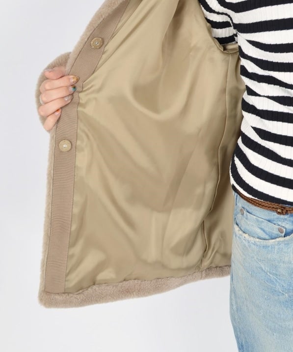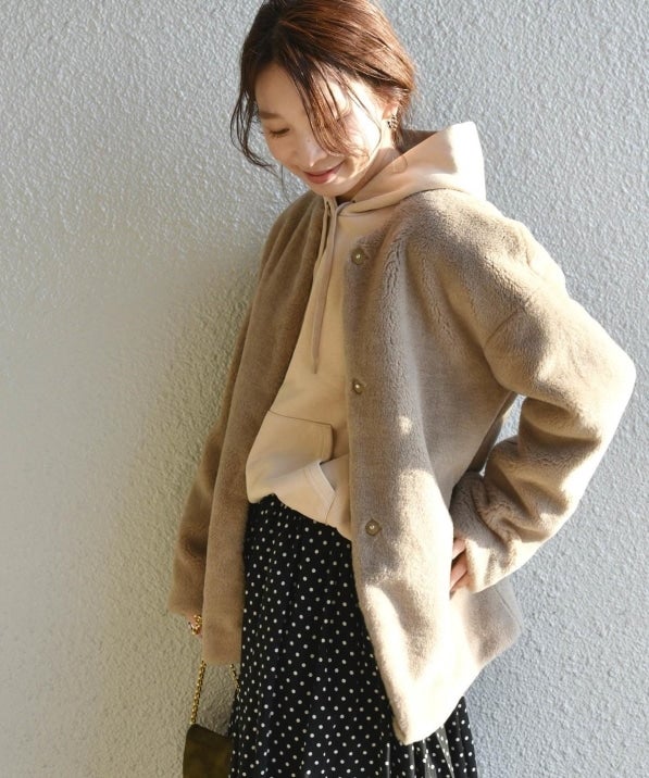 やわらかな風合いと温かみのあるボアコート。ノーカラーで仕上げた大人っぽく女性らしいアイテムです。マキシスカートやパンツなどバランスのとりやすい着丈となっています。