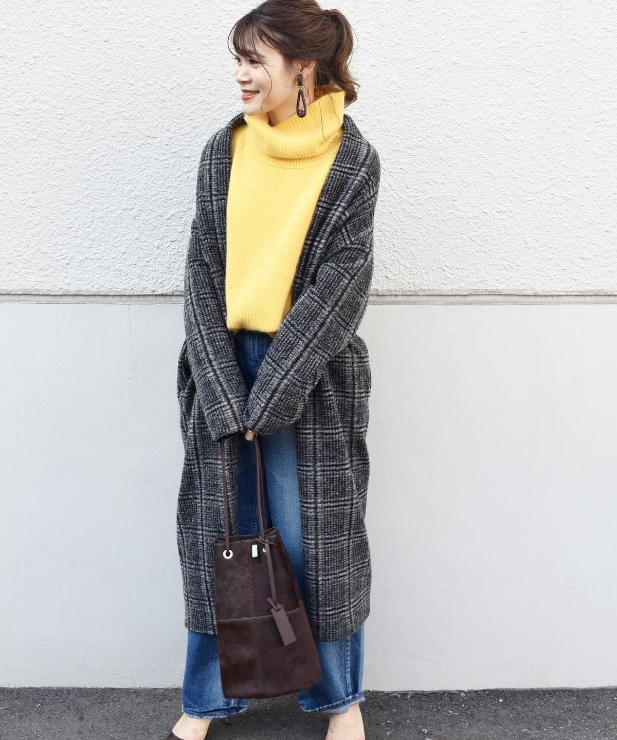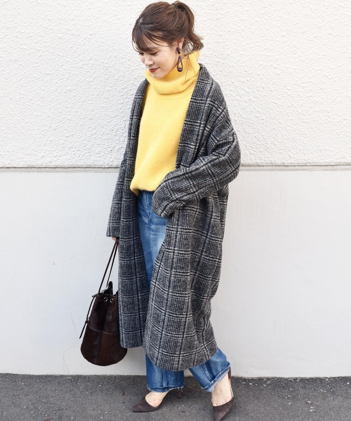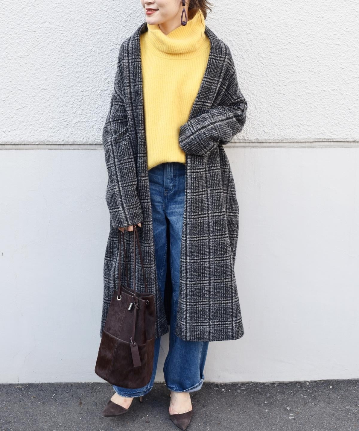 ゆったりとしたシルエットが気軽に羽織れるチェックのロングコート。