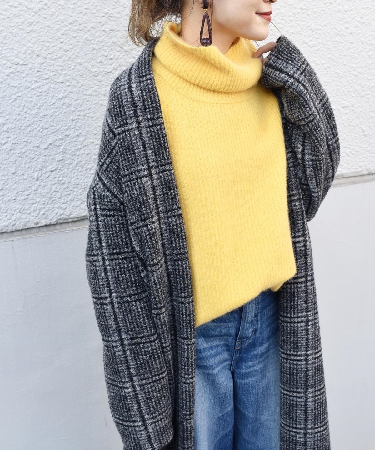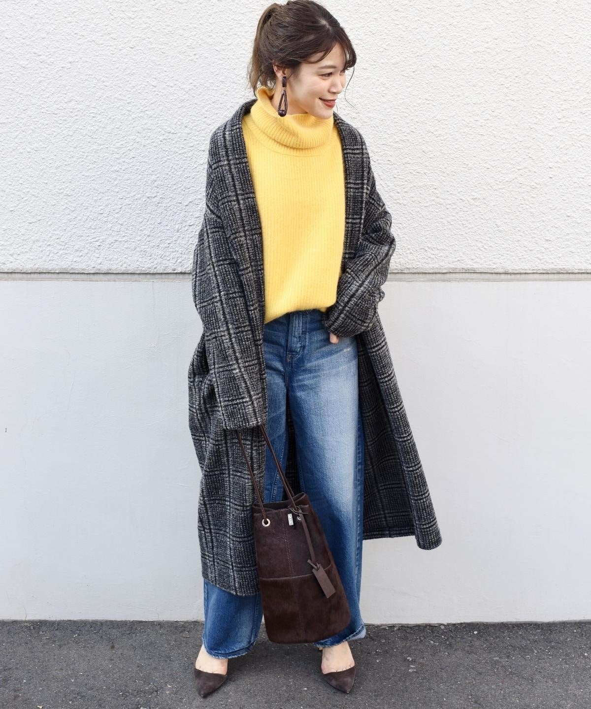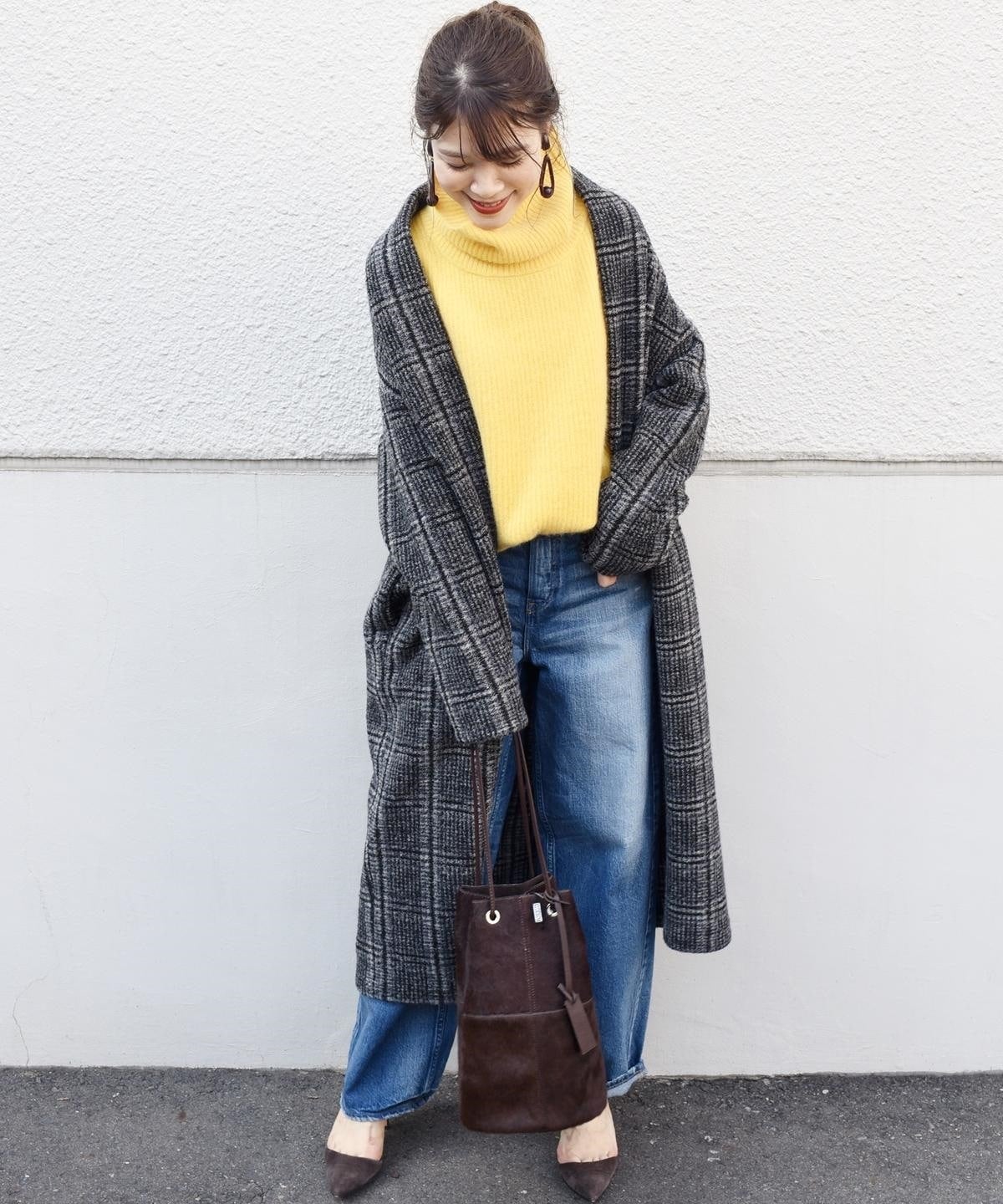 ゆったりとしたシルエットが気軽に羽織れるチェックのロングコート。