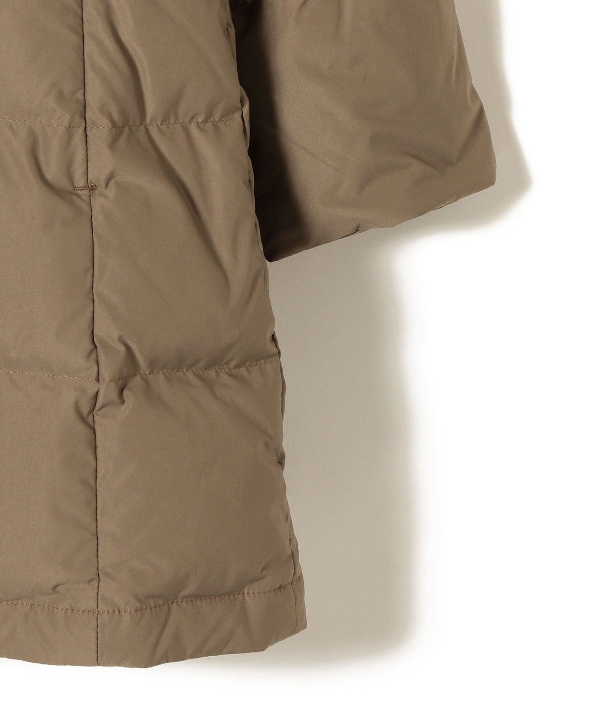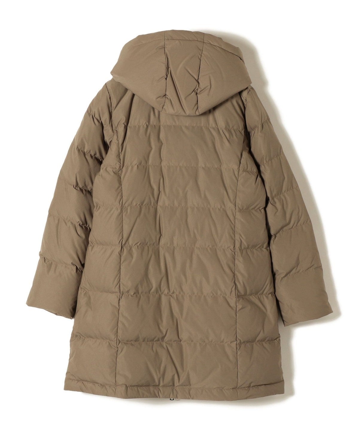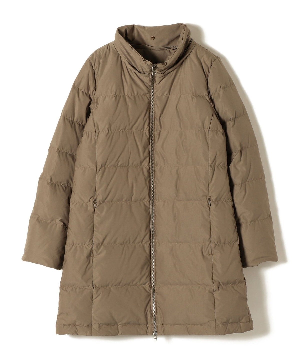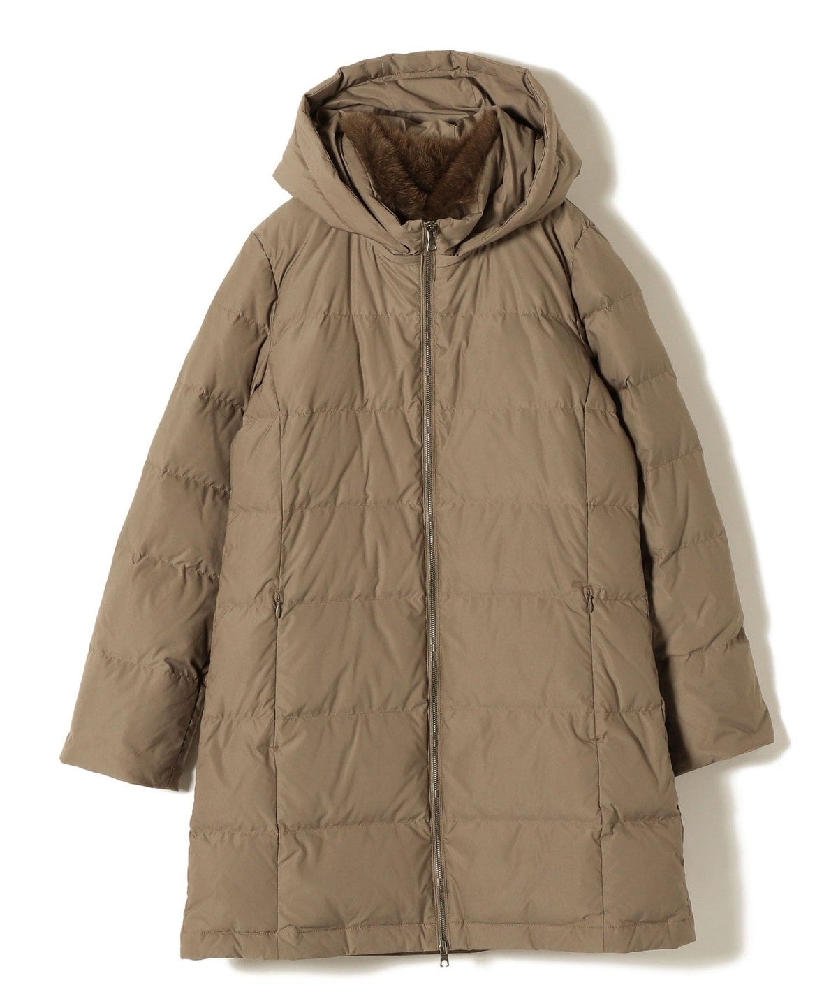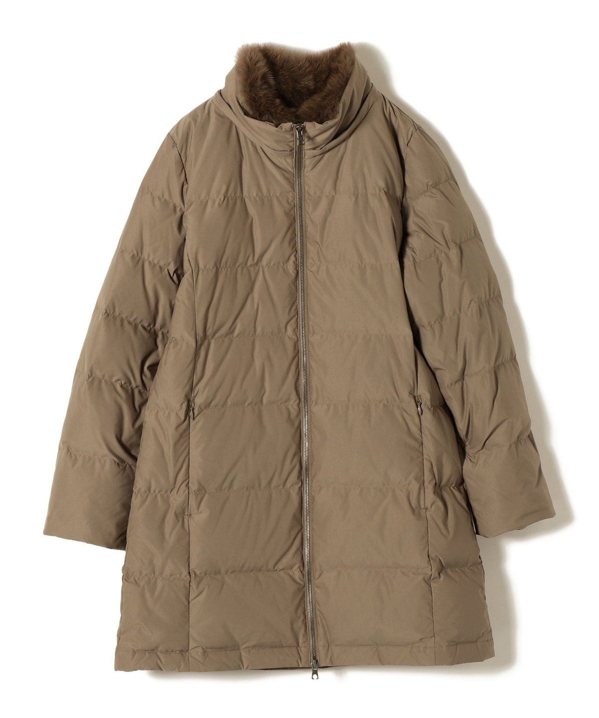 嵩高で滑らかな表面タッチ、コンパクトな風合い、適度なストレッチ性がある素材を使用したロングダウン。