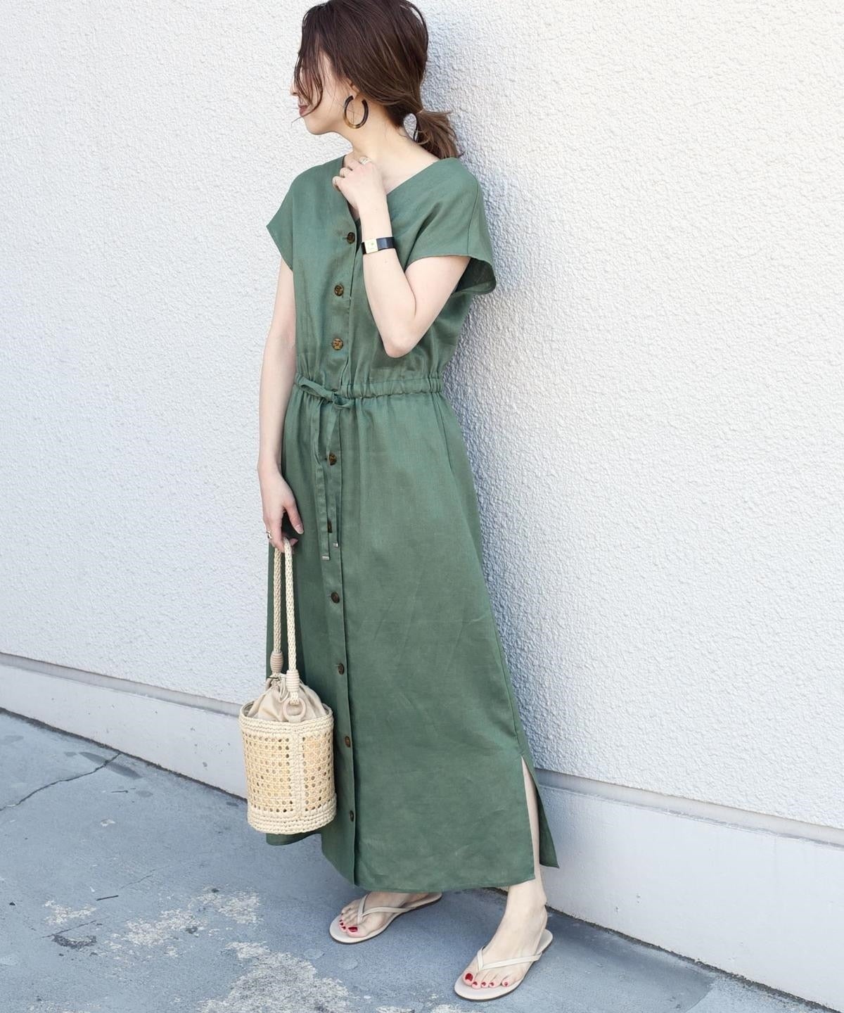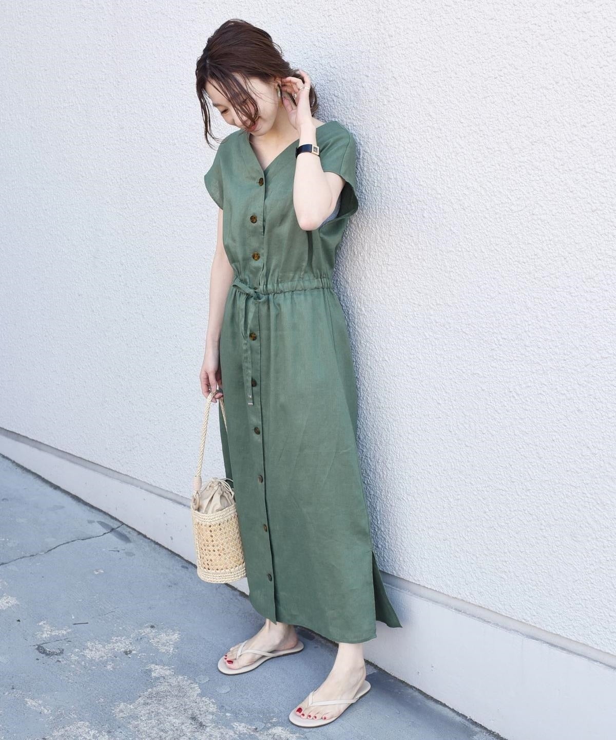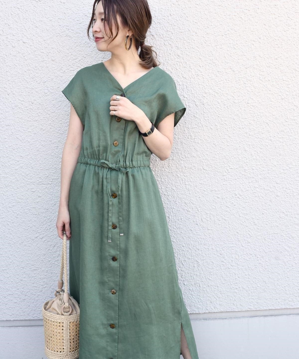 〈手洗い可能〉2WAYリネンVネックワンピース