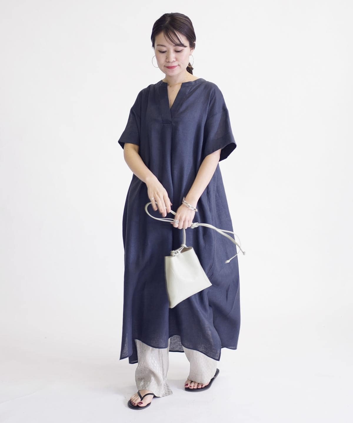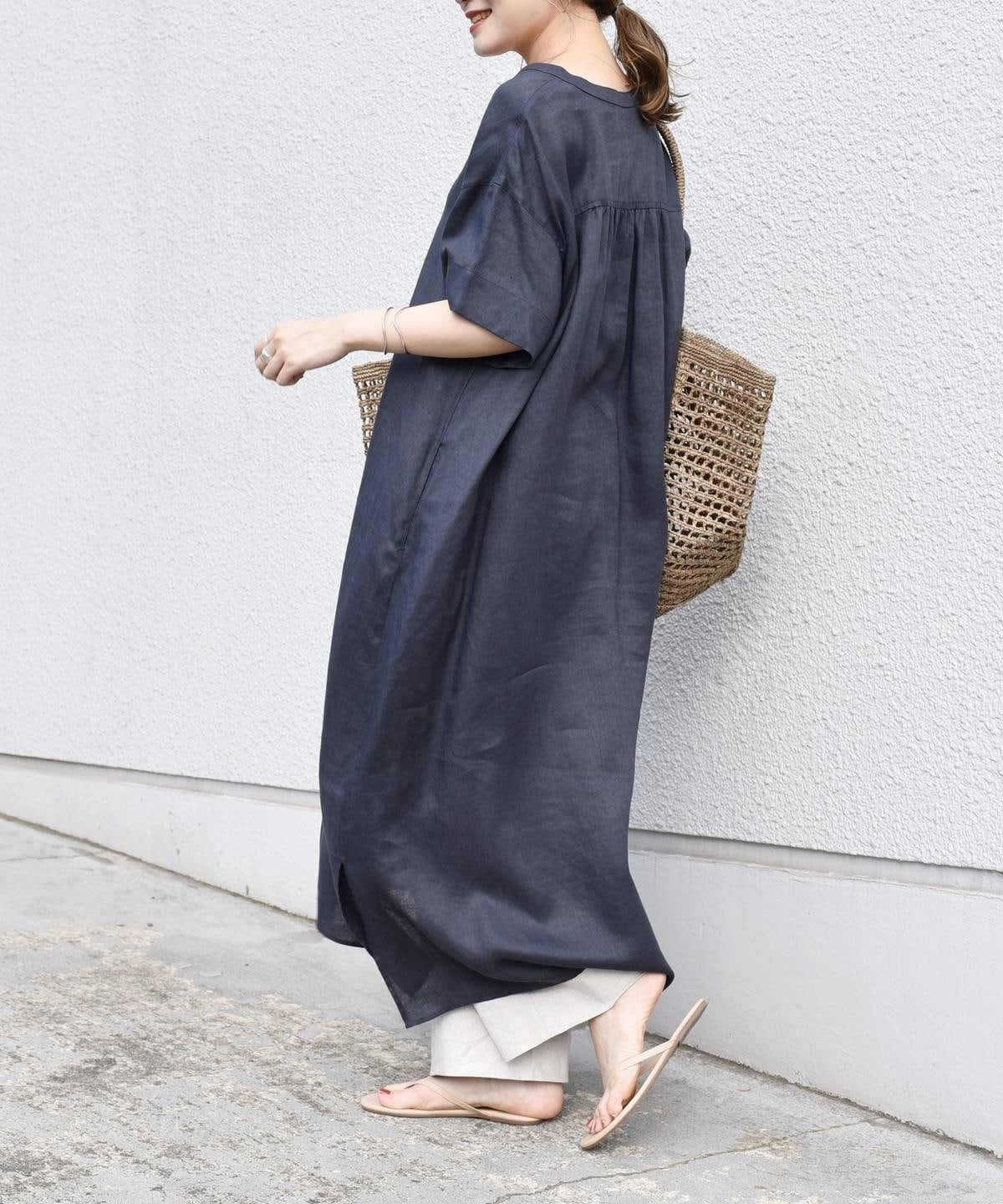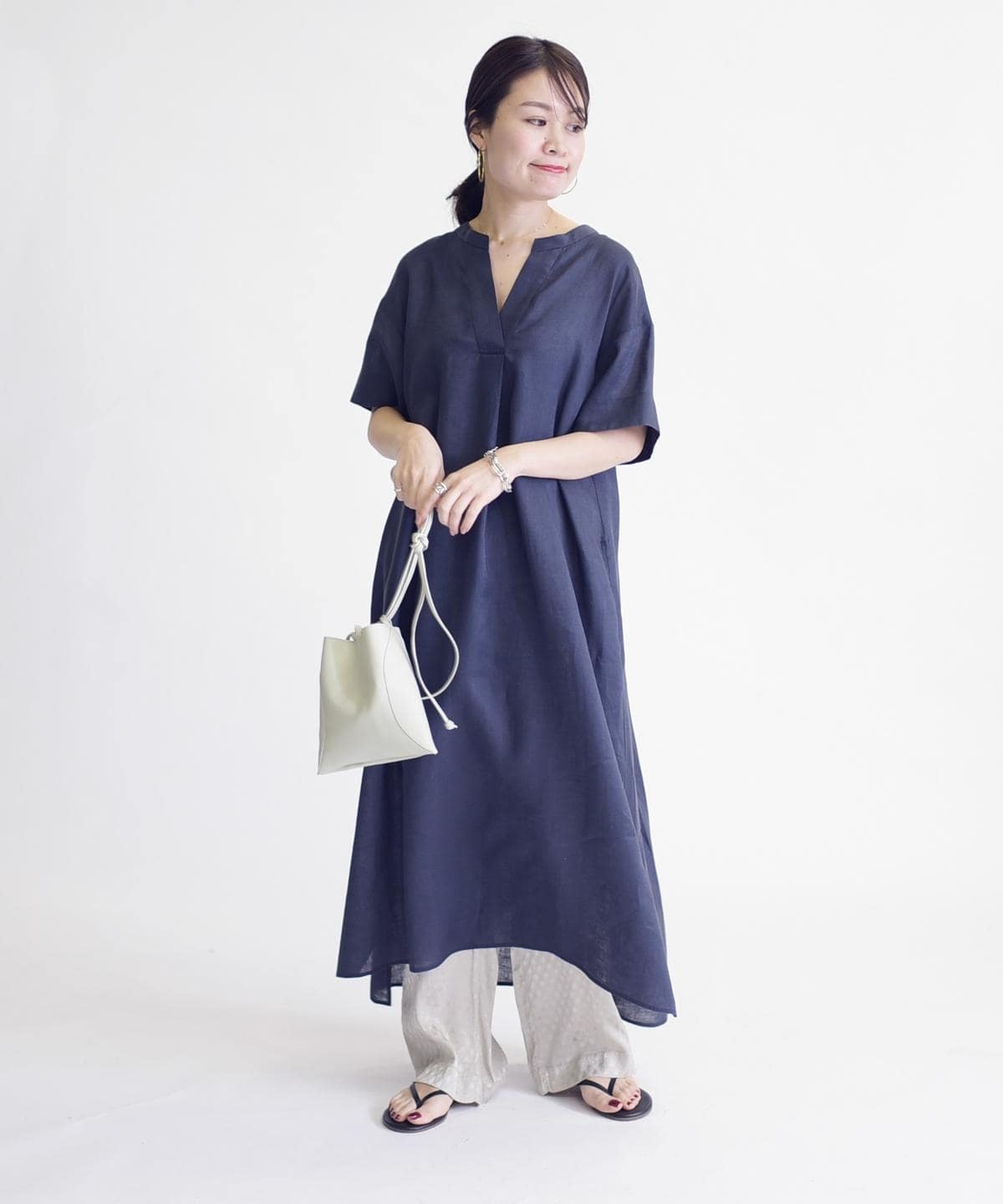 テレデランリネンを使用した涼やかなワンピース。トレーサビリティーのしっかりとしたフランス、ノルマンディー地方のリネンを仕様しています。ご家庭でお手入れができるので、デイリーにぴったりな一品◎