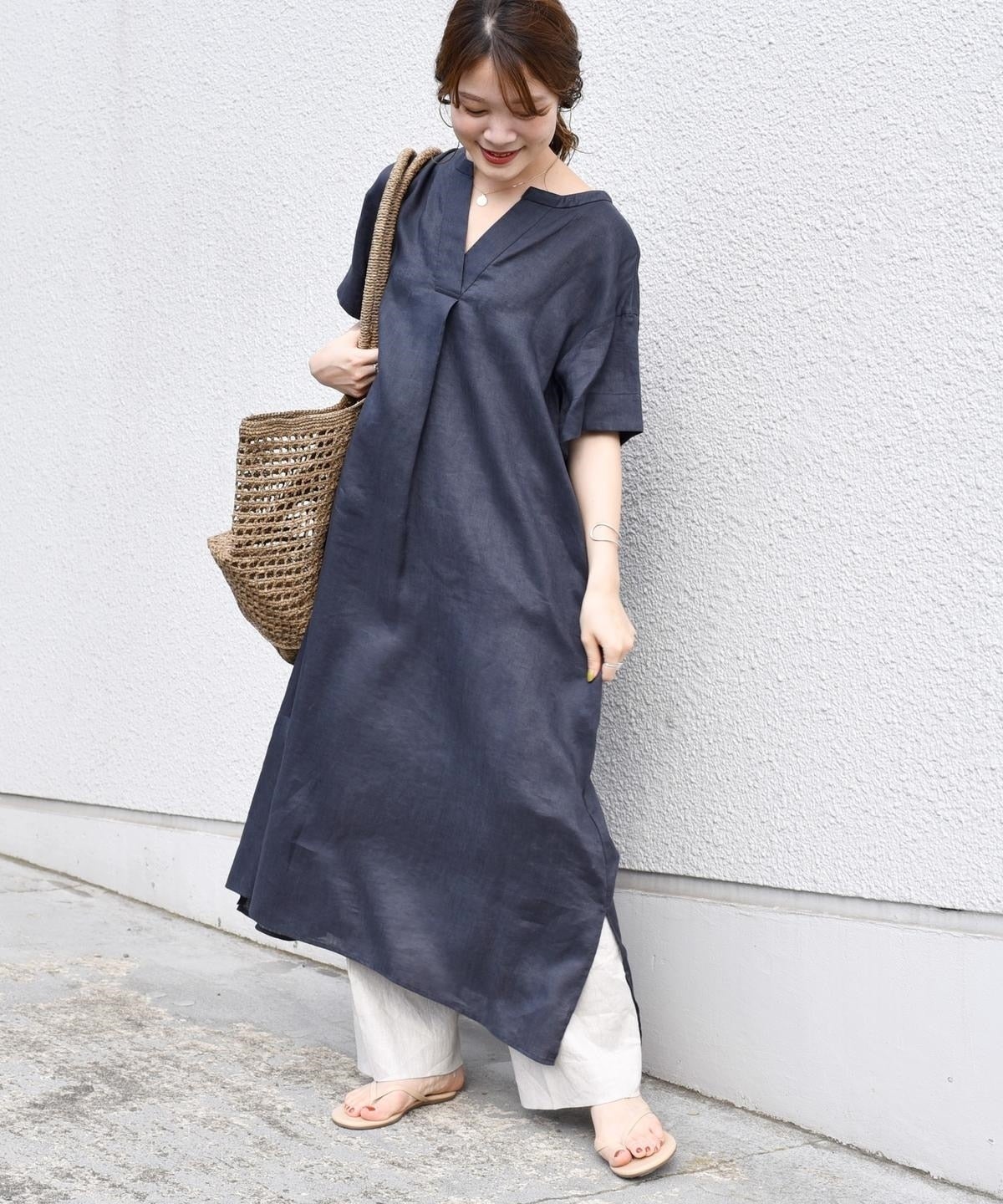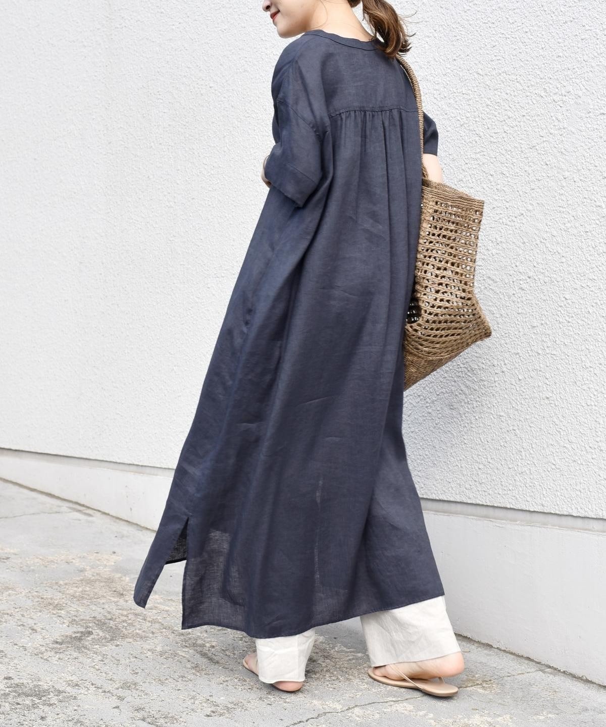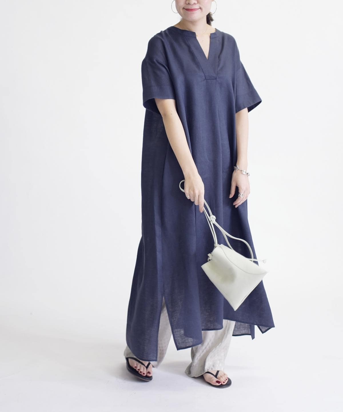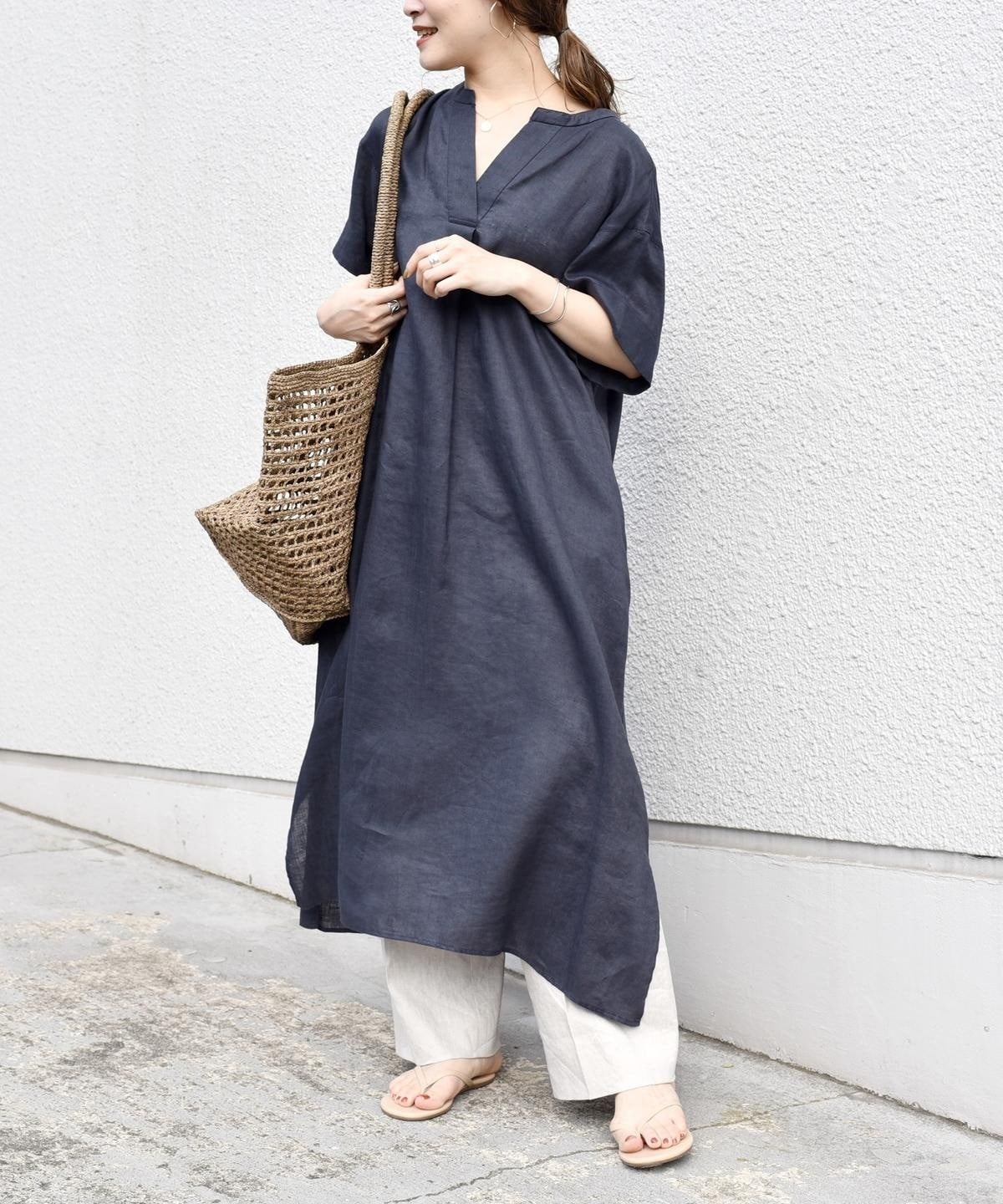 テレデランリネンを使用した涼やかなワンピース。トレーサビリティーのしっかりとしたフランス、ノルマンディー地方のリネンを仕様しています。ご家庭でお手入れができるので、デイリーにぴったりな一品◎
