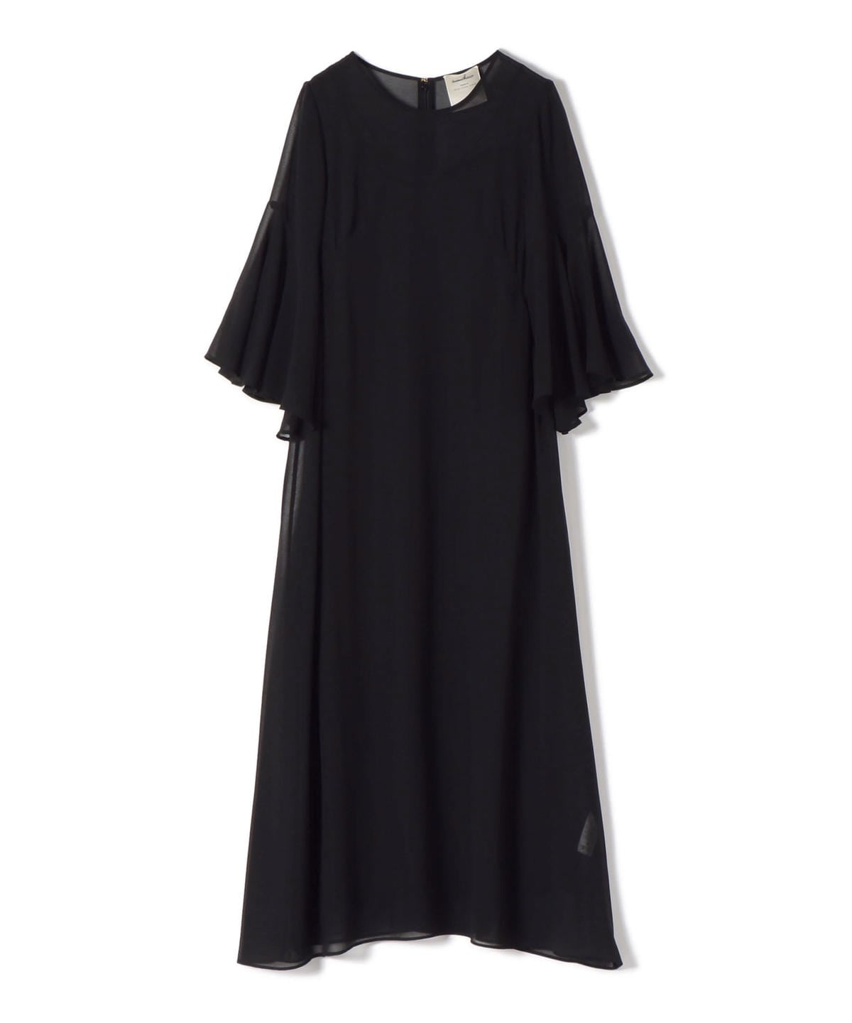 ひらひらと広がるフレアスリーブが女性らしい印象のワンピース。