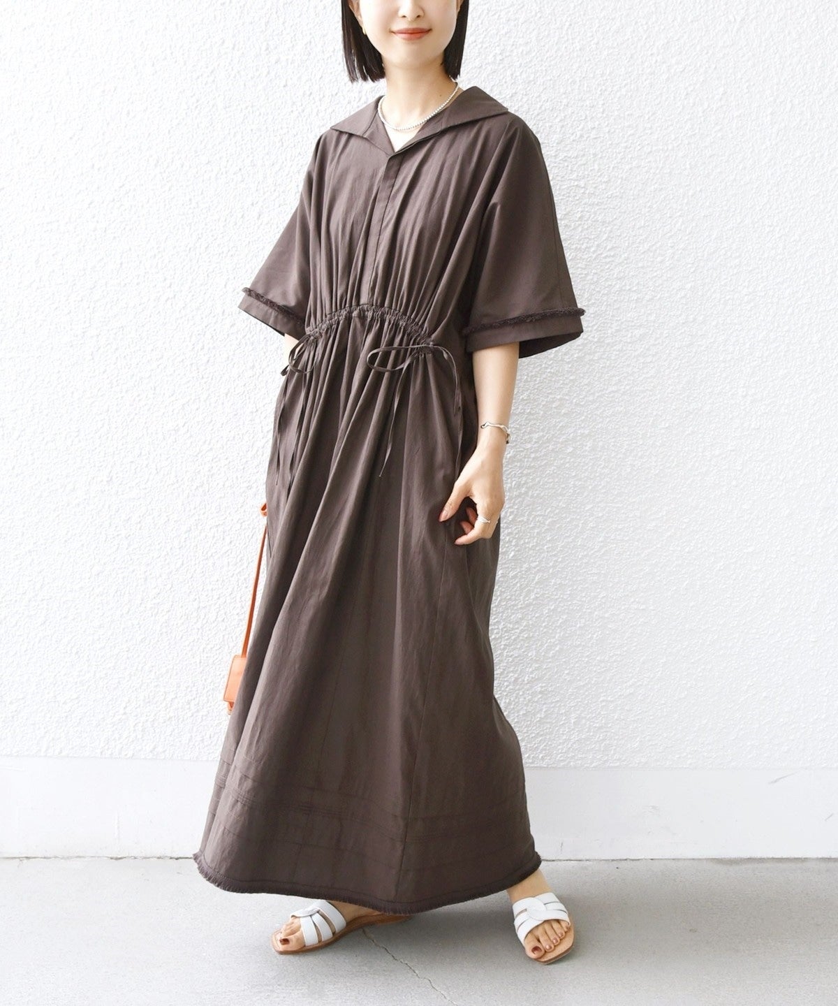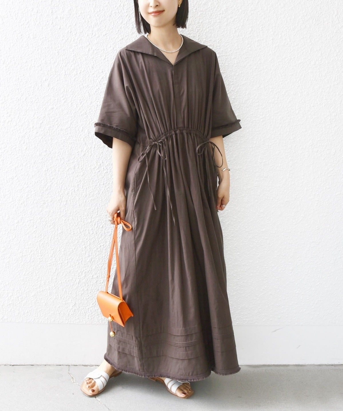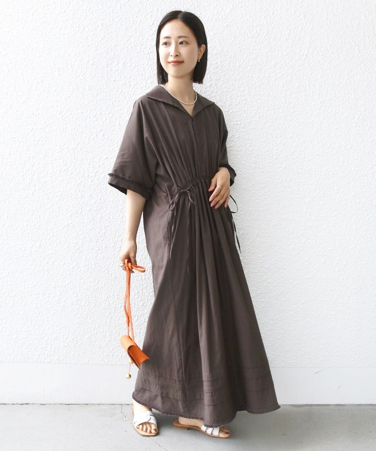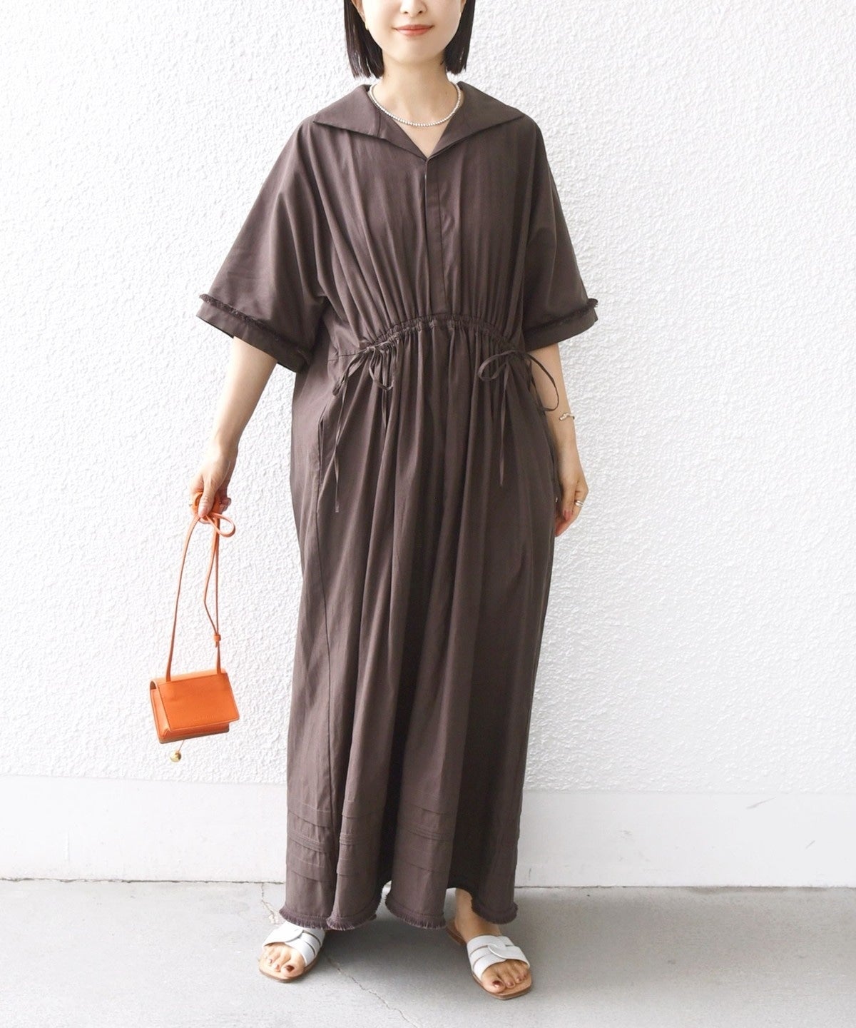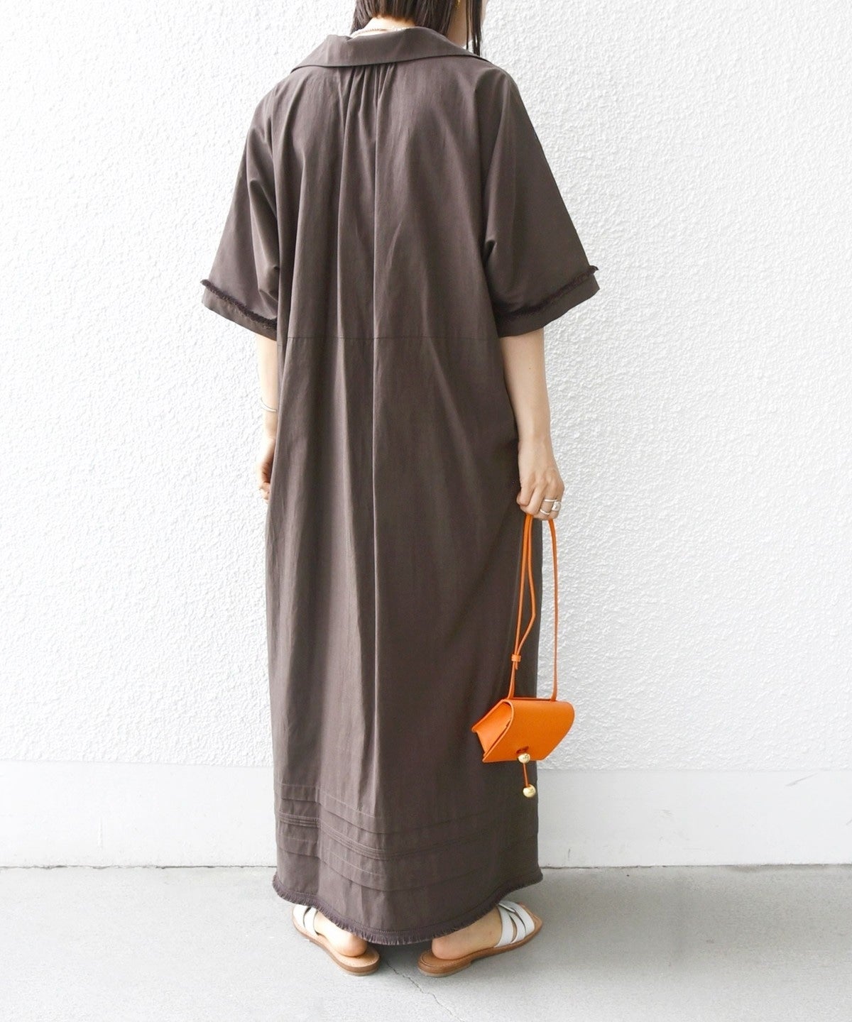 カジュアル過ぎないフリンジと抜け感のある衿デザインが目を惹く、1枚で決まるリラクシーワンピ