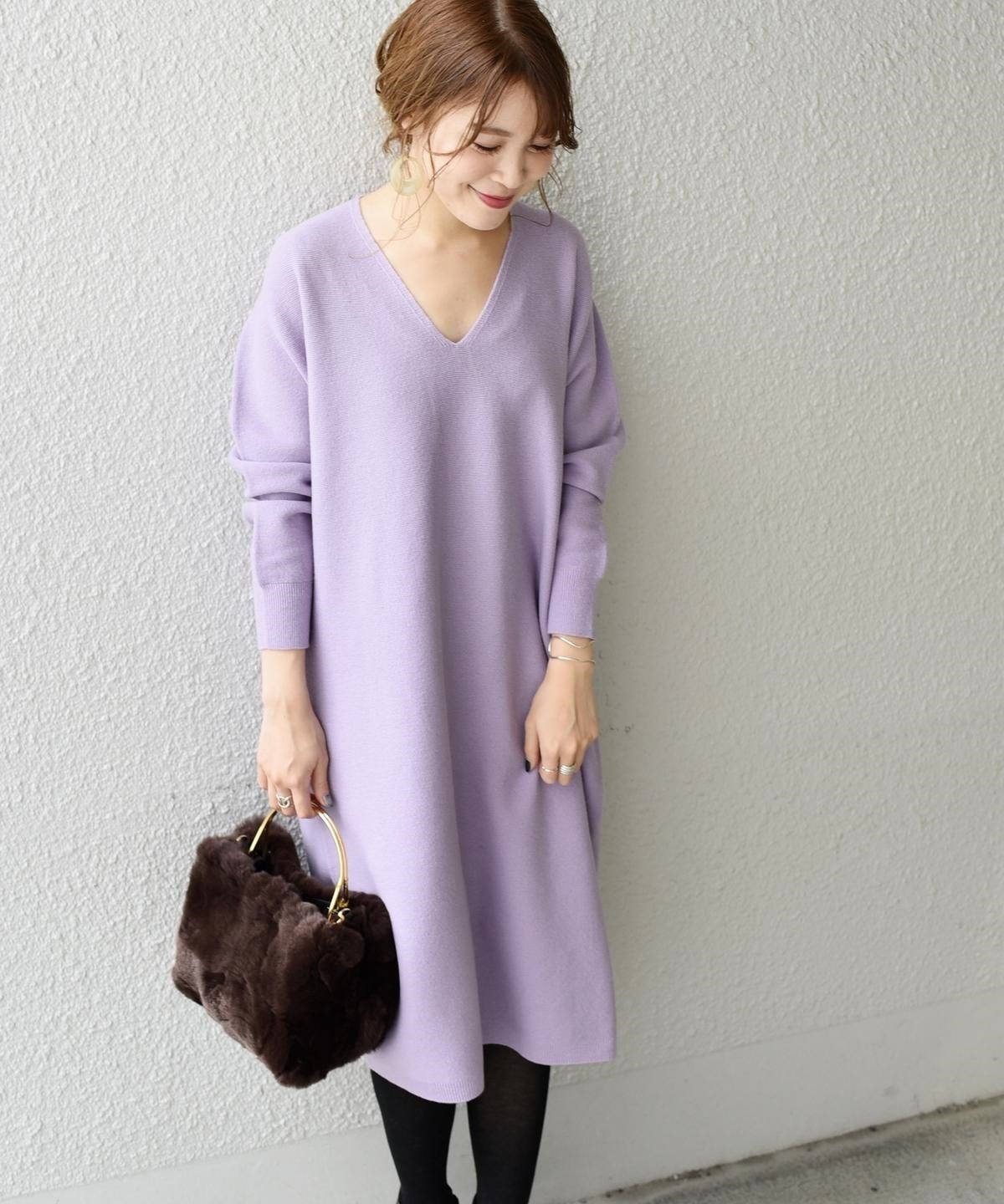 【手洗い可能】ホールガーメントVネックワンピース