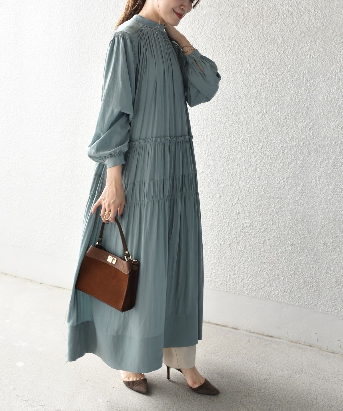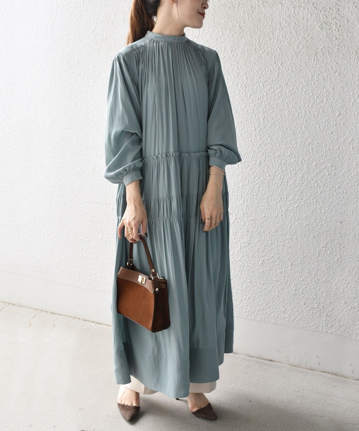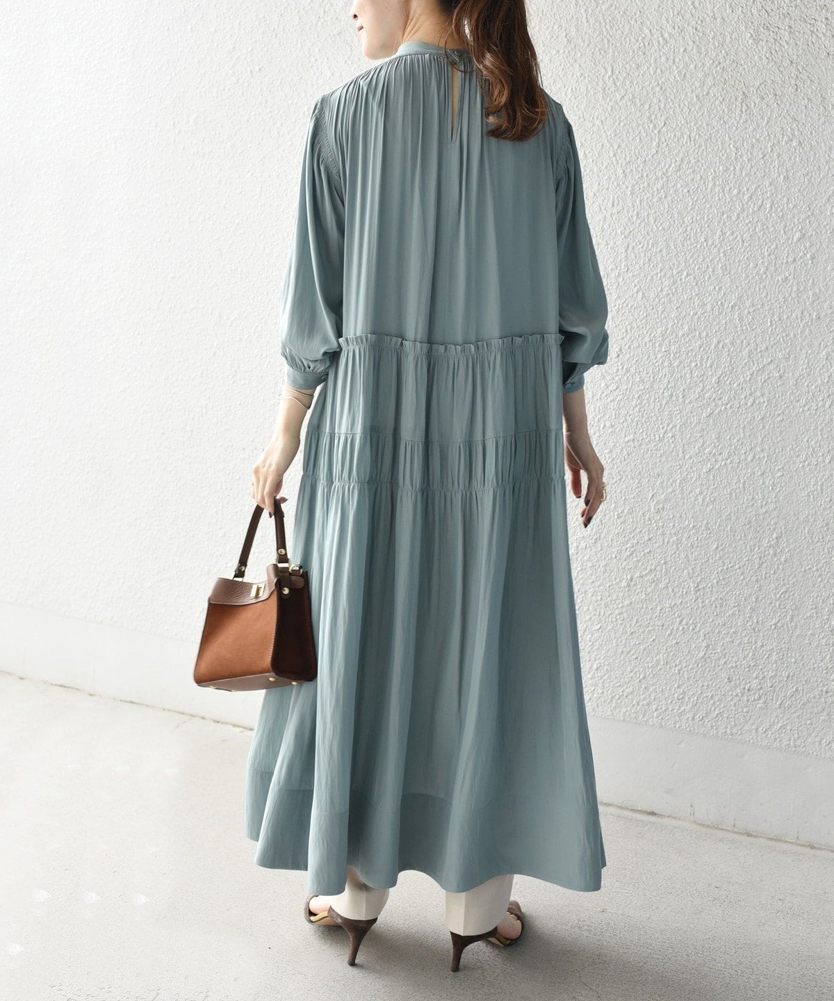 〈手洗い可能〉ソリッドカッセンギャザーワンピース