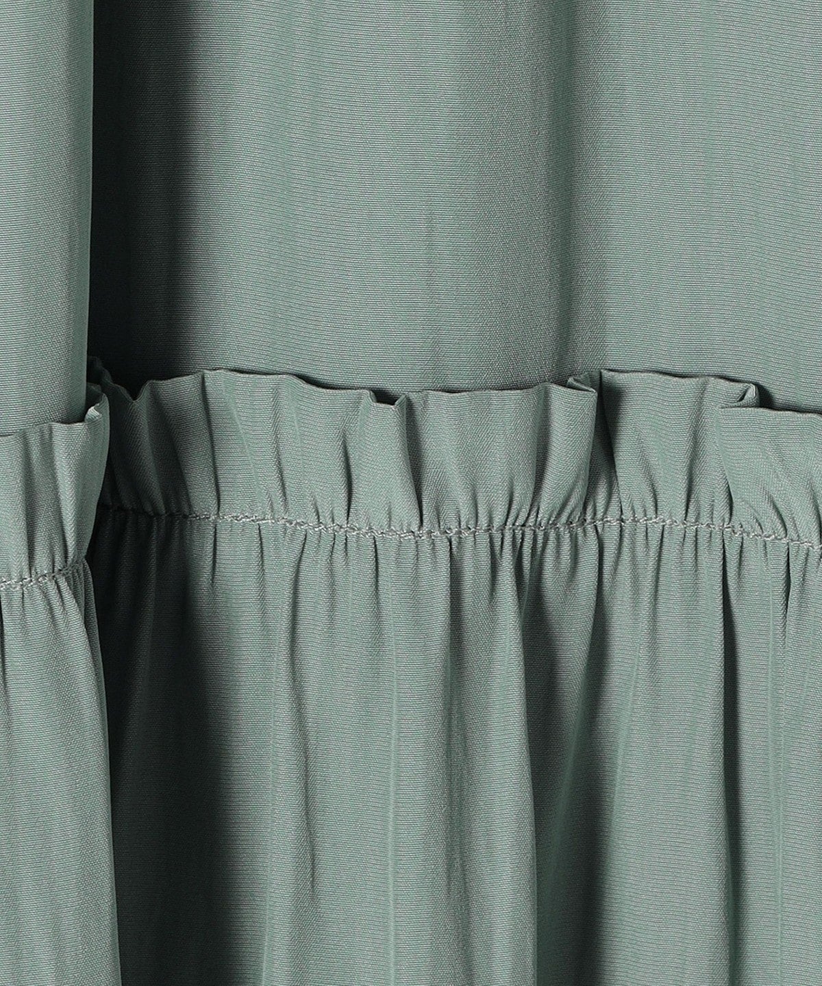ウエストはフリルを表に出したギャザーで、2段目は切り替えてフレアを出しながらゴムギャザーディテールを施すなど、細部までこだわった一品。