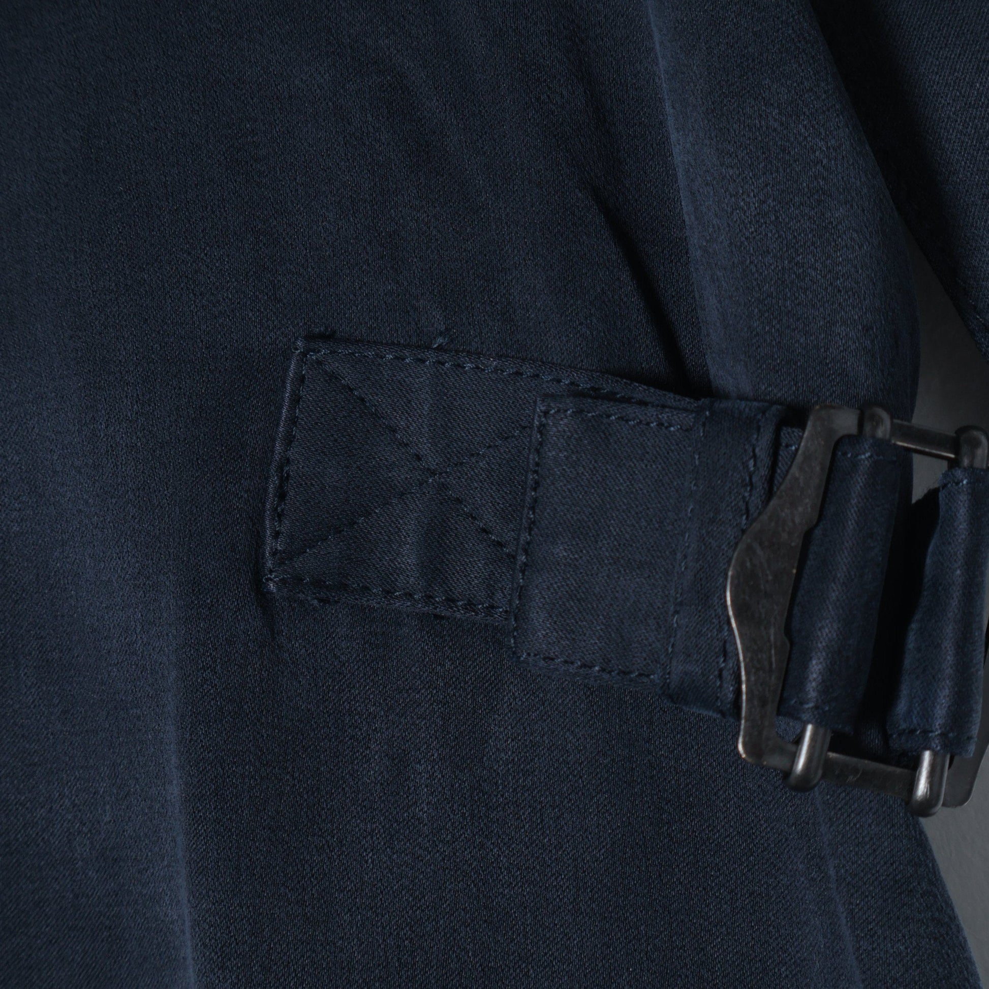 落ち感のある素材ですっきり見えるシルエットに、あえてミリタリーデザインを入れたこだわりの1枚。