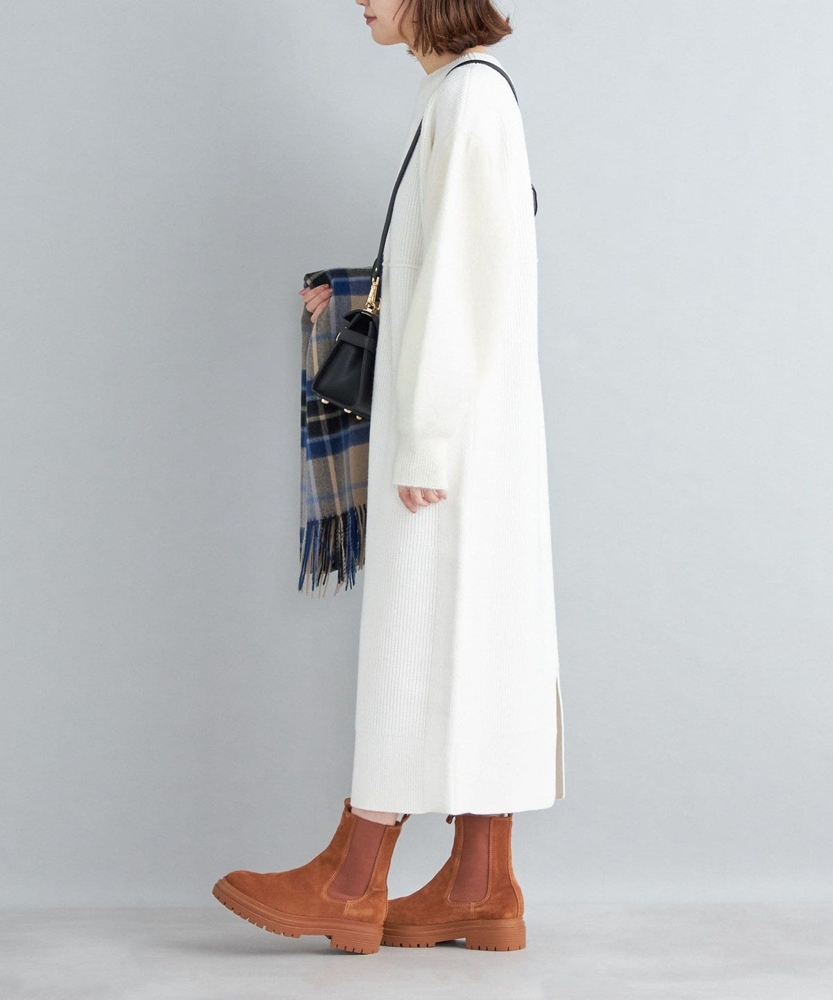 長すぎないマキシ丈なので、ブーツに合わせるのがおすすめです。