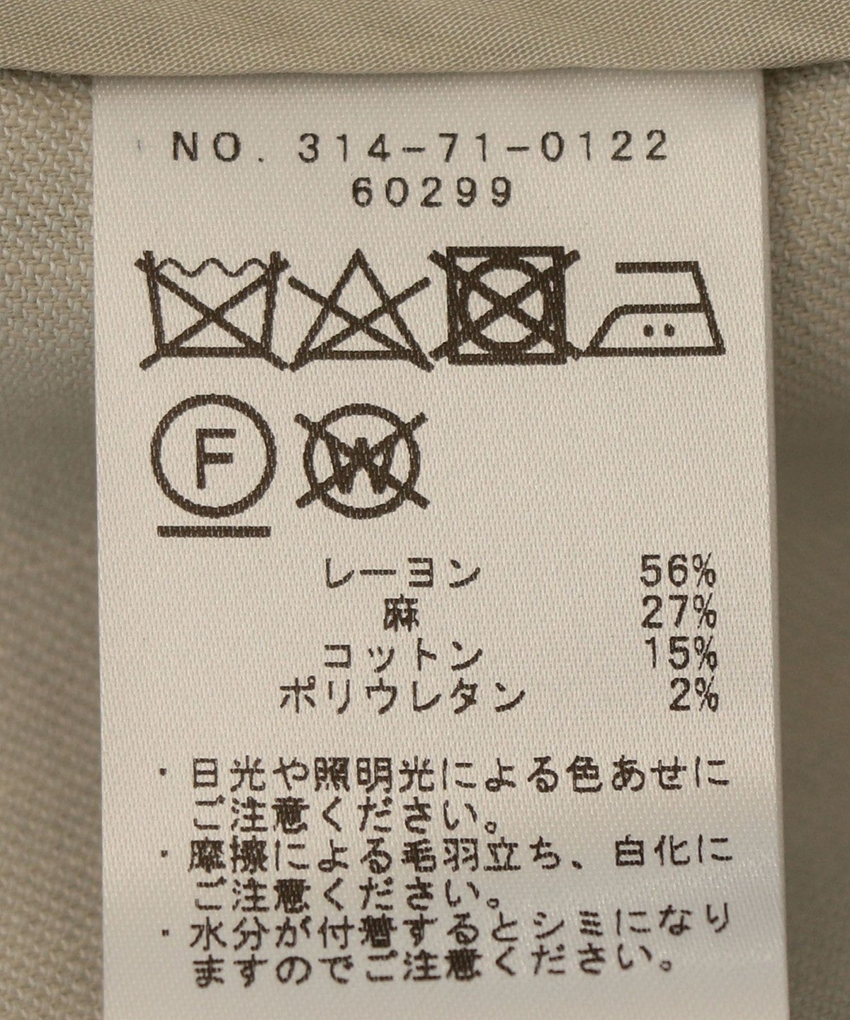 素材 レーヨン 56% 麻 27% コットン 15% ポリウレタン 2%