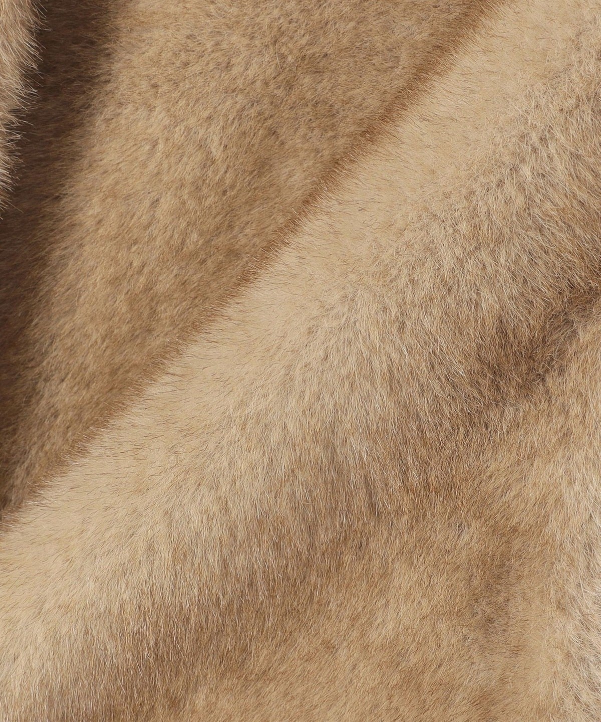 コメント:フェイクでありながらも短毛でぎゅっと詰まっているような生地感は肌触りがとても滑らかで心地よかったです。見た目にも暖かいスタイリングのポイントになるアイテムです◎