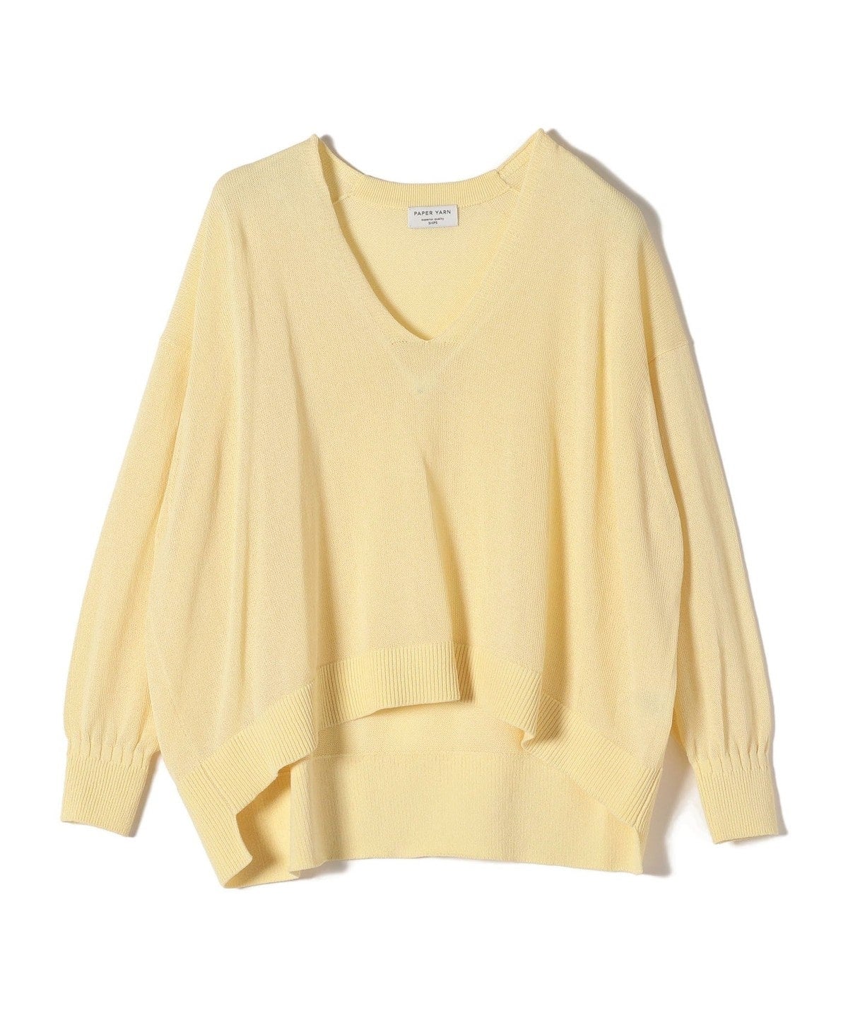 すっきりとした深めのVネックがポイントのニット。美濃和紙とポリエステルの、ハイゲージ天竺の素材です。