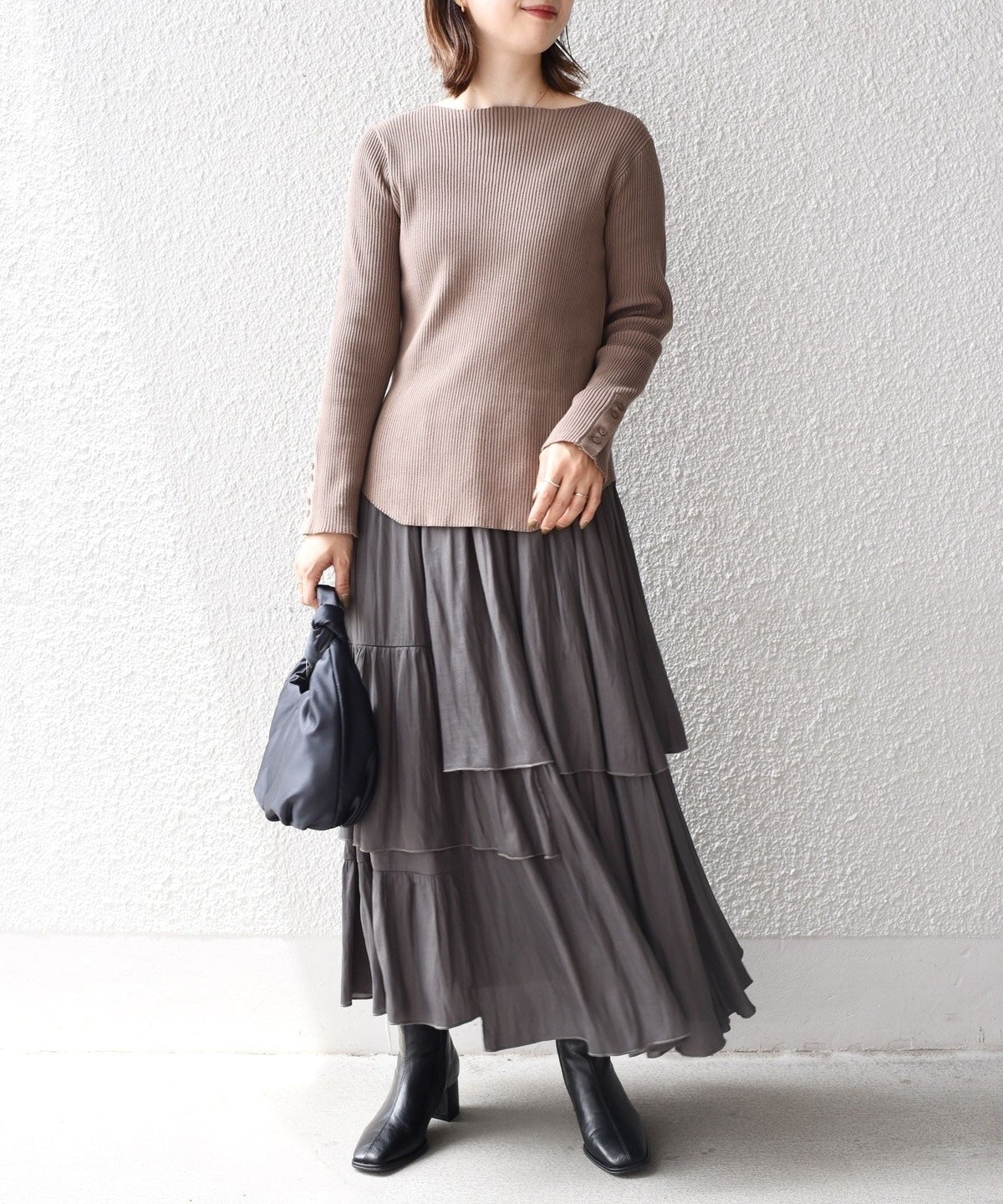 シンプルで着回しが効くデザインなので、ボトムを選びません。