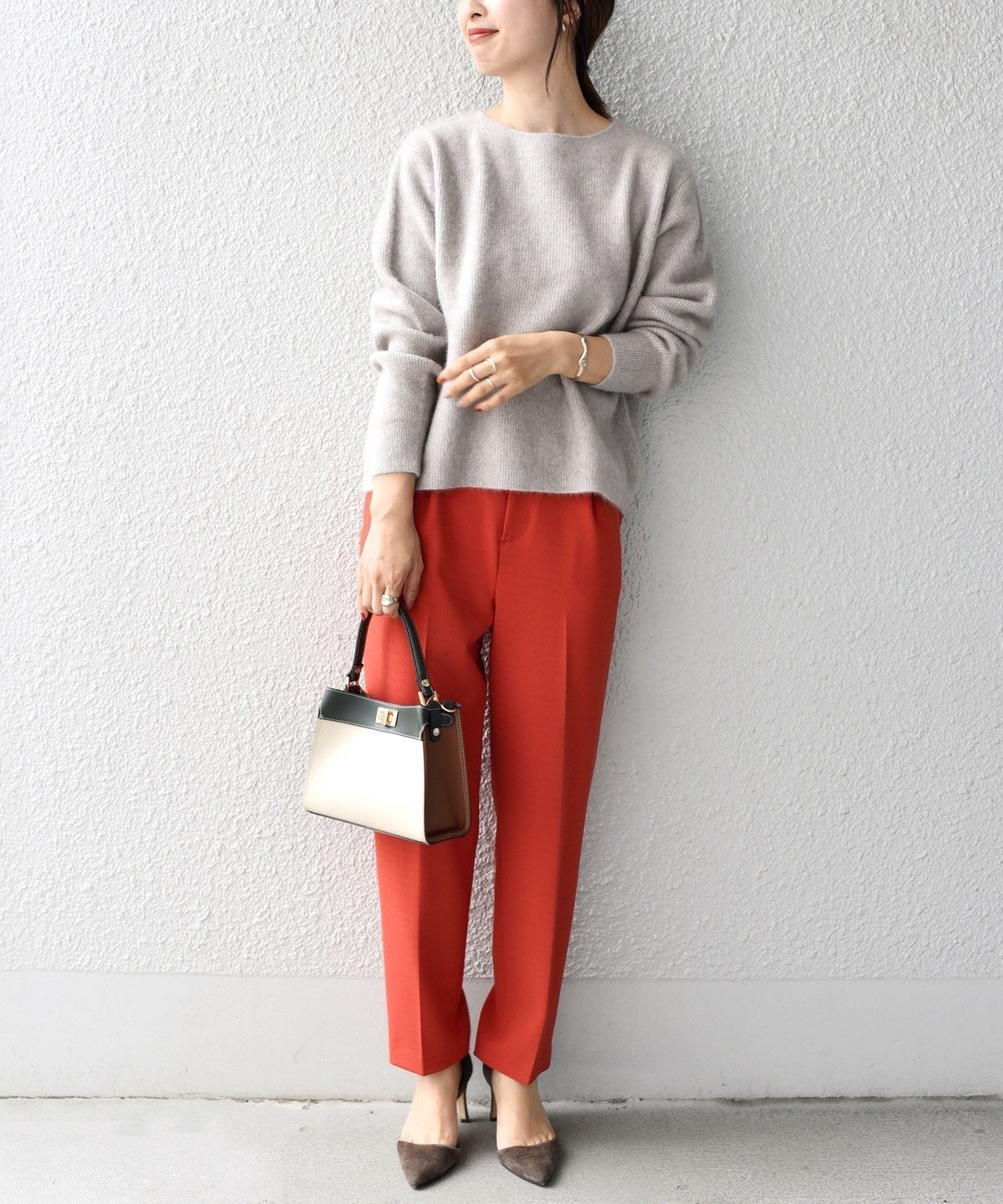 程よく開いた首元がボトムを選ばないので、ON/OFFで活躍してくれるアイテムです。
