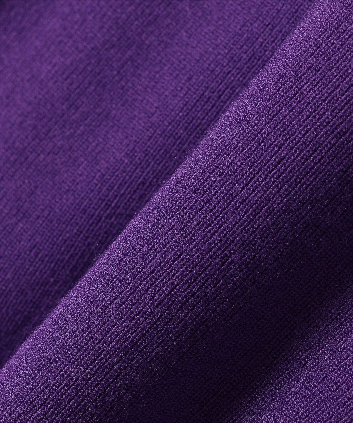 ビスコースとストレッチポリエステルの混紡糸にさらにストレッチ糸を入れて畦編みにした、程よい肉感と張り感を持った素材です。