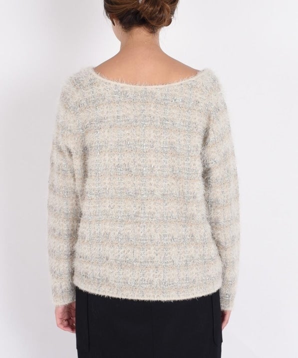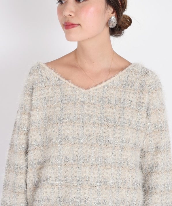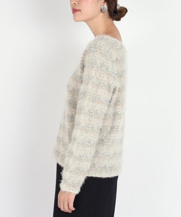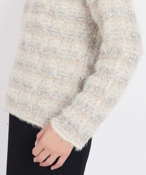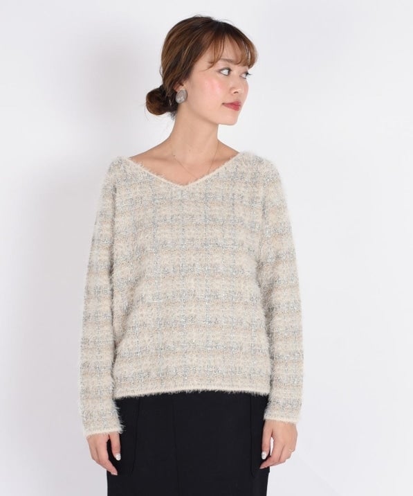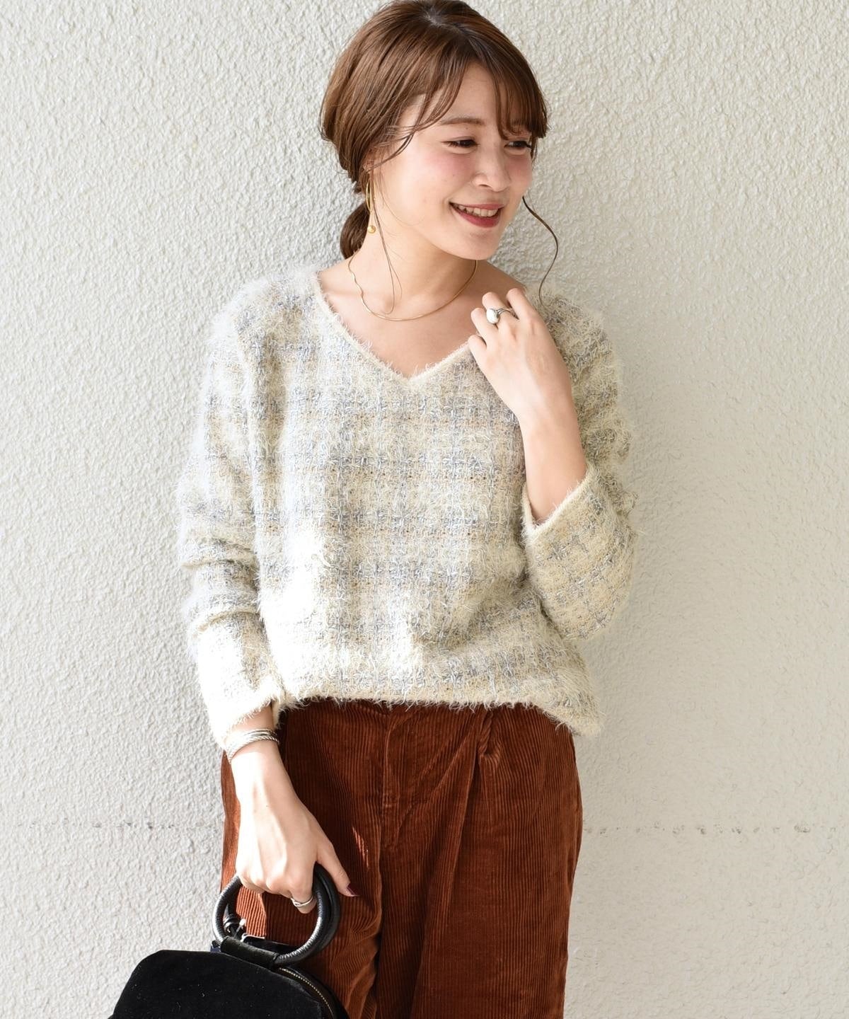 ふわふわの素材感が柔らかく、女性らしいニットです。