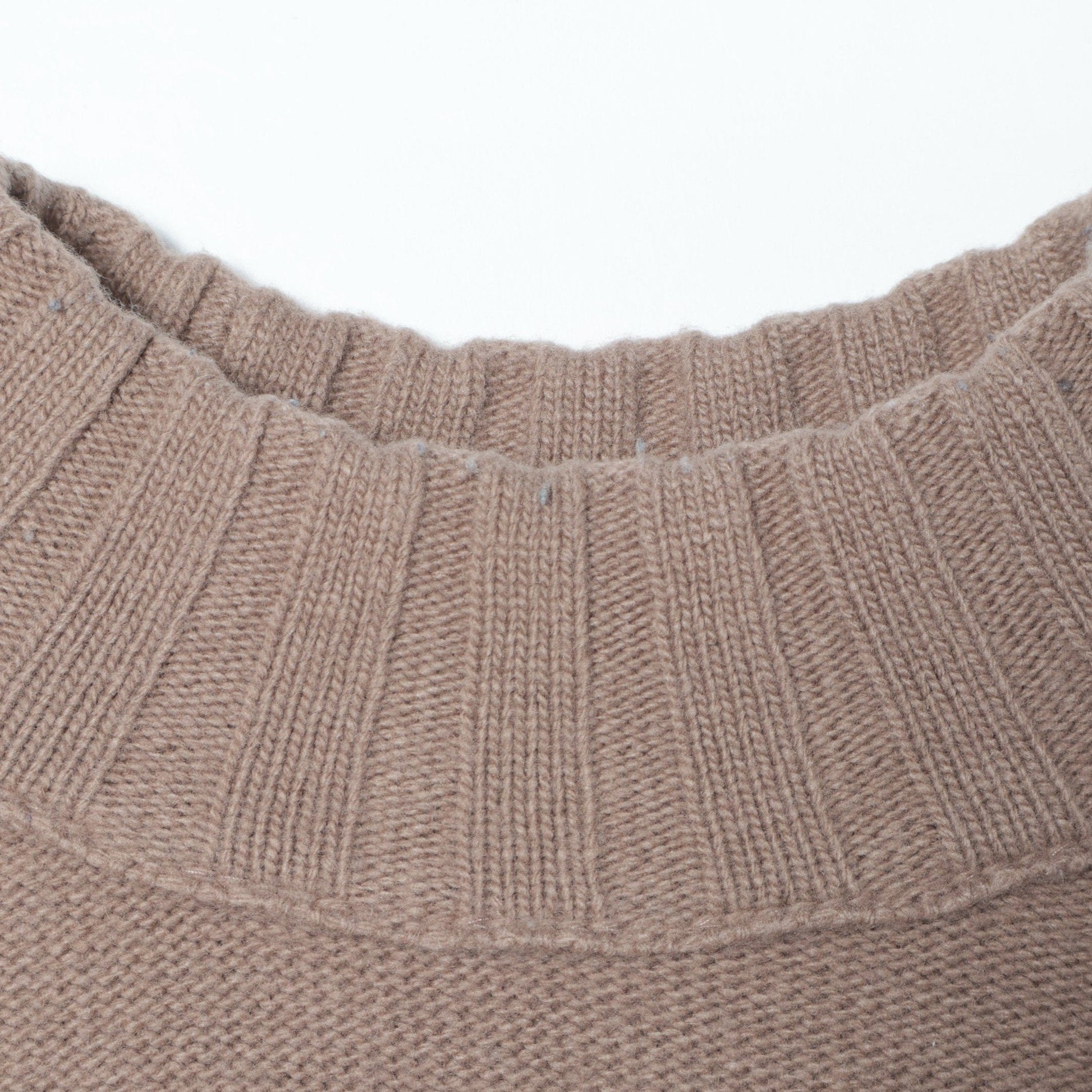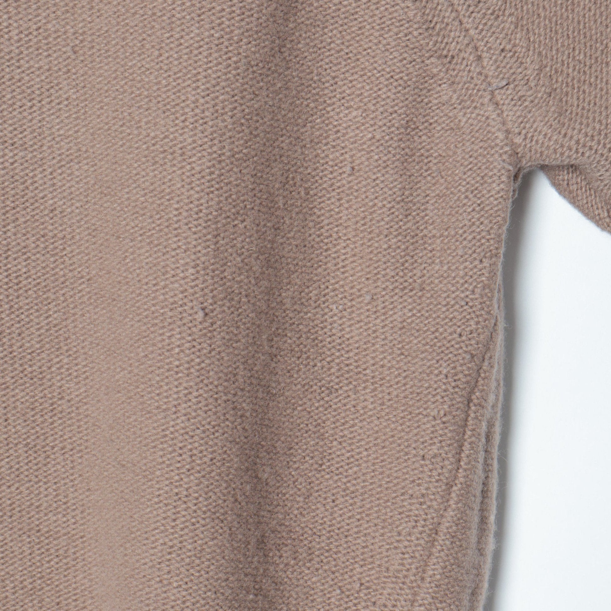 17.5ミクロンのextra super fine lambswoolと柔らかなナイロン、カシミヤをブレンドした紡毛糸を使用したニット。肌触りがとても良く、ふわっとした高級感のある素材が魅力。